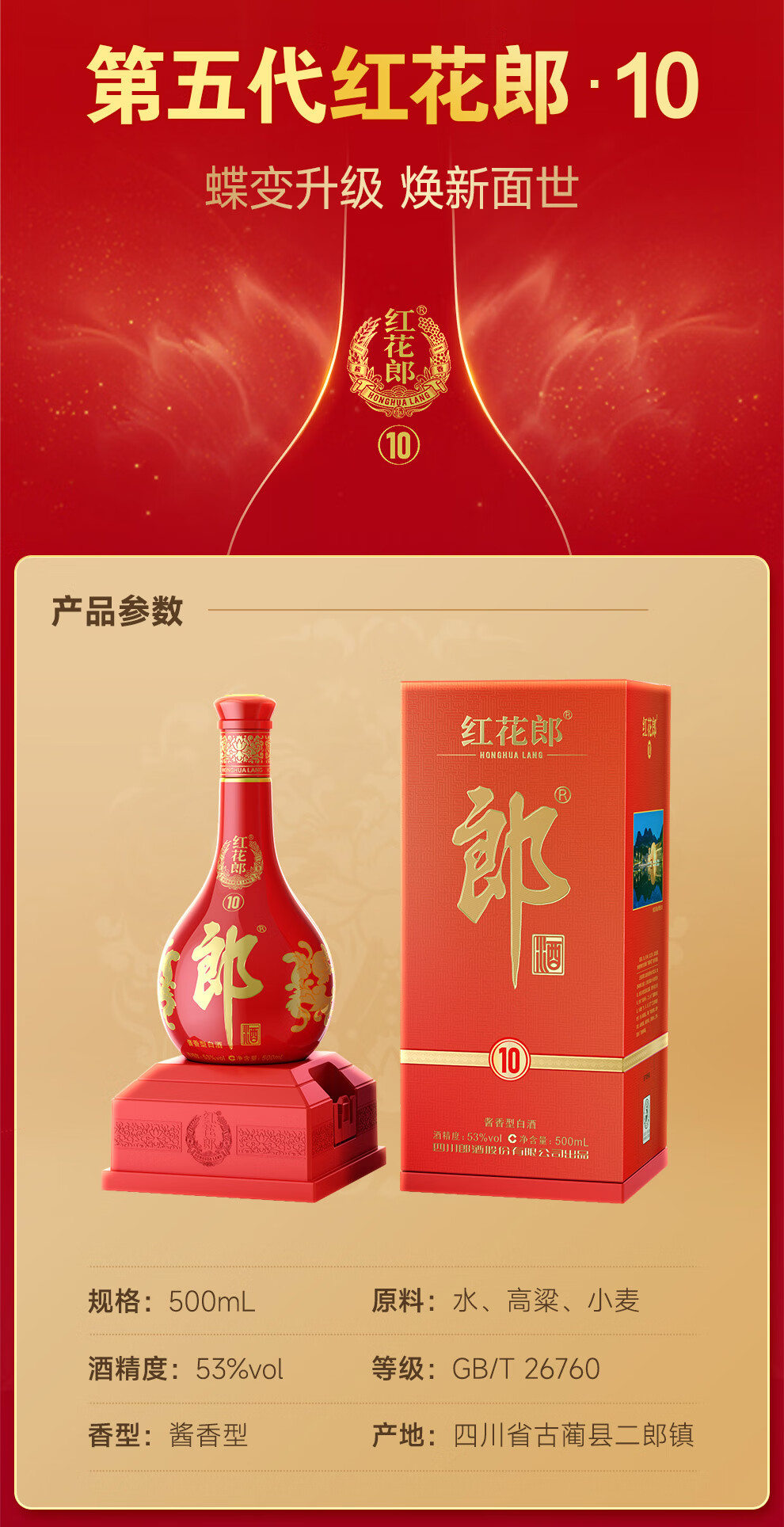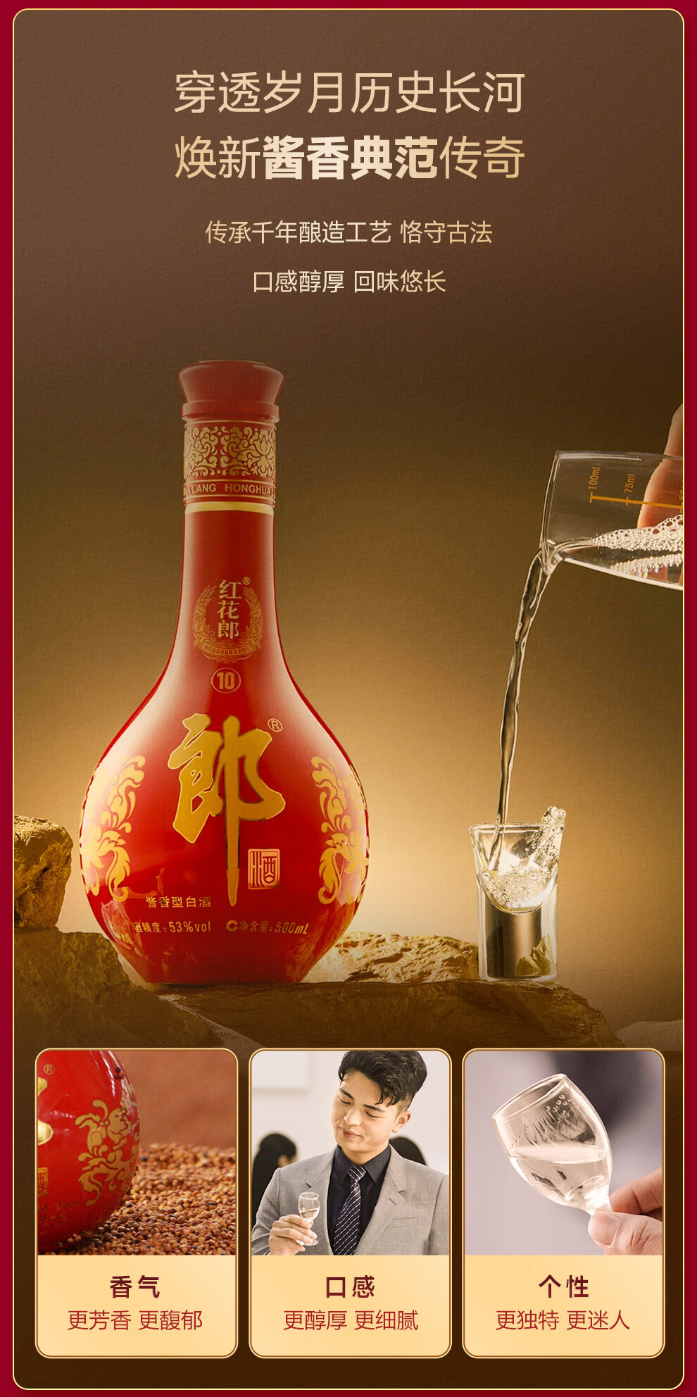 53度郎酒红花郎十第五代酱香型白酒1*500ML