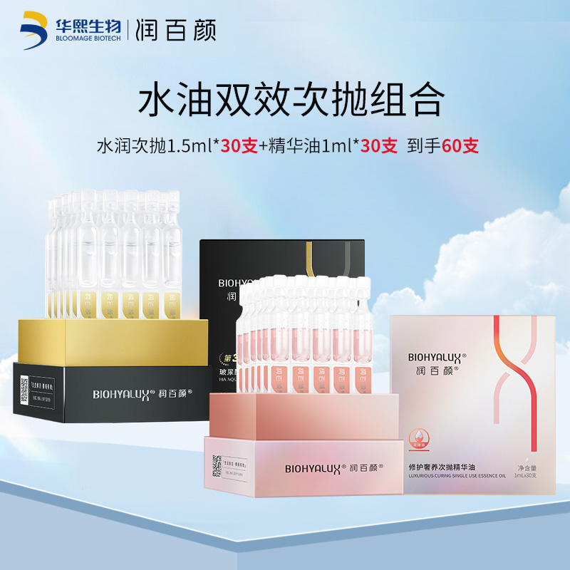 【新品】润百颜水油双效组合 水润次抛精华液1.5ml*30支+精华油1ml*30支