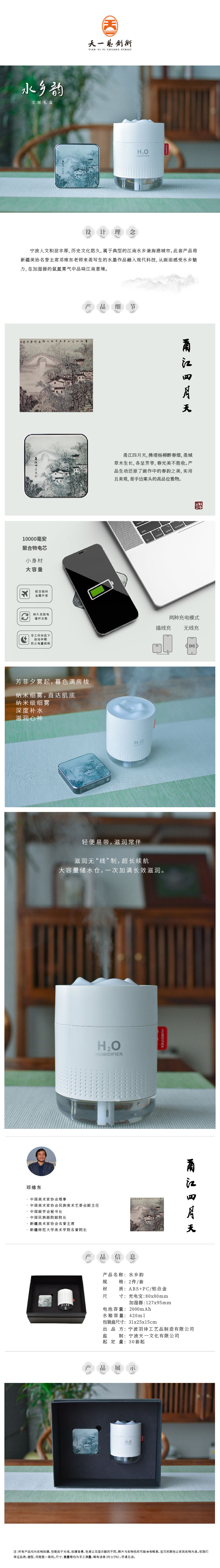 羽诗制造出品 水乡韵套装邓维东宁波写生款充电宝无线加湿器文创礼盒