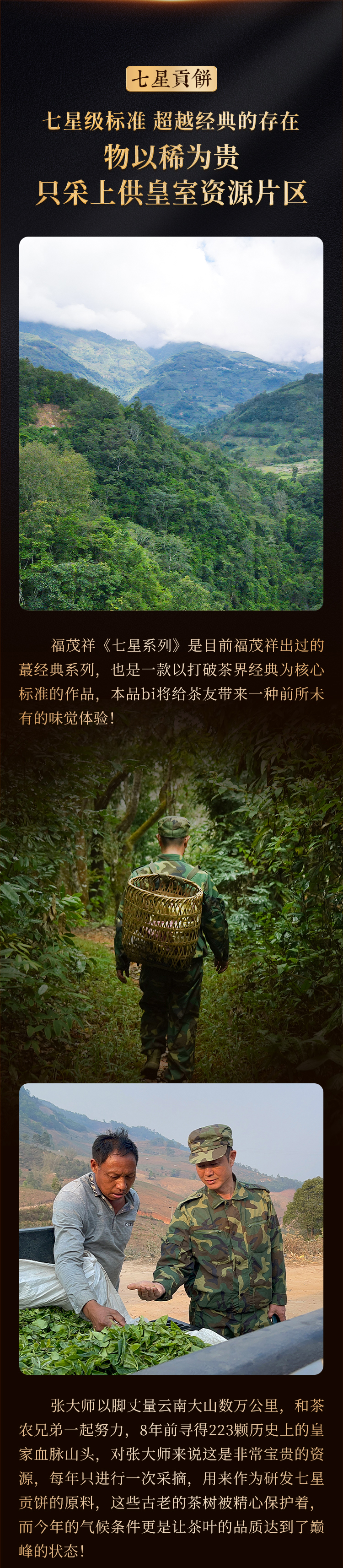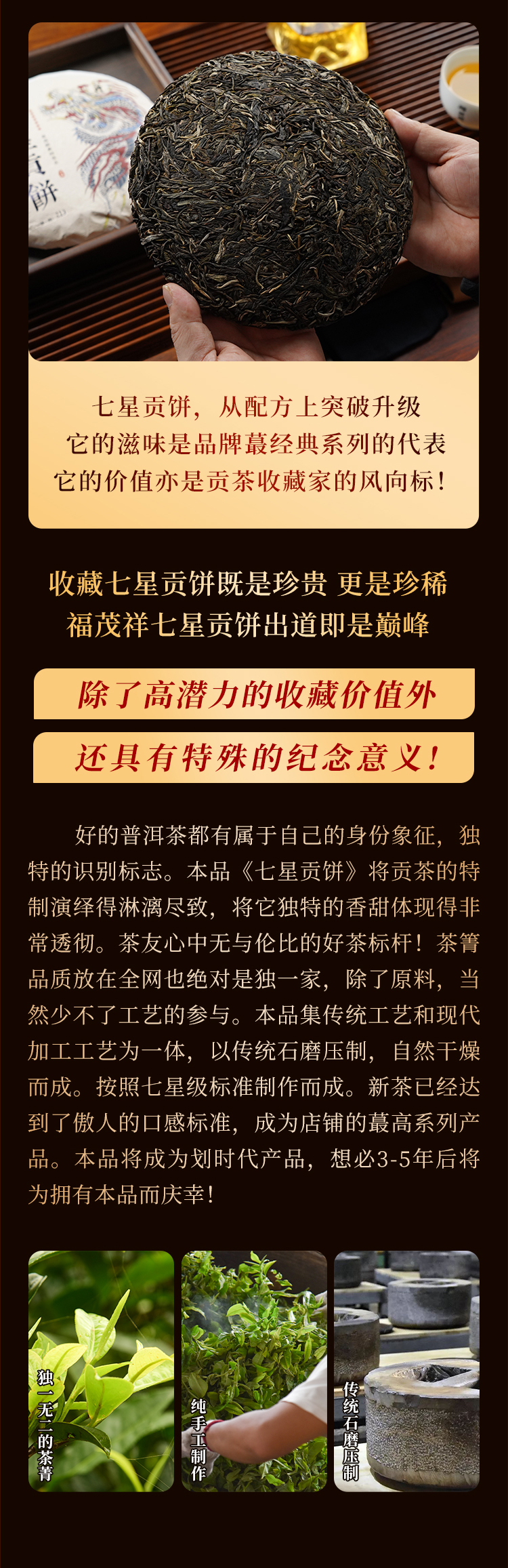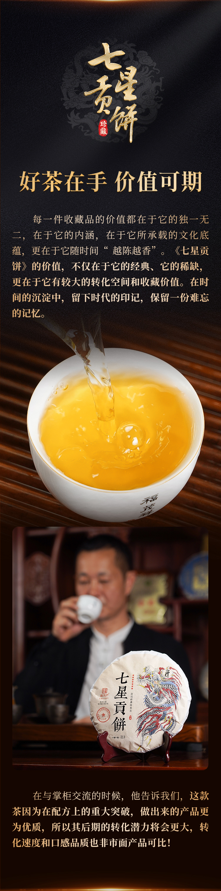 【七星系列】【七星贡饼】七星级皇家酿 中国制茶大师的匠心之作 2023年头春普洱茶皇家贡茶古300-600年 历时8年完善配方超越经典的存在 一饼一码 357g饼茶