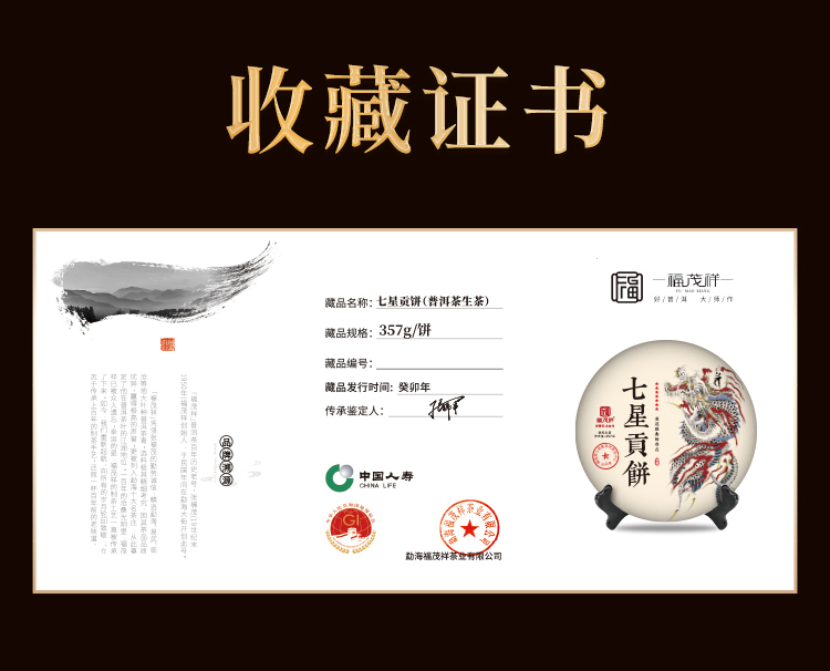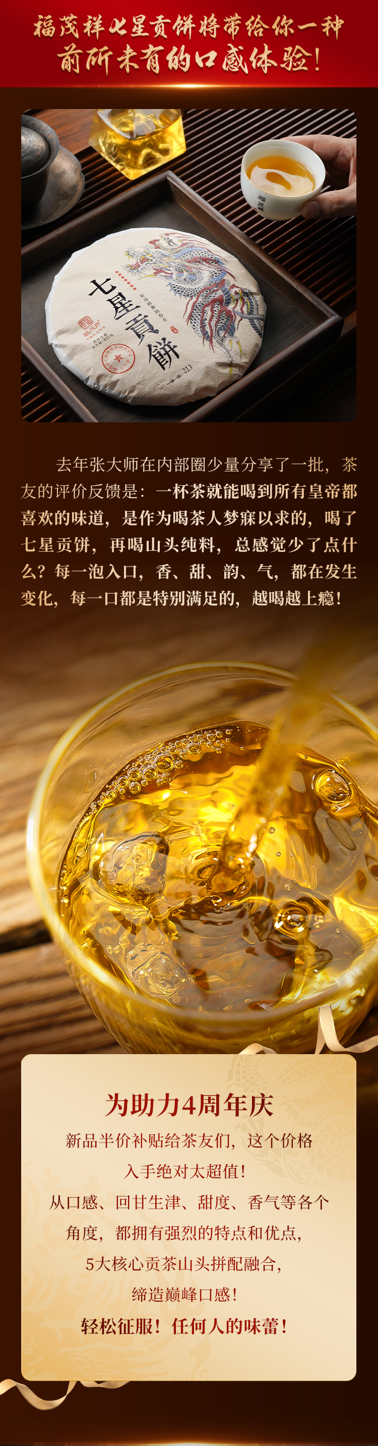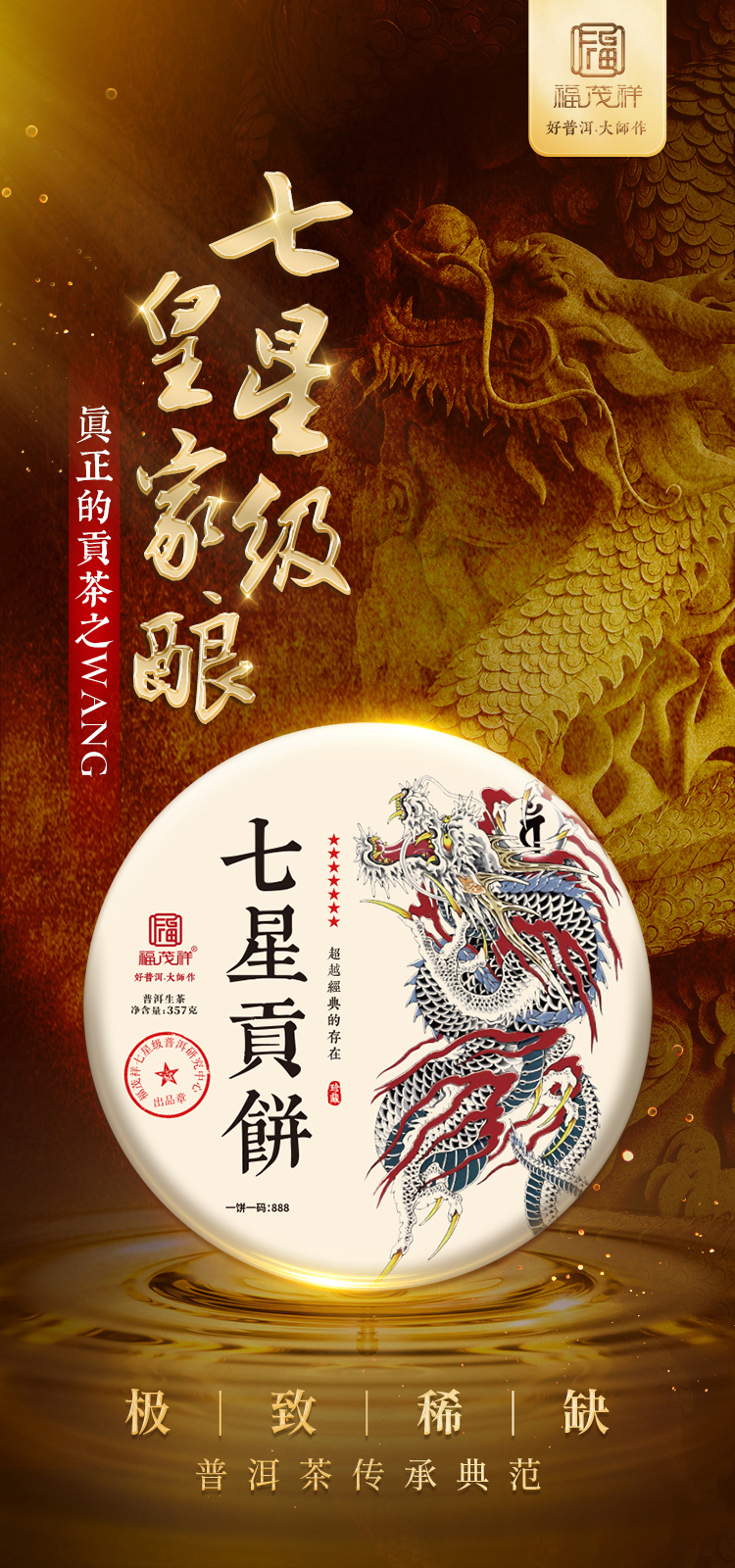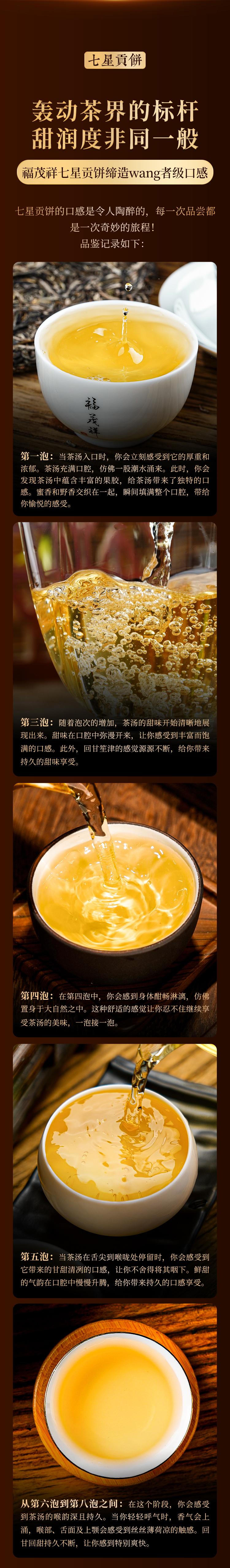 【七星系列】【七星贡饼】七星级皇家酿 中国制茶大师的匠心之作 2023年头春普洱茶皇家贡茶古300-600年 历时8年完善配方超越经典的存在 一饼一码 357g饼茶