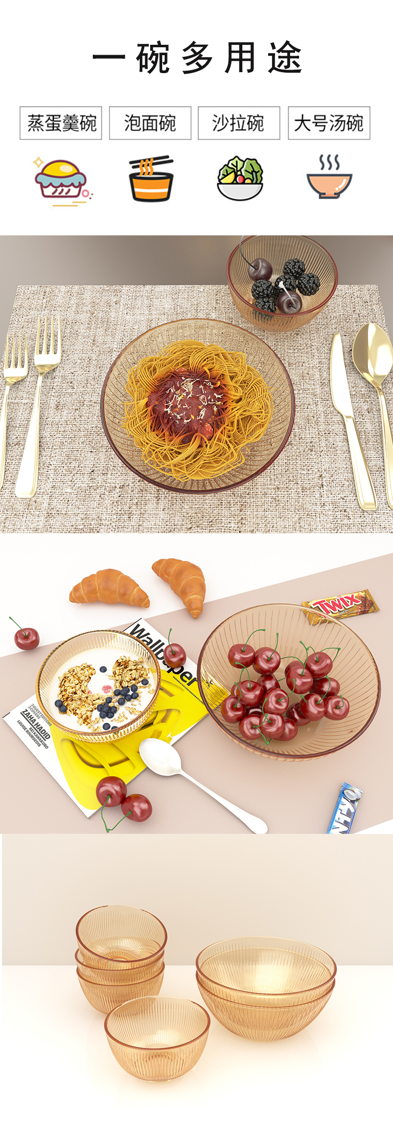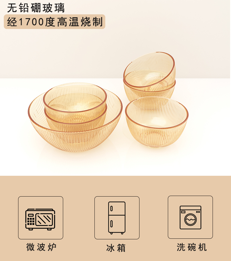 伊斯顿ins风茶色玻璃麦片碗沙拉碗意面碗耐高温大号汤碗微波炉专用