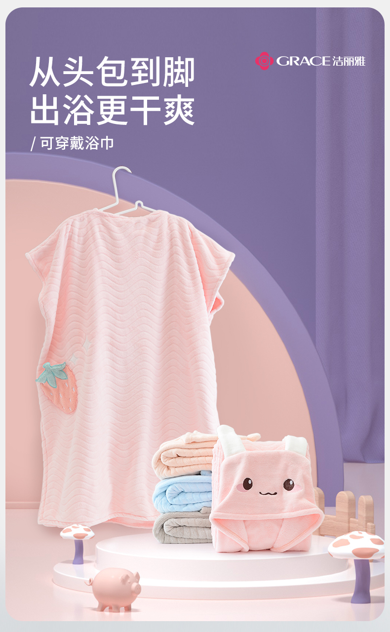 【可穿戴儿童斗篷】带帽柔软吸水大宝宝洗澡浴袍裹巾秋冬