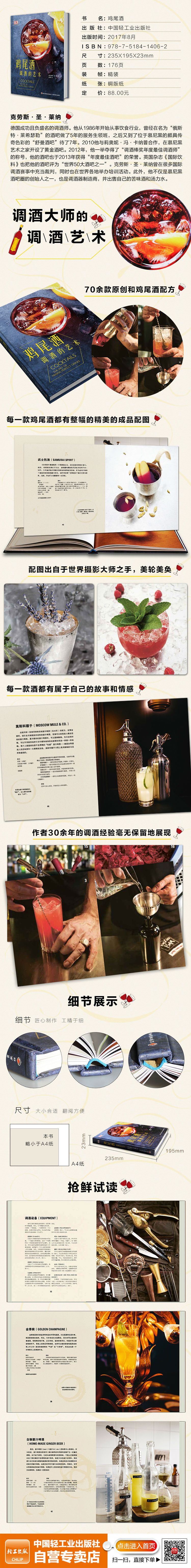 鸡尾酒分为三章。 在和第二章中,您将学习到在几乎没有调酒经验的情况下如何制作鸡尾酒。在第三章中,您可以学习如何自由地在特殊的场合和重要的聚会中调制鸡尾酒,当然你应该需要一些现场实践的练习。 在附录中,你可以根据你的心情或所处的场合找到完美的饮品。