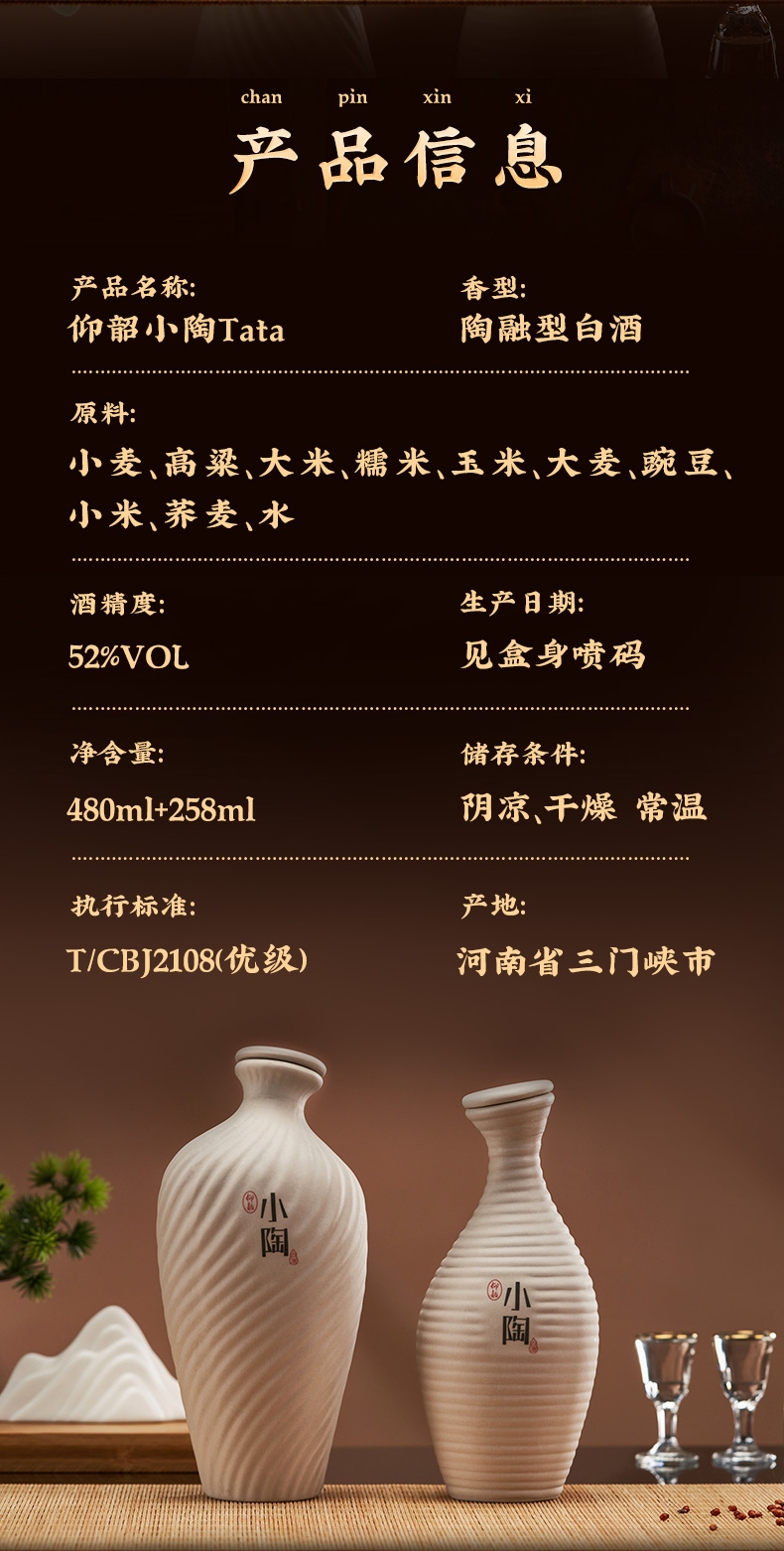 【秒杀】52°仰韶小陶酒礼盒480ml+258ml(TAta版)
