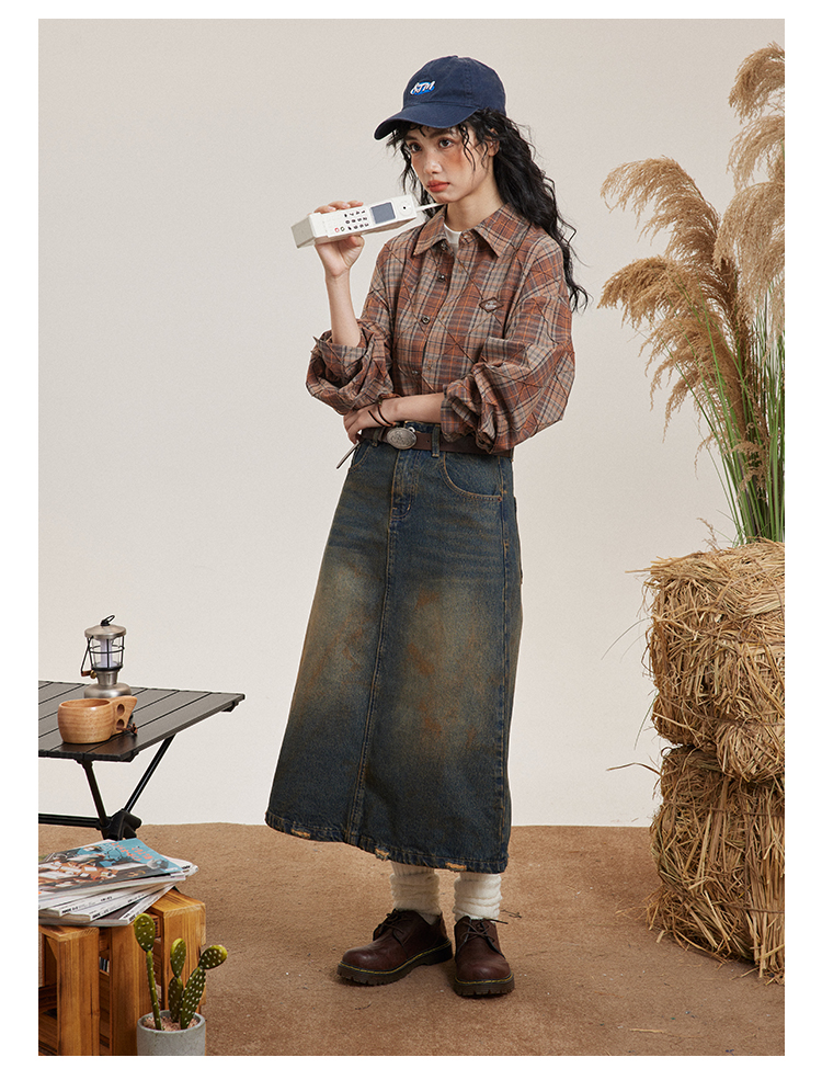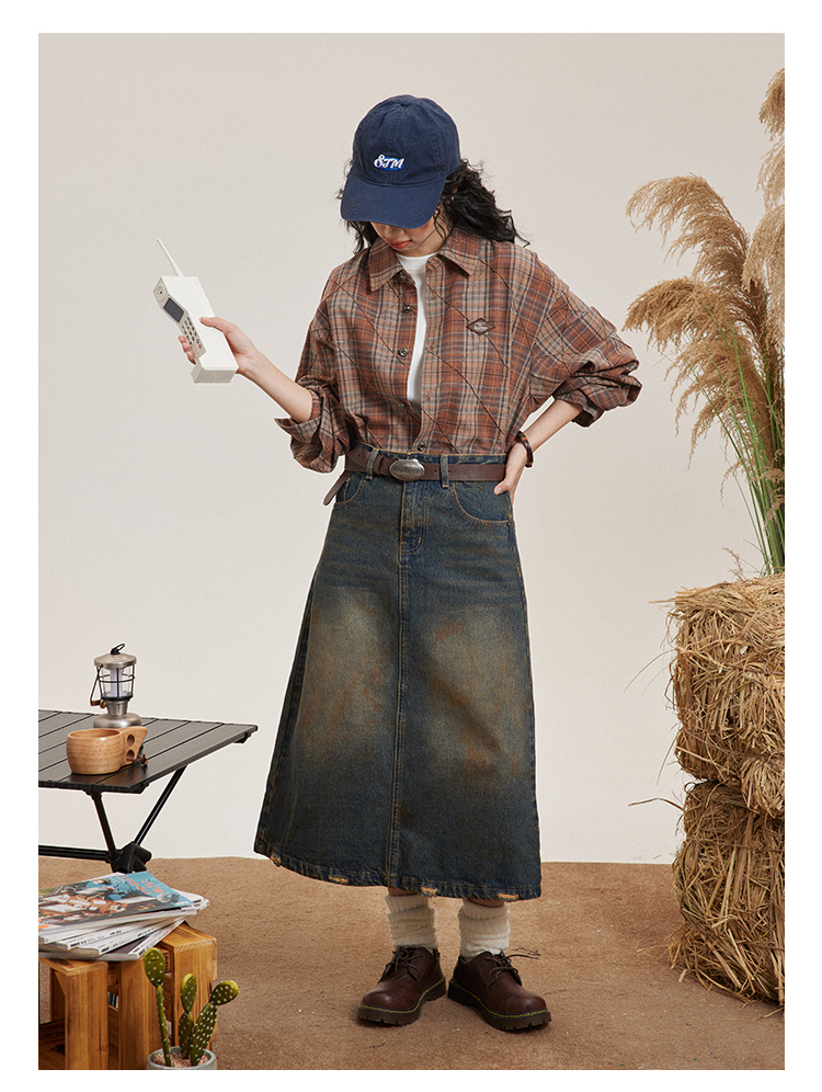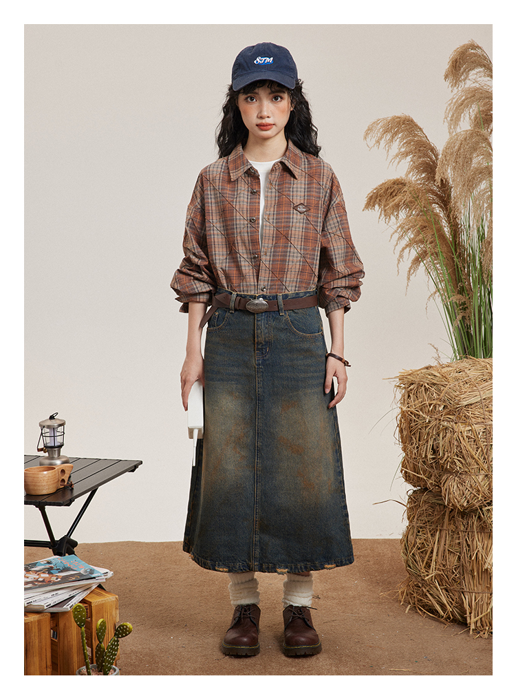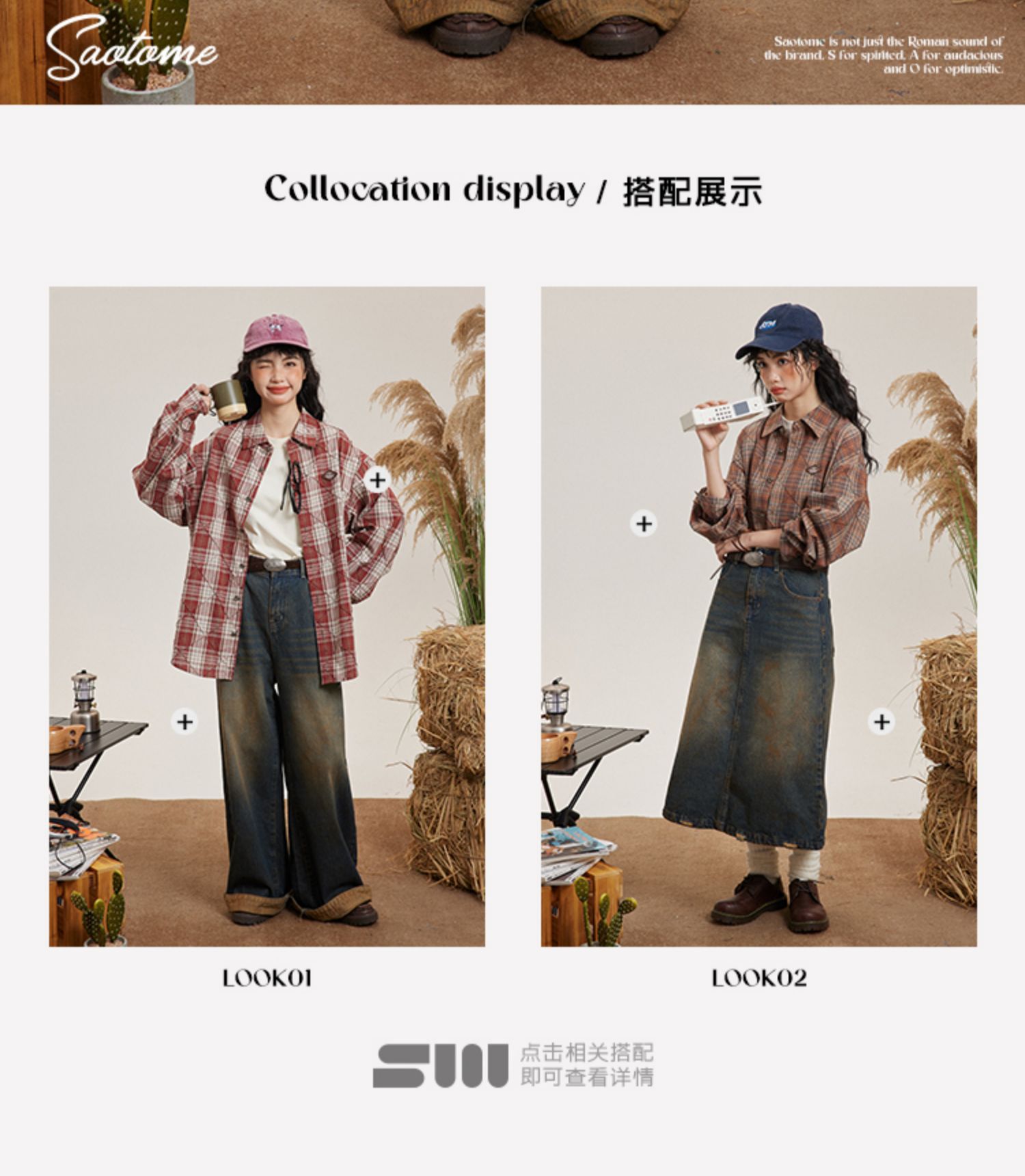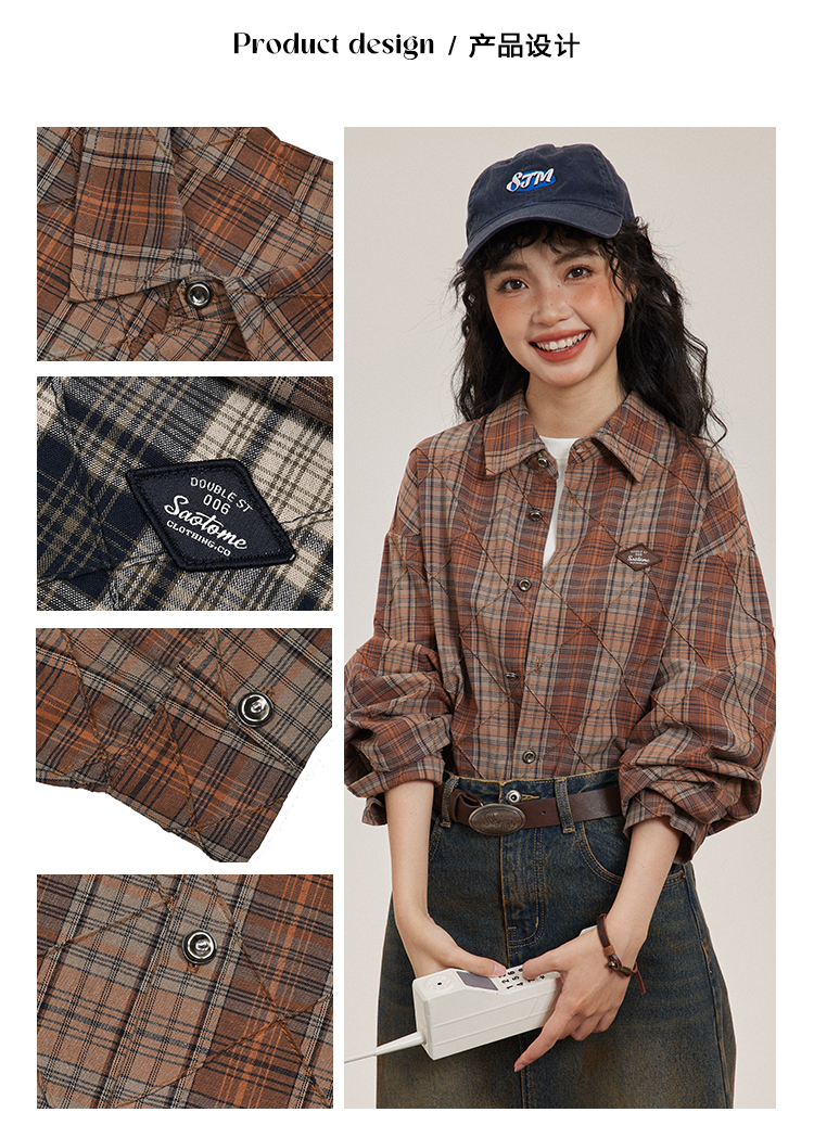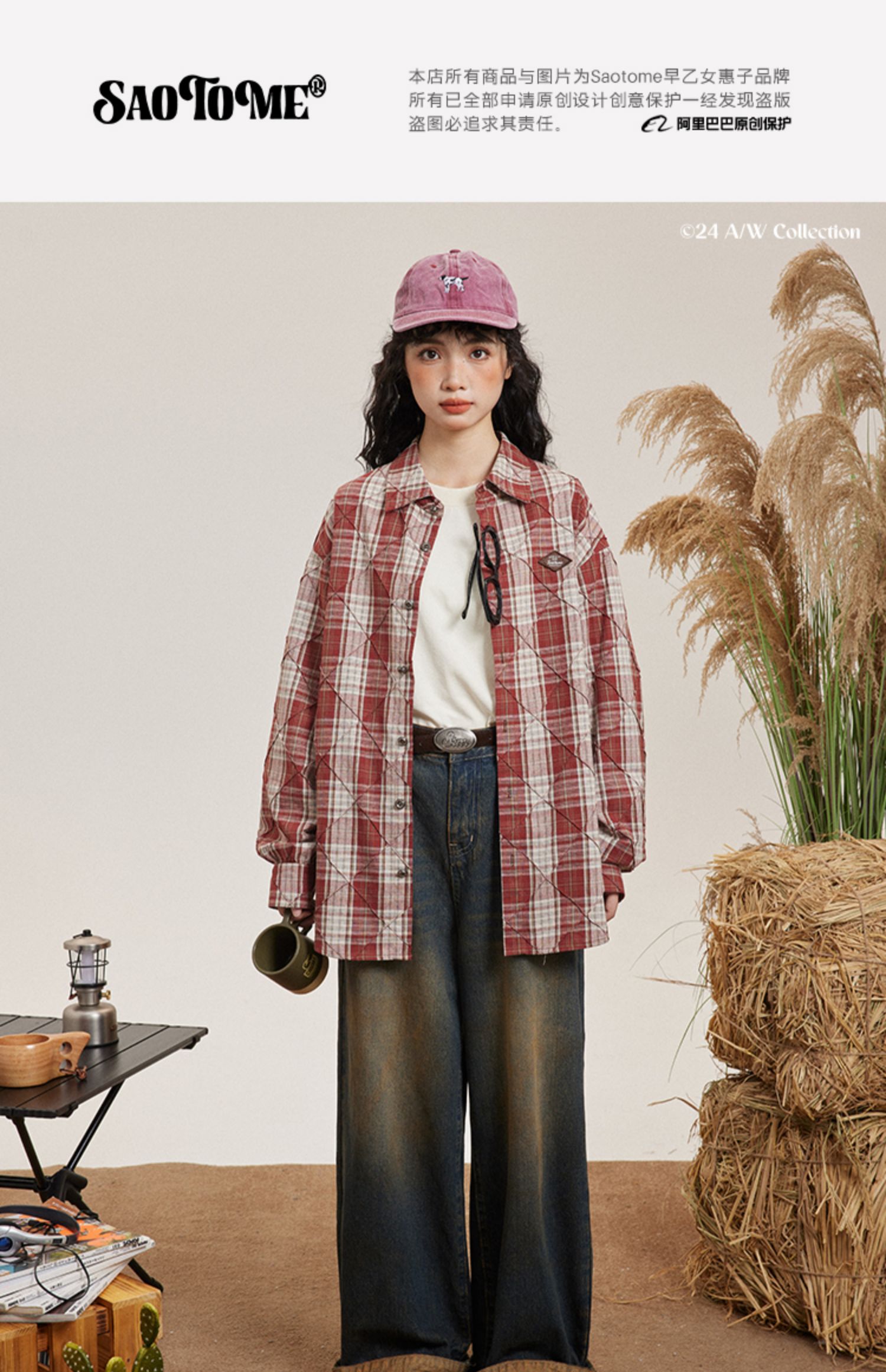 早乙女惠子saotome/STMCS243241/面料再造肌理格纹长袖衬衫