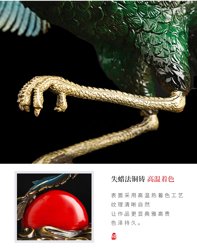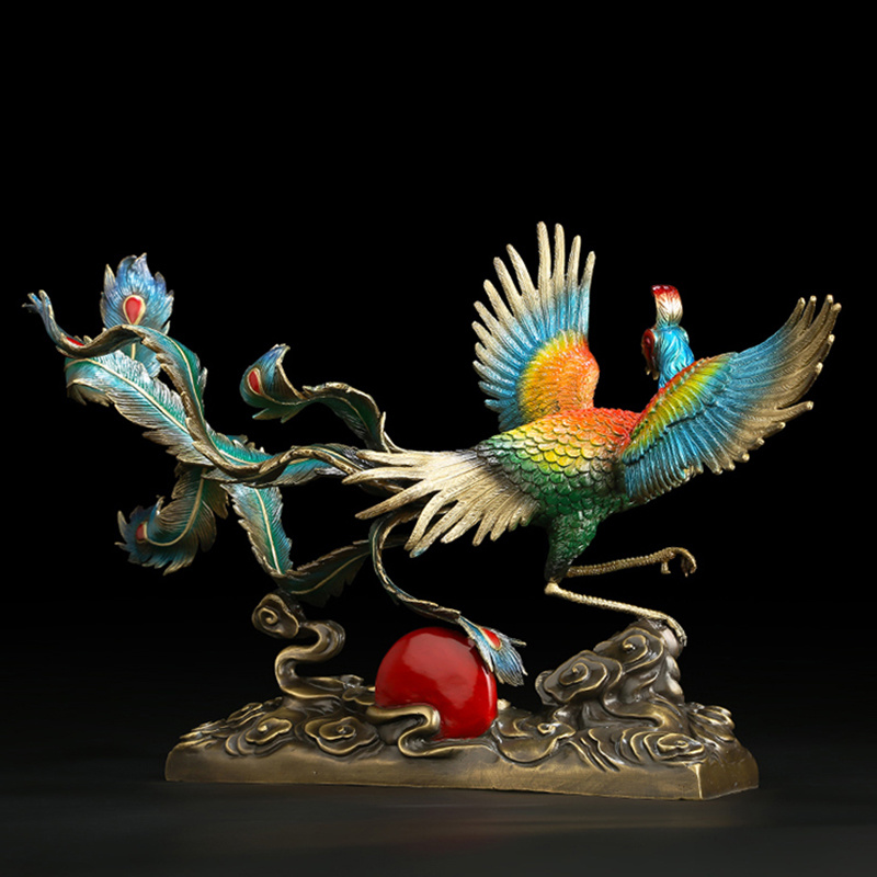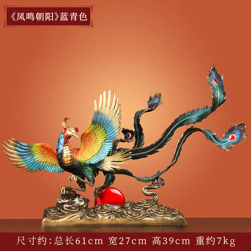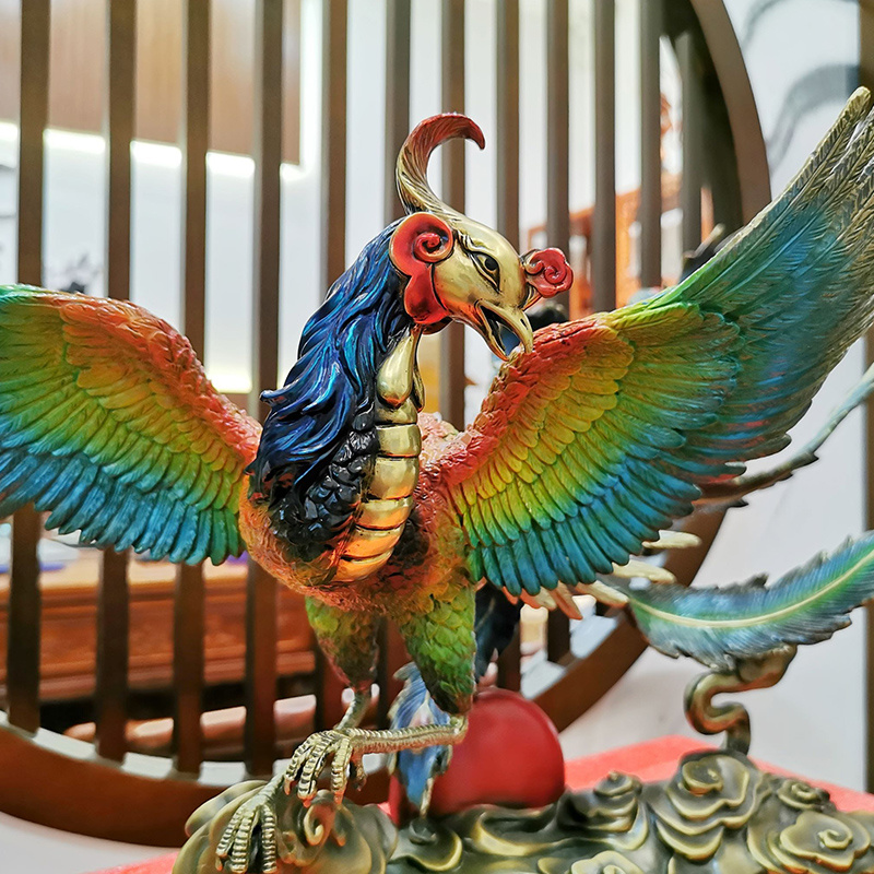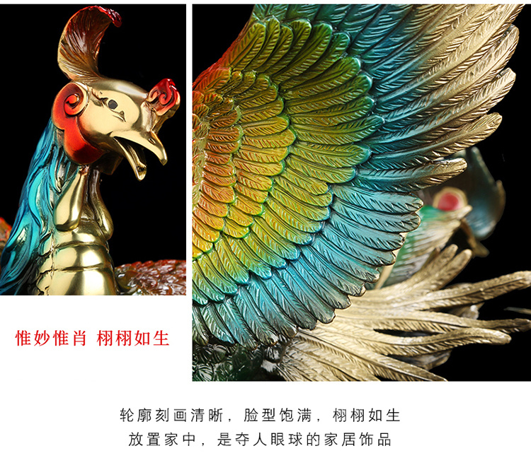 【专属礼盒】凤鸣朝阳彩铜火凤凰铜制版办公室桌面装饰品摆件开业礼物