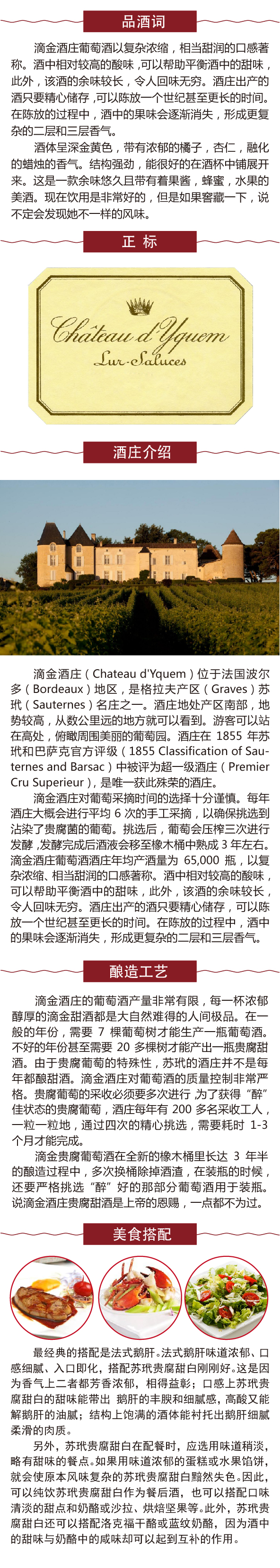 1995滴金贵腐甜白葡萄酒 Chateau d'Yquem Sauternes