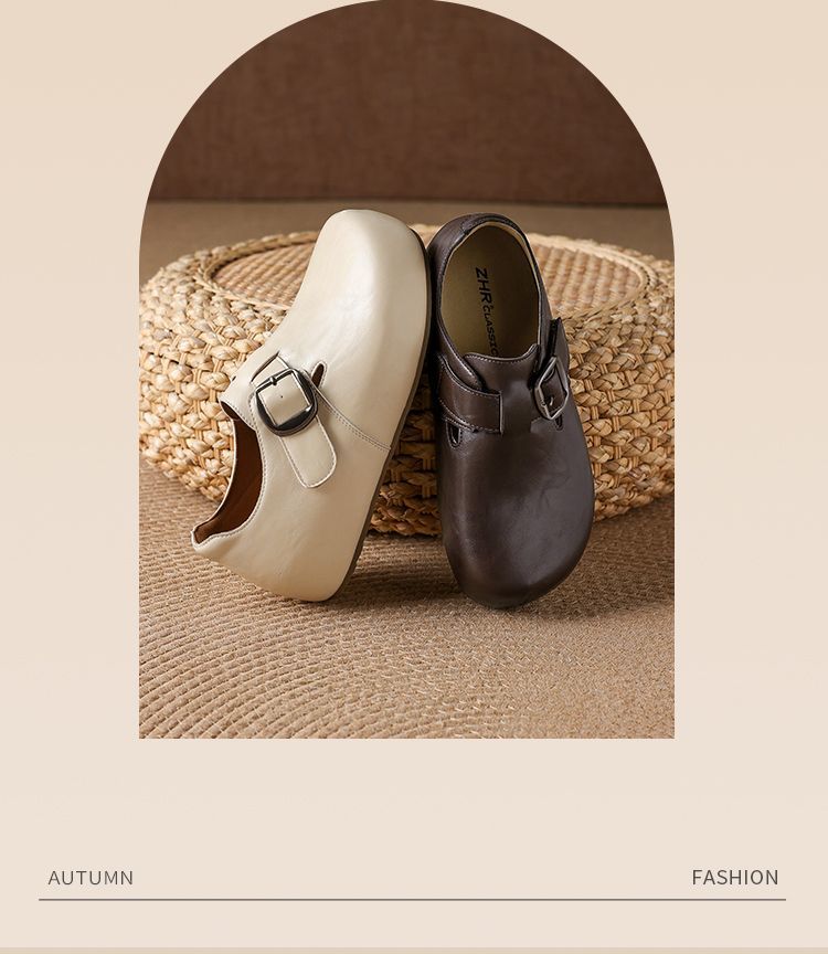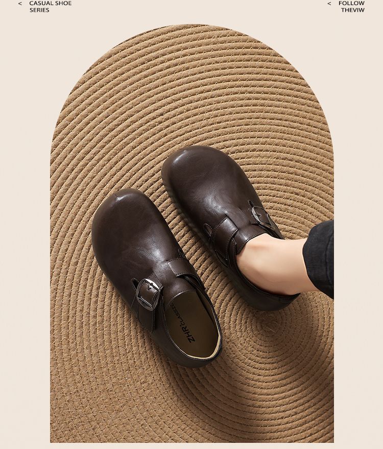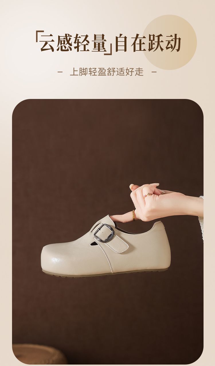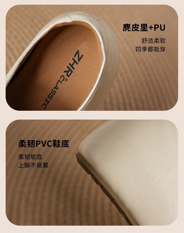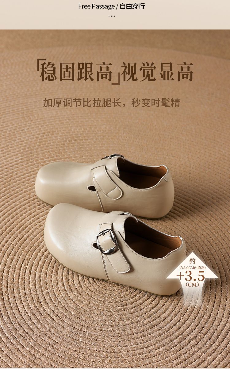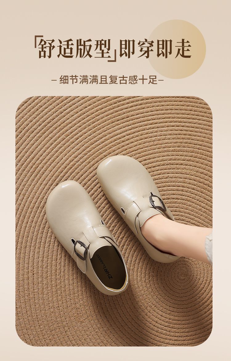 ZHR则则内增高勃肯鞋女2026春季新款英伦风圆头一脚蹬软底小皮鞋