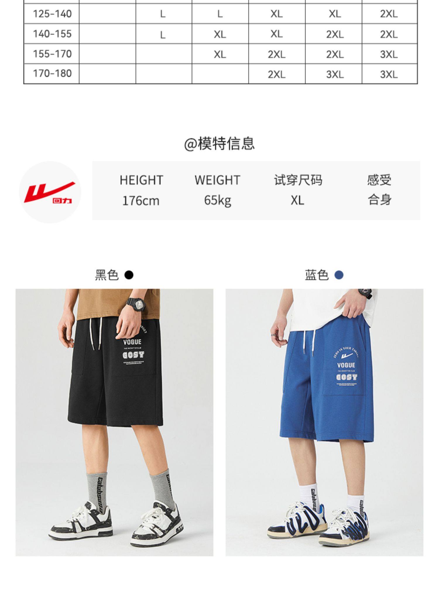 回力休闲短裤男夏季薄款新款美式五分裤潮牌夏天运动宽松中裤子男