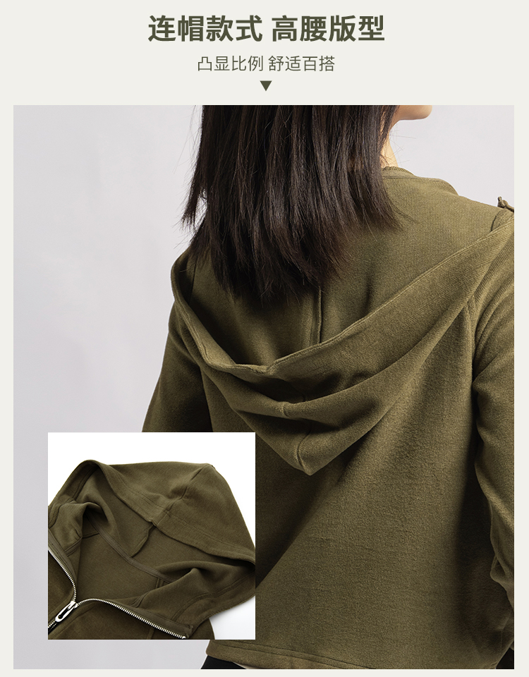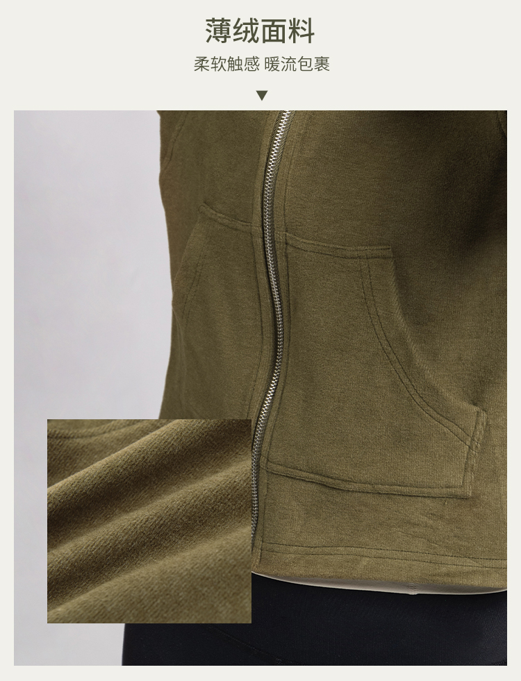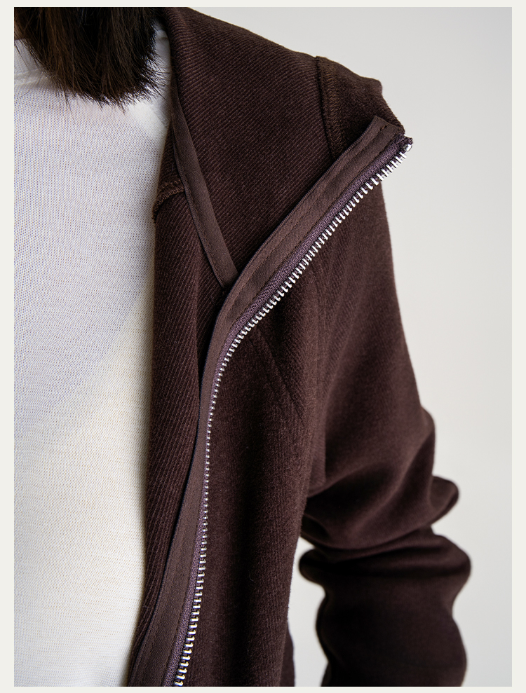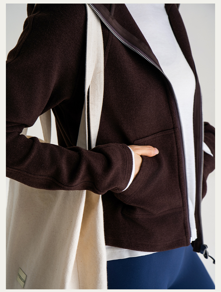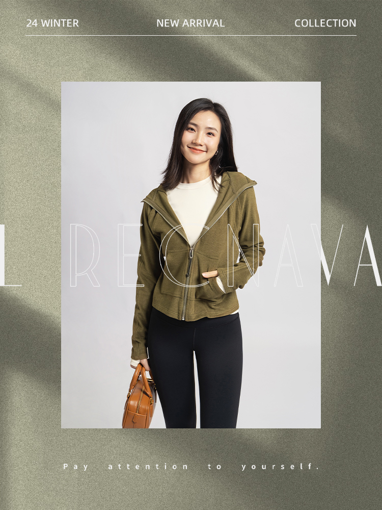 L RECNAVA [薄绒面料] 连帽拉链外套 坑条修身卫衣