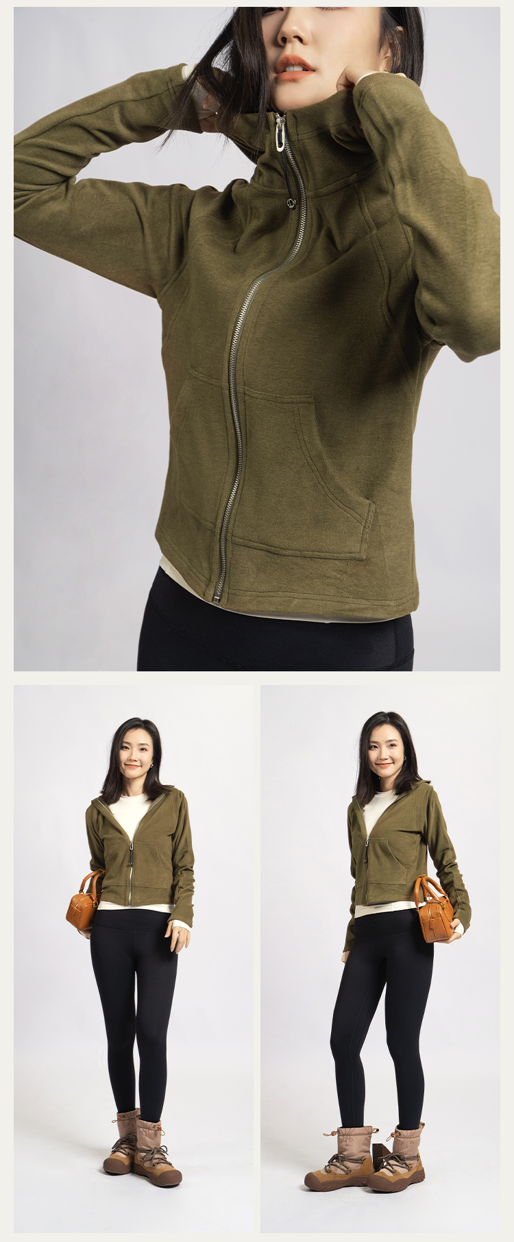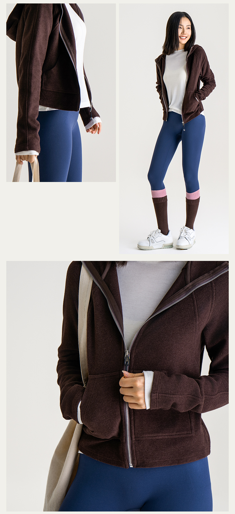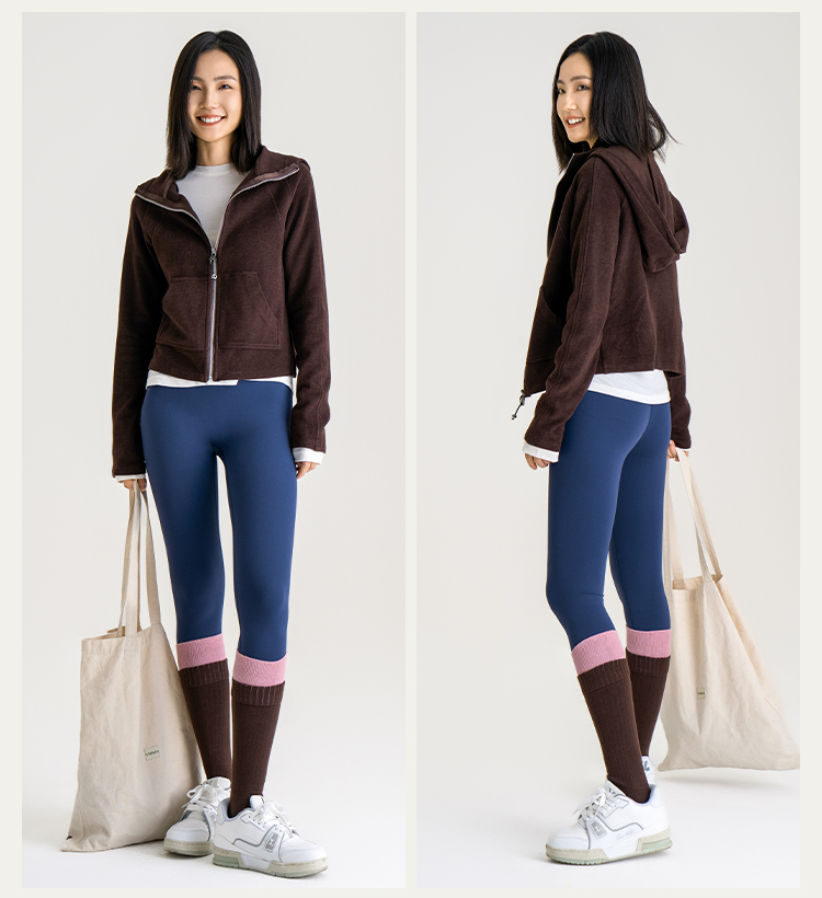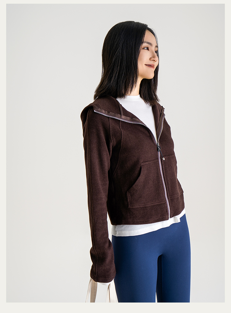L RECNAVA [薄绒面料] 连帽拉链外套 坑条修身卫衣