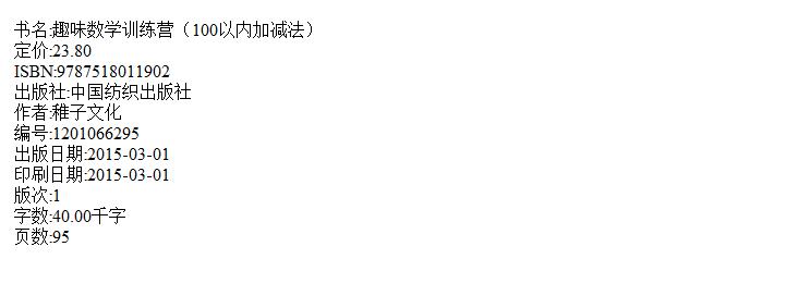 趣味数学训练营(100以内加减法) 稚子文化 中国纺织出版社9787518011902 正版书籍2015年03月出版