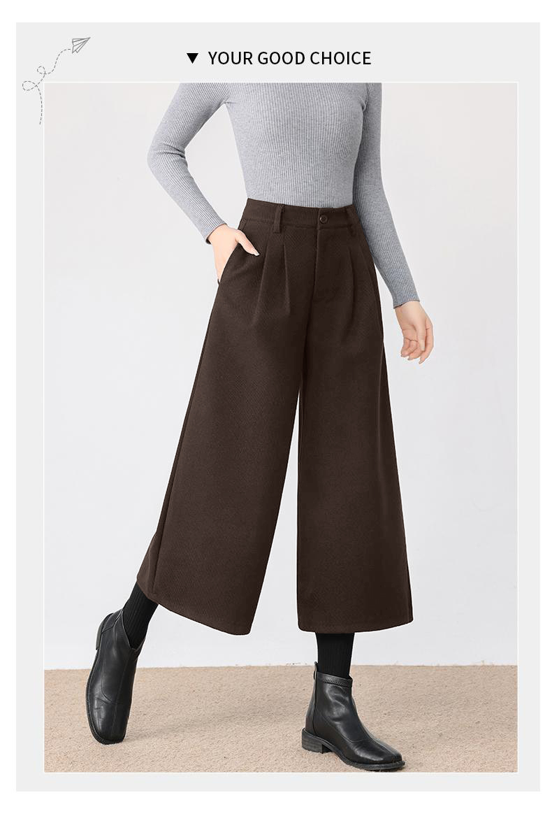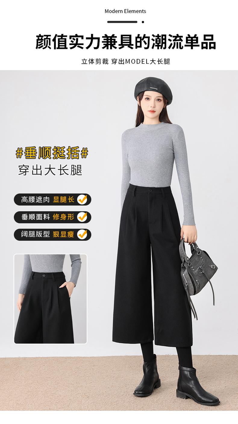 【八分毛呢阔腿裤的魅力!柔软厚实】质感显腿长毛呢西装裤 高腰收腹 柔软厚实 包容多种腿型 显瘦显高 MWX