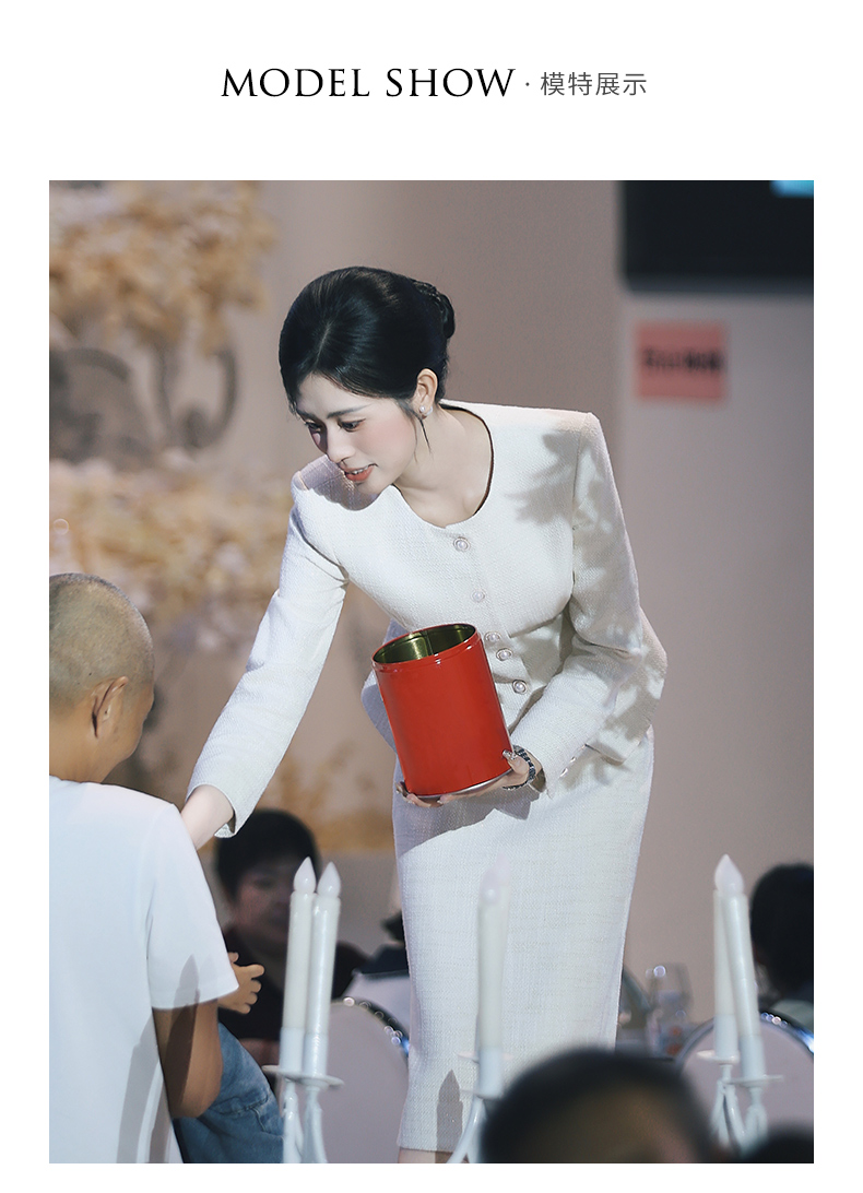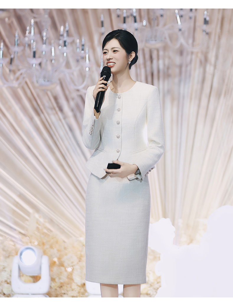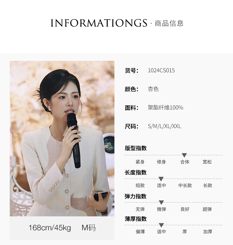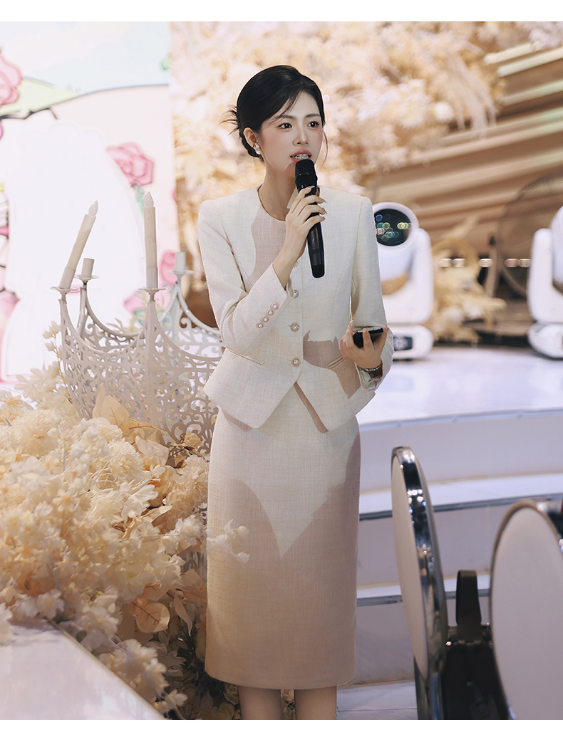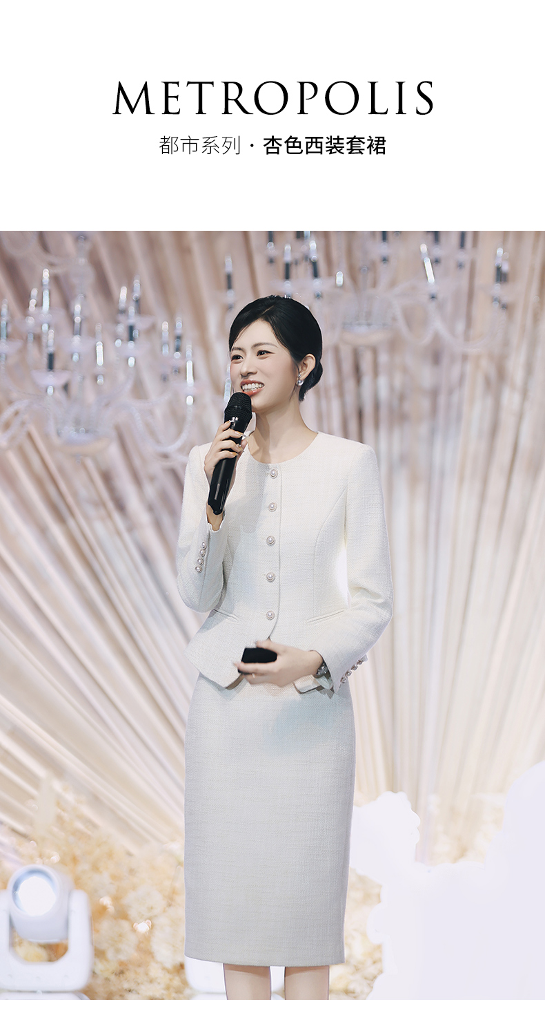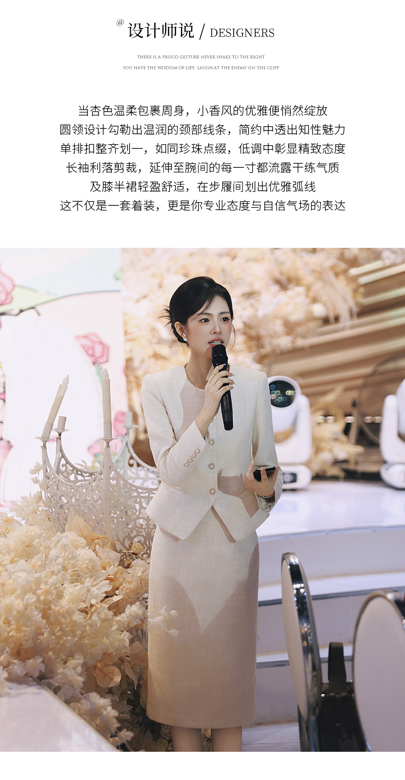 法小曼*子珍气质名媛杏色播音教师小香风套裙女温柔风秋冬职业套装1024C015
