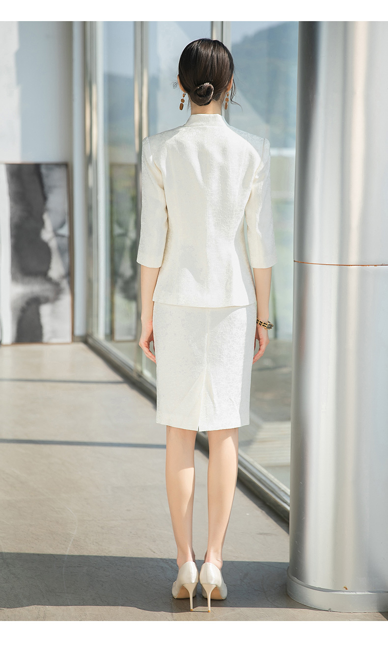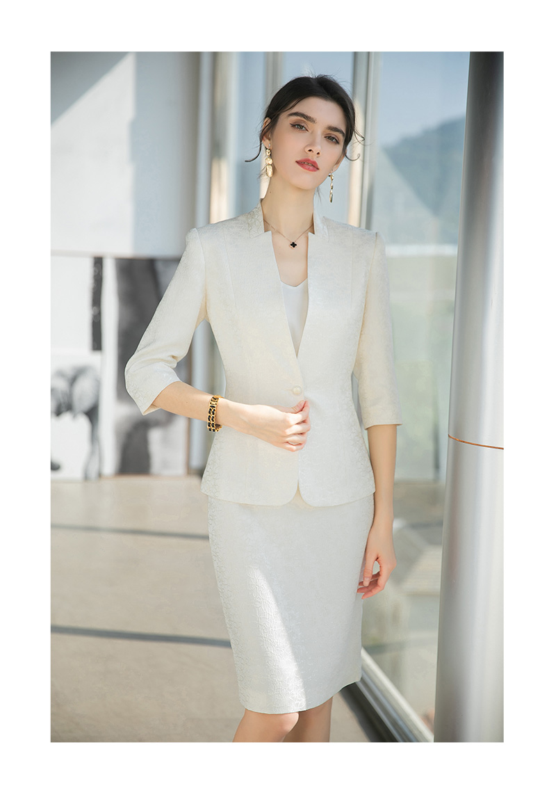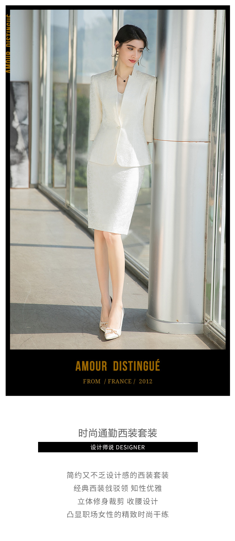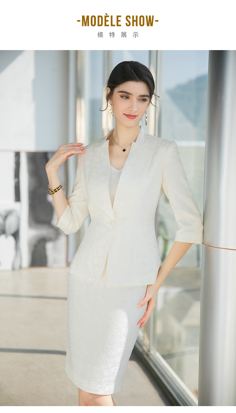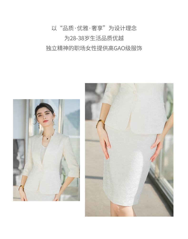 IWY/高端职业装套装女上班气质女神范七分袖米白色名媛小香风西装套裙