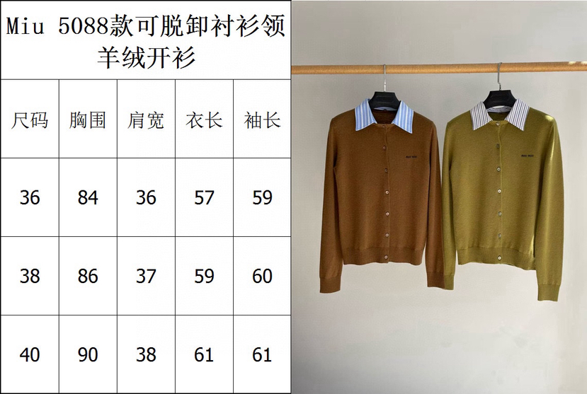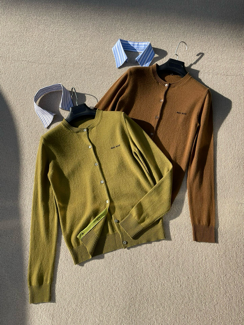 1029-1 独家圆正 miu女士衬衫领长袖开衫