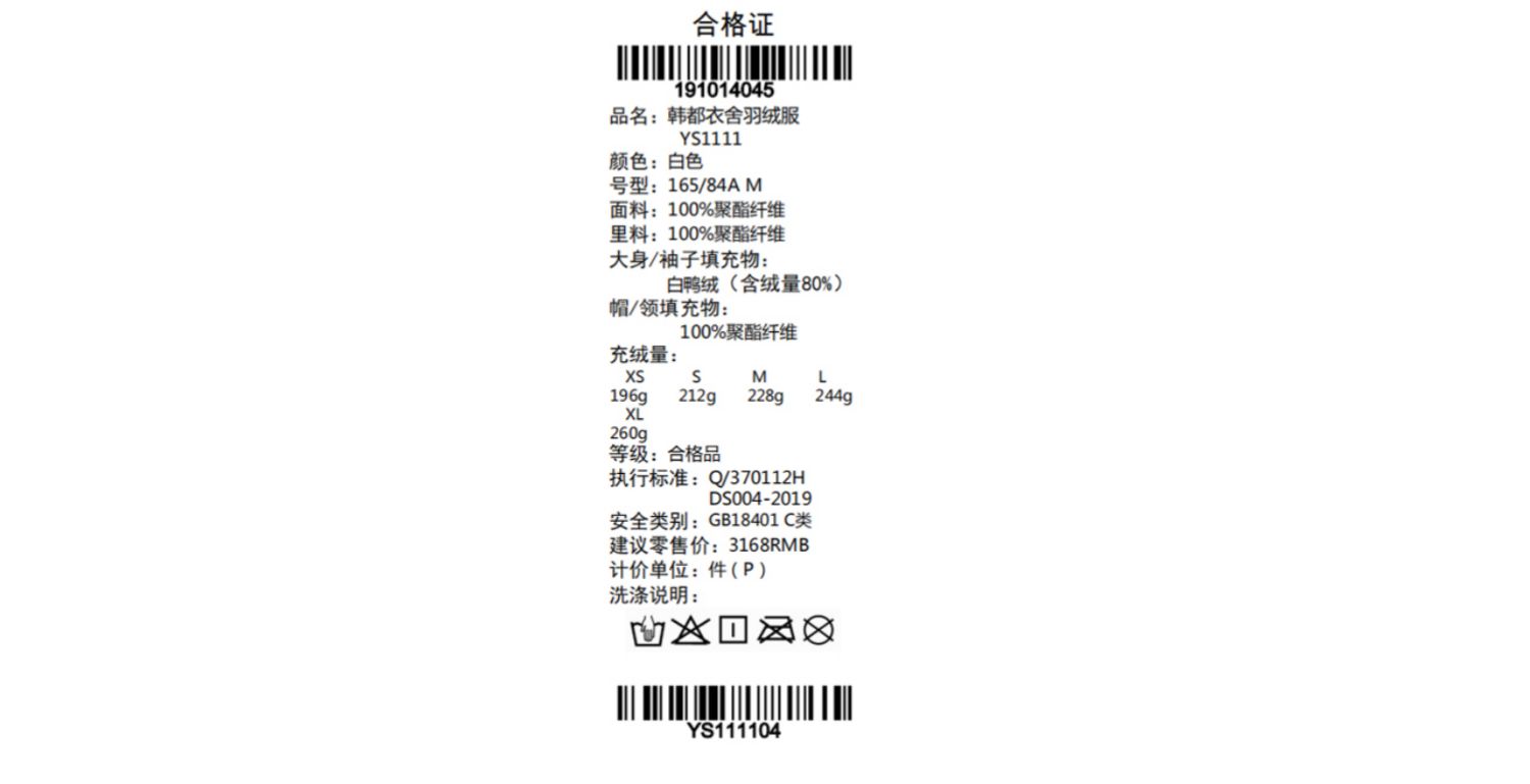 韩都衣舍2020新款冬装外套中长款羽绒服女YS1111魭