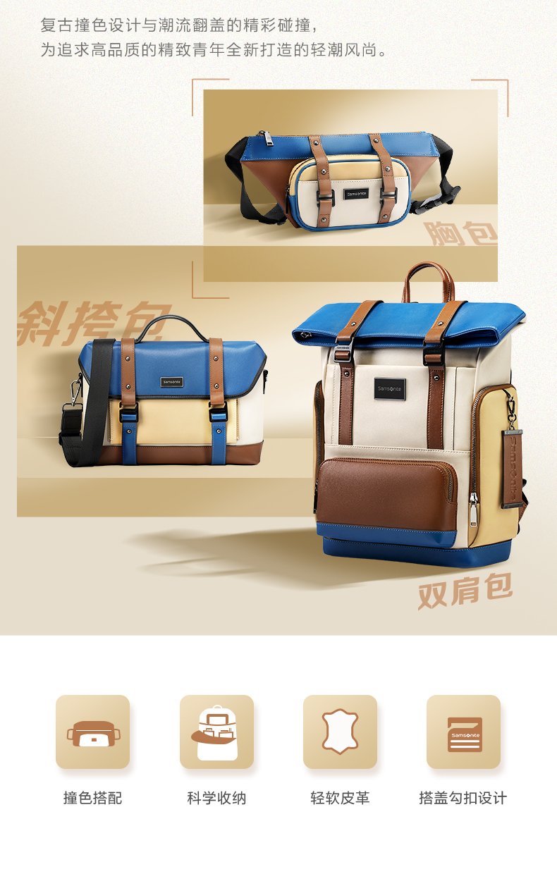 新秀丽LUCIA系列复古款休闲旅行,时尚潮流轻软牛皮革单肩背包 TM7*010
