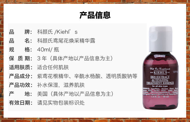 【爆款超低价预售 急单慎拍】【专柜正品】科颜氏鸢尾花焕采精华露爽肤水40ml滋养提亮改善暗沉