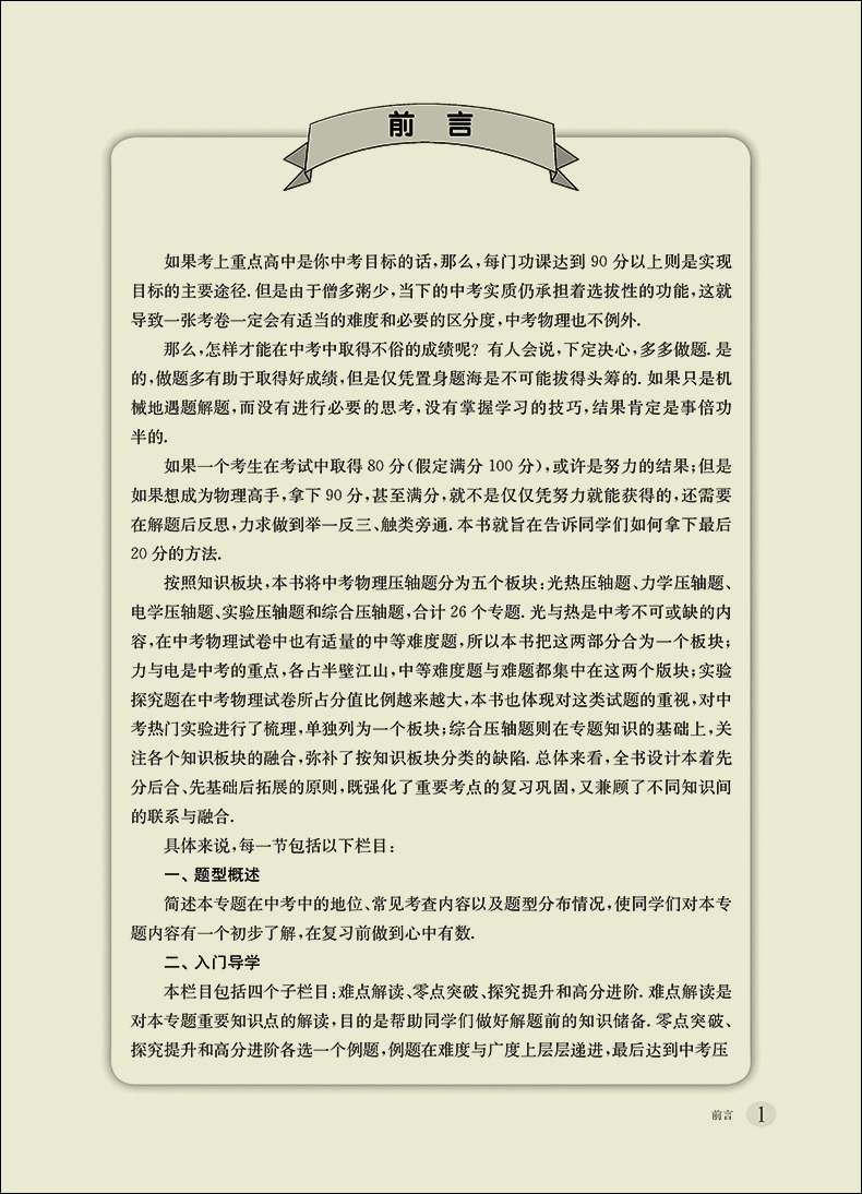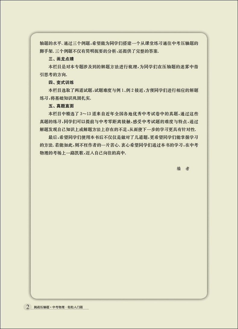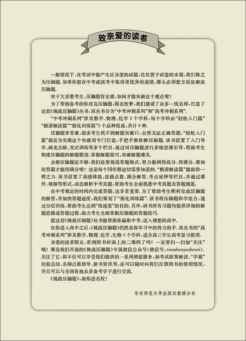 2021版 挑战压轴题 中考物理 轻松入门篇 初一初二初三七八九年级初中复习培优冲刺教辅 真题模拟训练 华东师范大学出版社