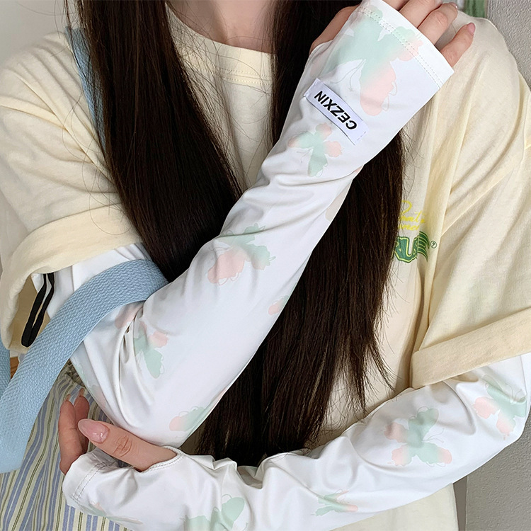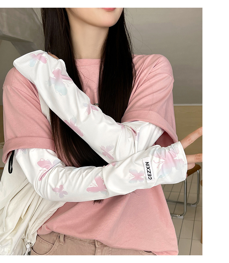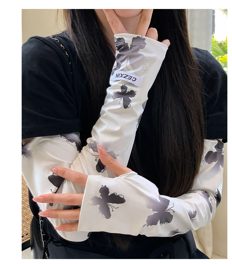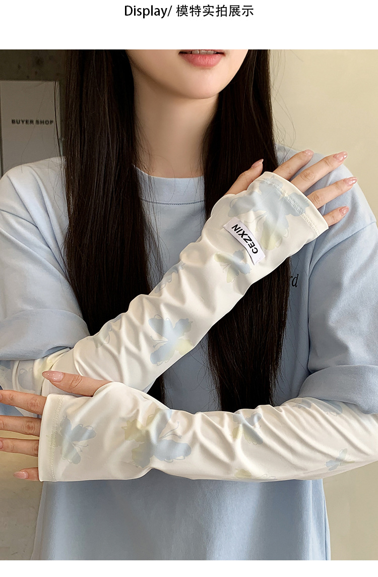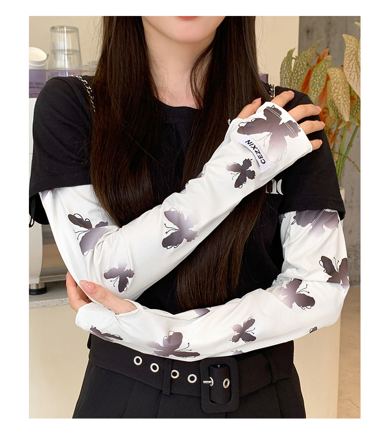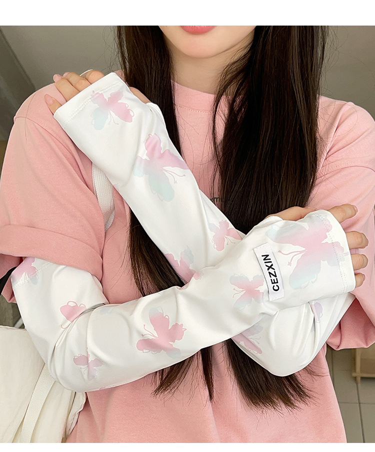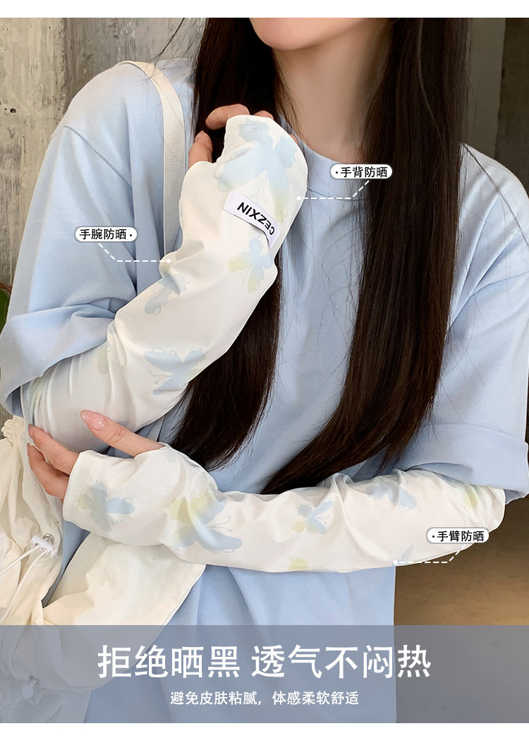 超值两件【渐变蝴蝶印花❗️颜值拉满】新款蝴蝶防晒袖套韩版女生防紫外线护臂冰丝手套遮阳开车冰袖。rh