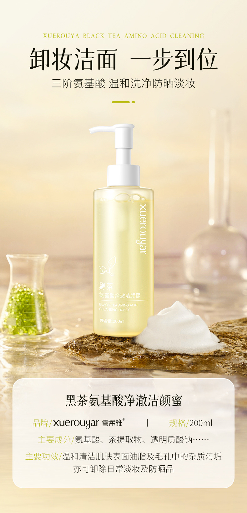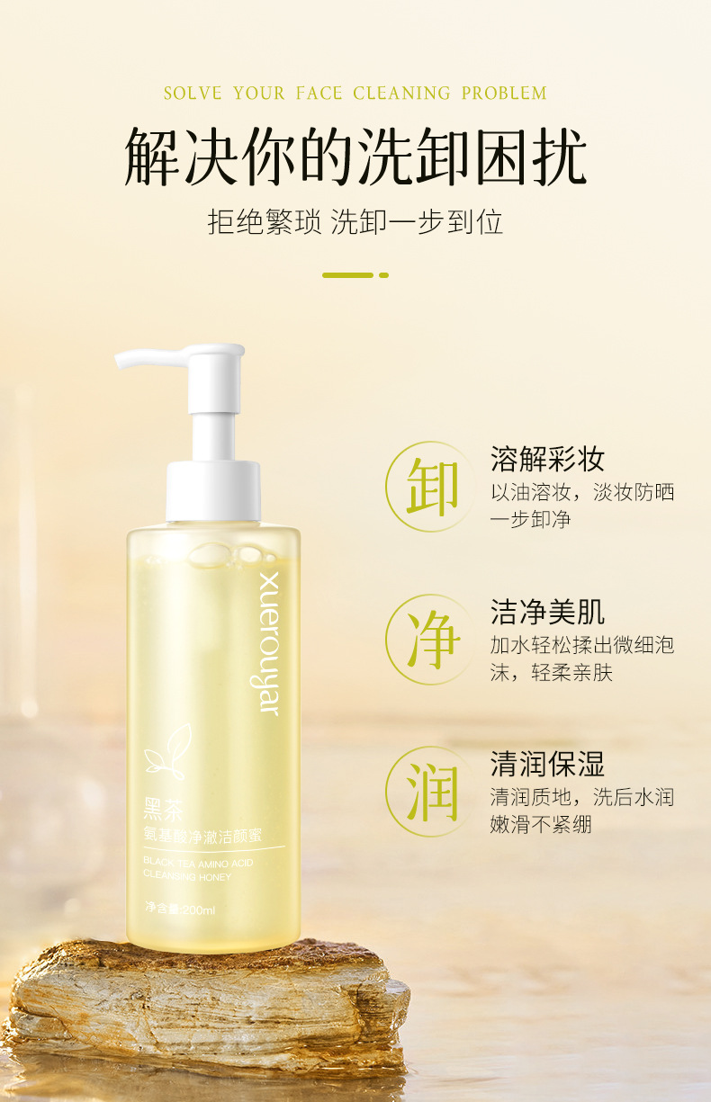 29.9/2瓶【卸妆洁面!一步到位】明星代言 粉丝力荐 黑茶洁颜蜜面部温和控油,深层清洁氨基酸洗面奶洁面乳,洁净美肌 清润保湿。ry