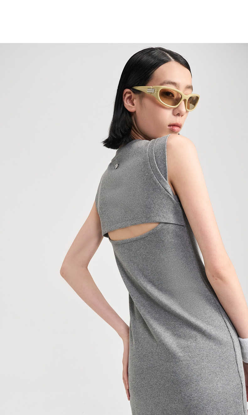 lost in echo2024夏季新款高级镂空修身短款纯棉百搭背心裙连衣裙