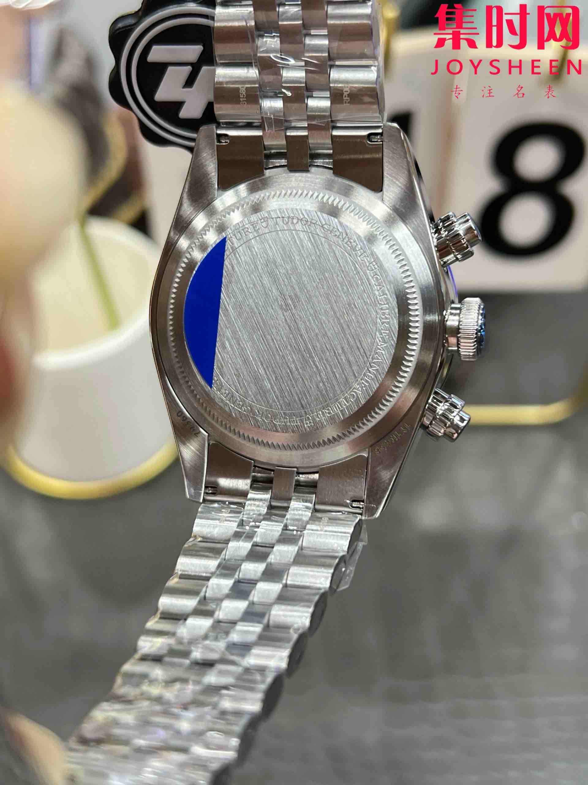 【表壳】正品1:1开模 表径41mm 采用316L精钢表壳,表面拉丝和抛光工艺交交替处理,抗划痕性强,质感十足。配备起高工艺的黑色阳极氧化铝测速计字外圈,旋入式表冠和密闭式底盖,赋予腕表200米防水。