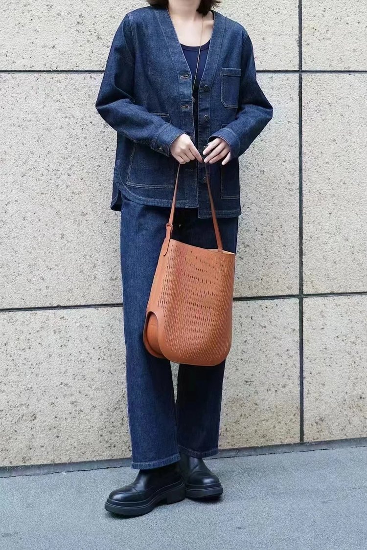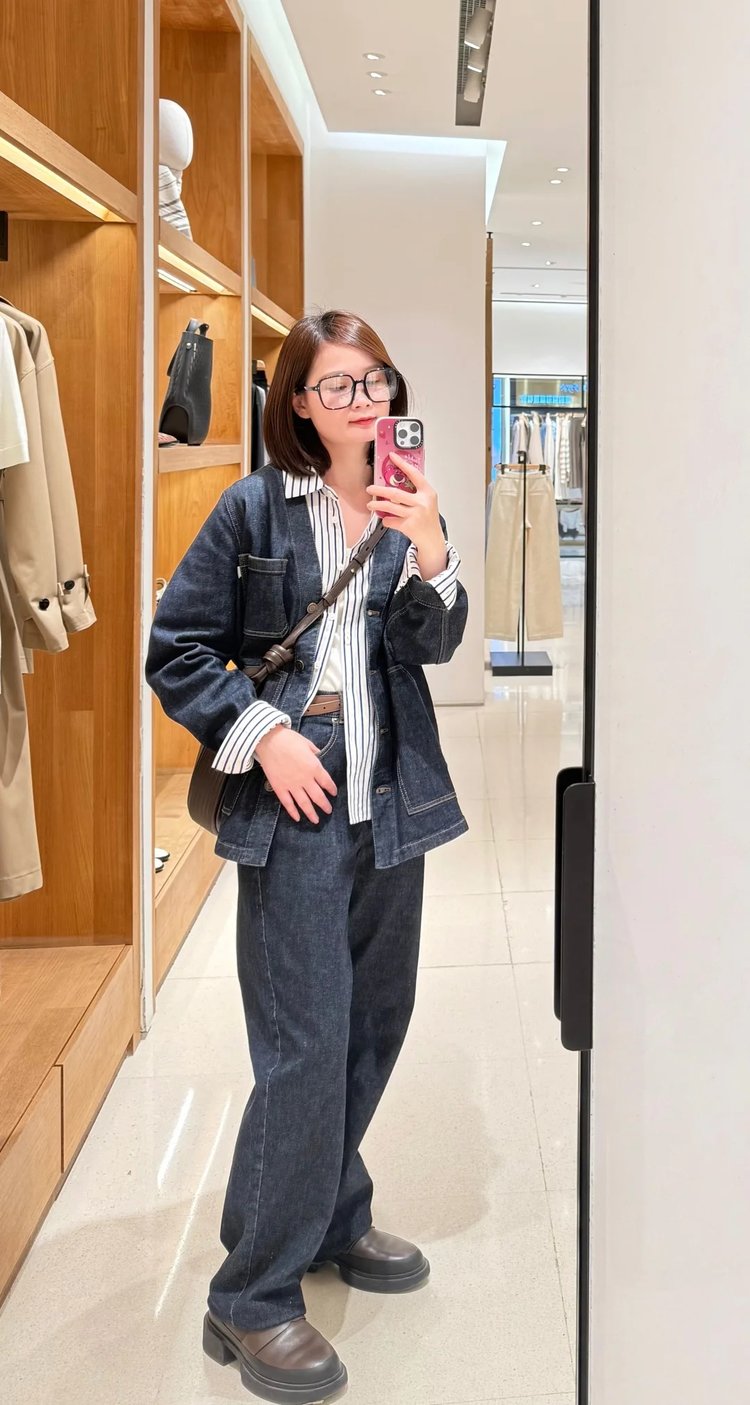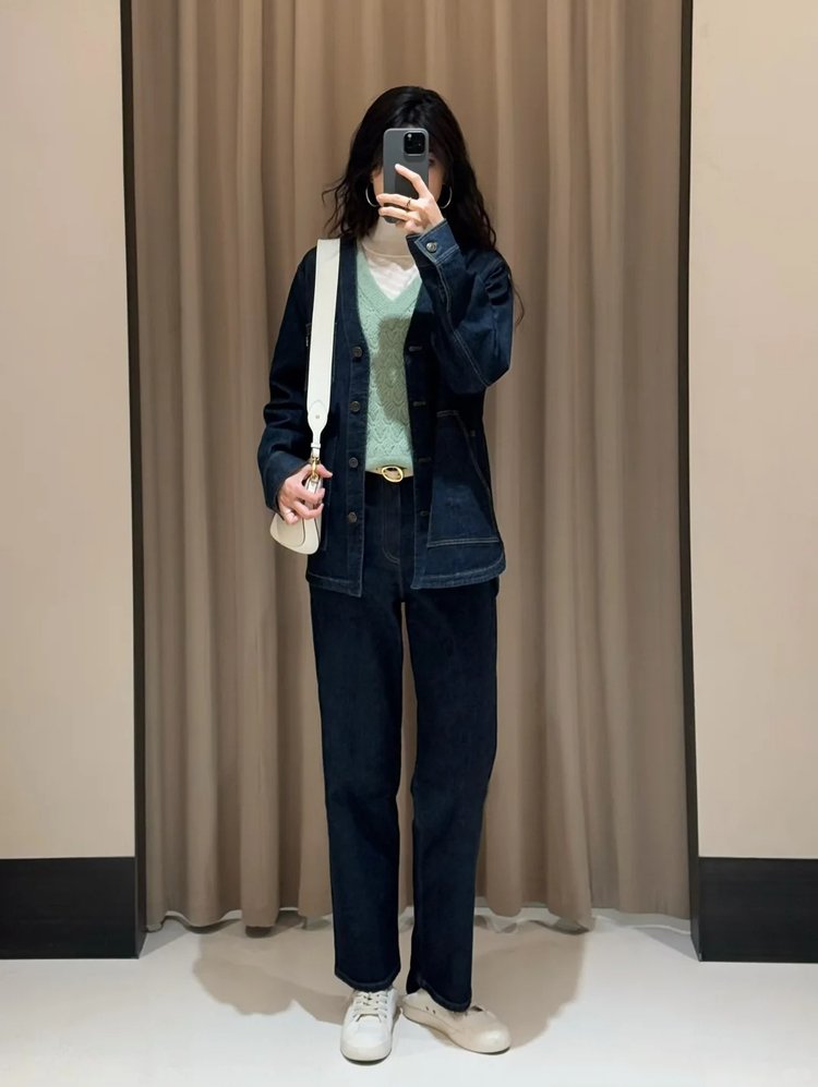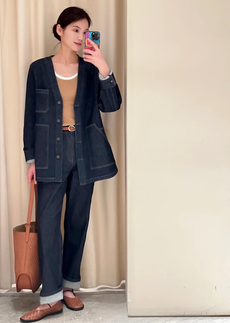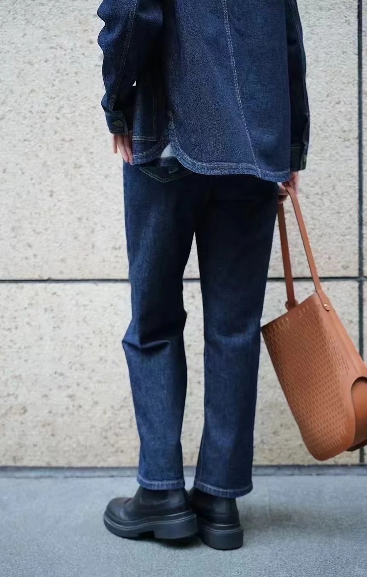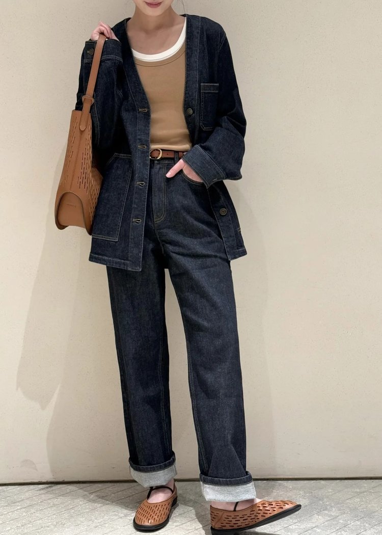 搭配同面料牛仔裤,打造率性自由的日常通勤造型