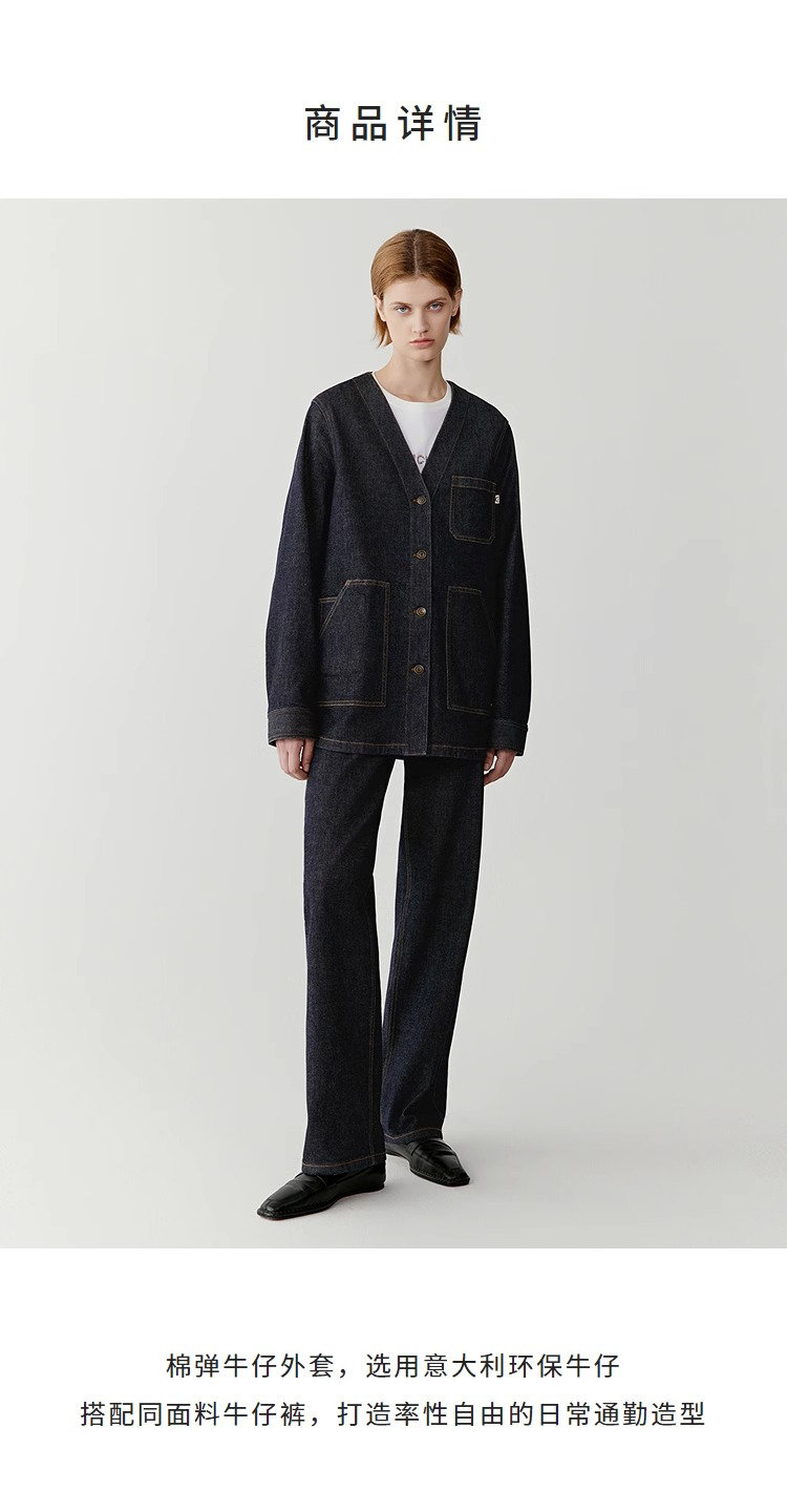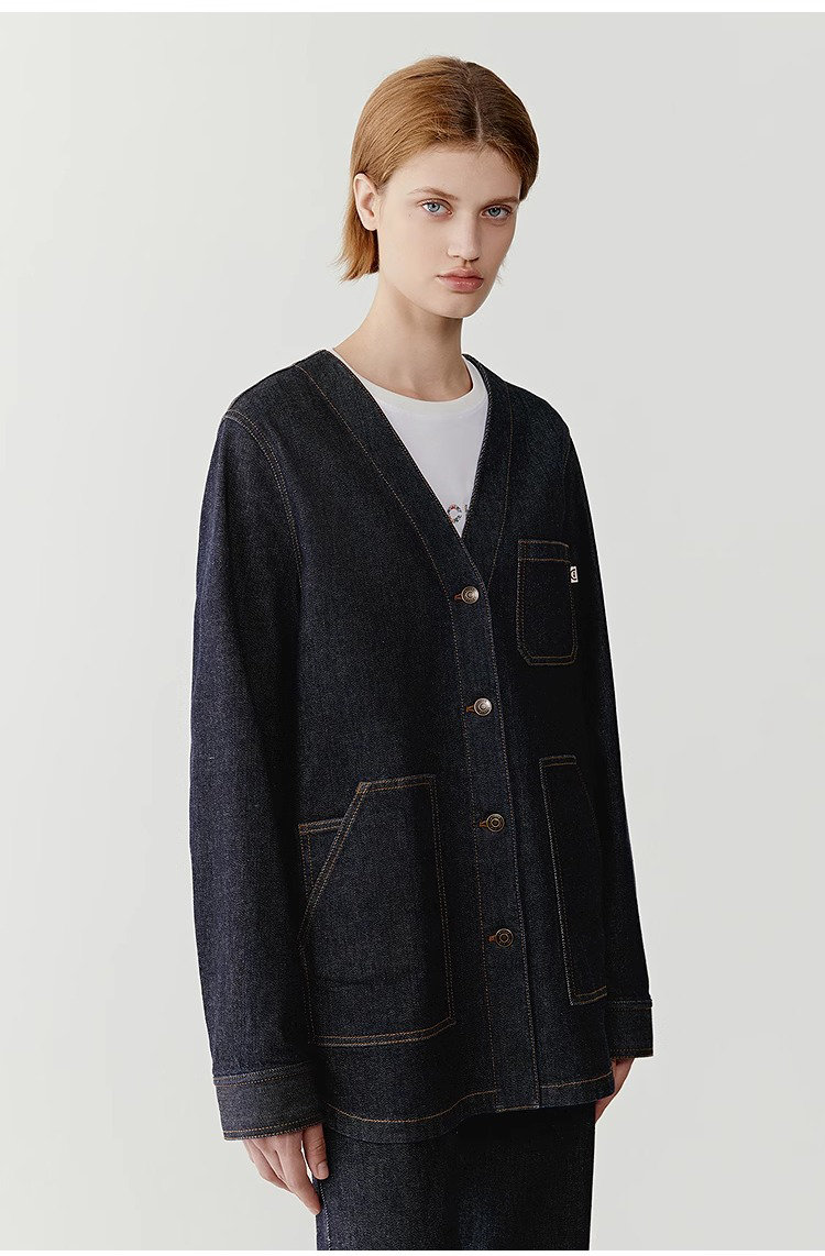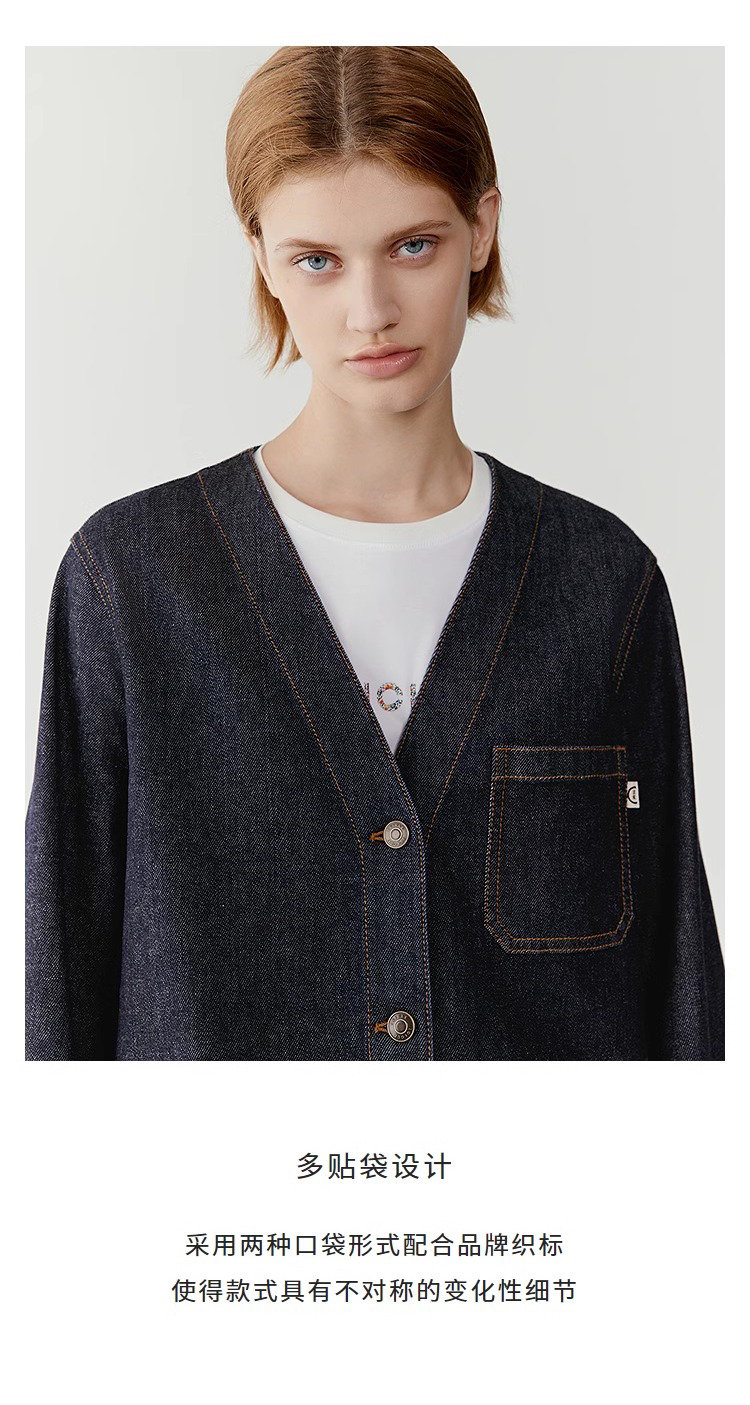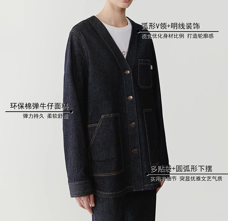小禾同款进口环保棉弹牛仔 V 领明线外套