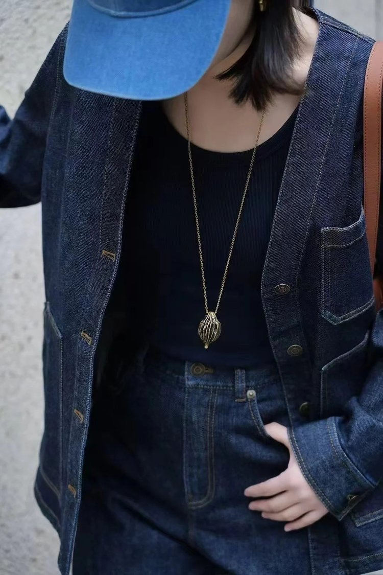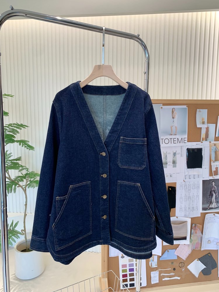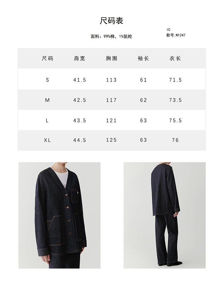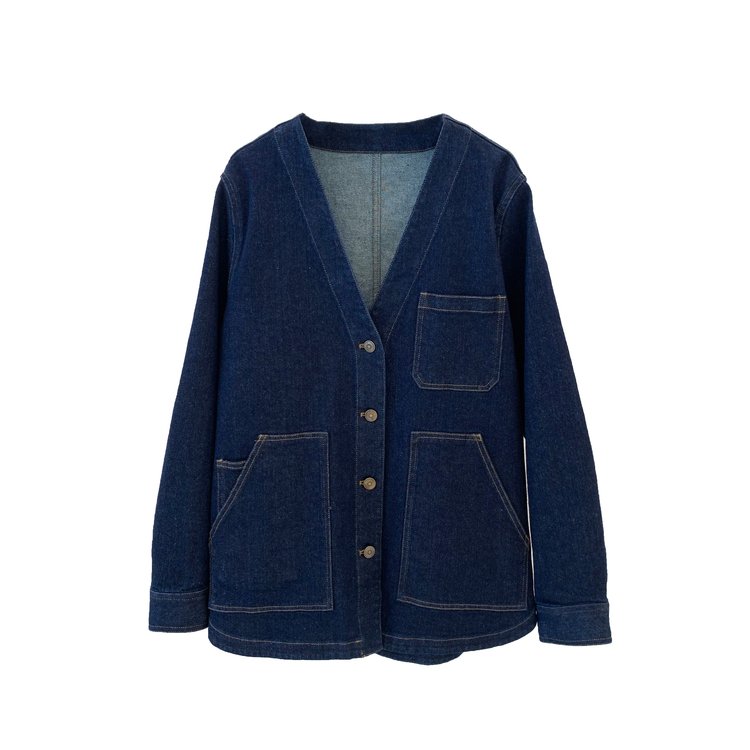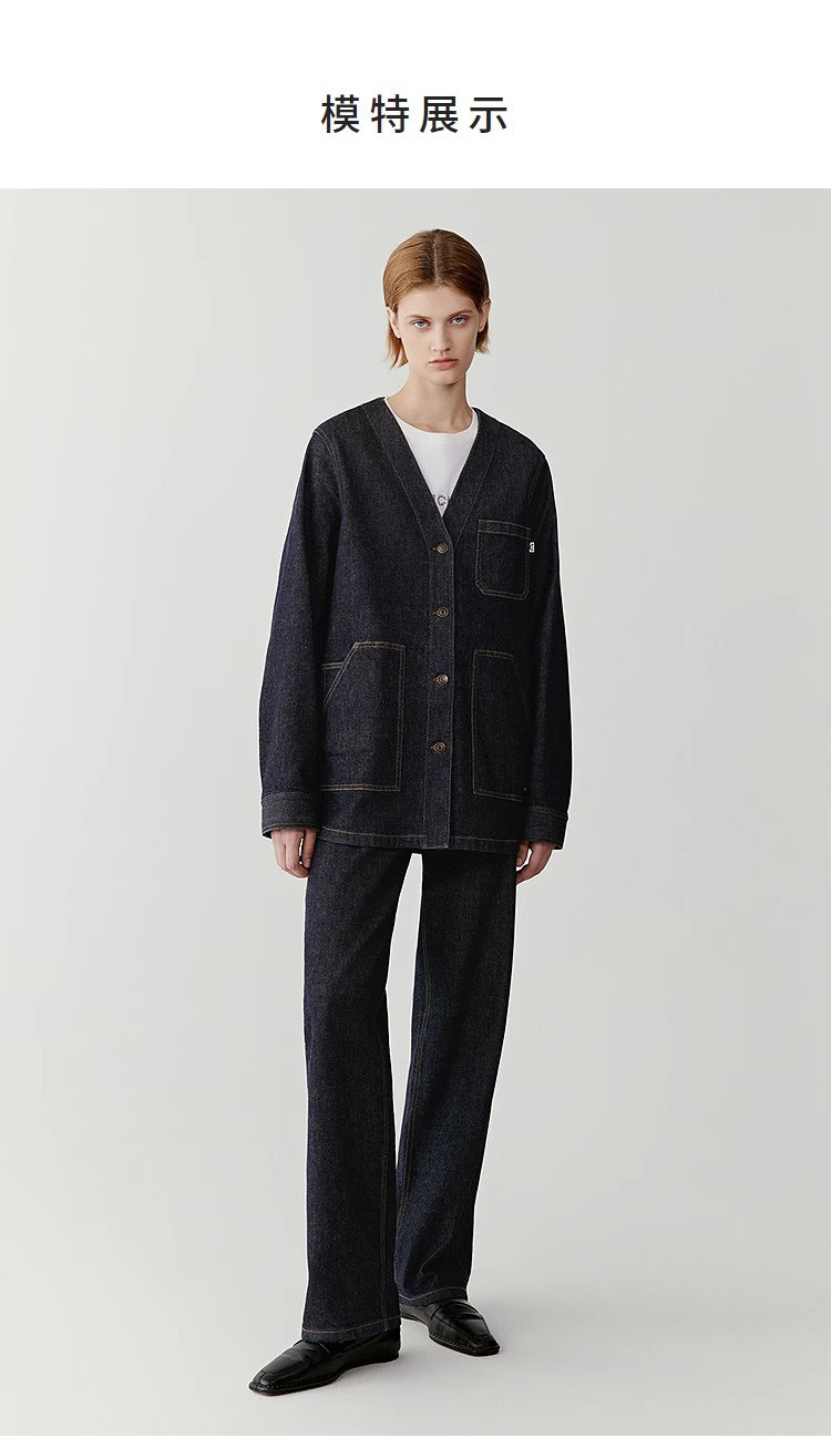 小禾同款进口环保棉弹牛仔 V 领明线外套