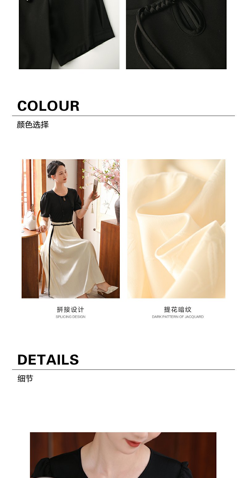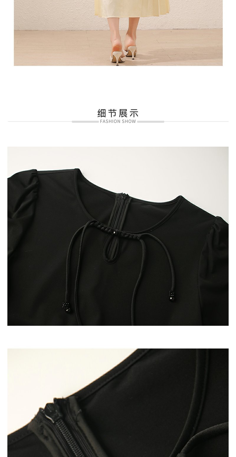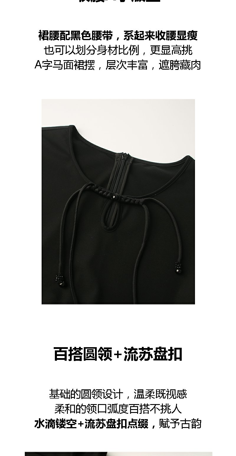 未风黑色假两件连衣裙女夏2025年夏季新款时尚泡泡袖收腰显瘦裙子
