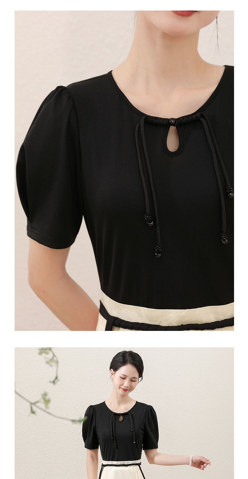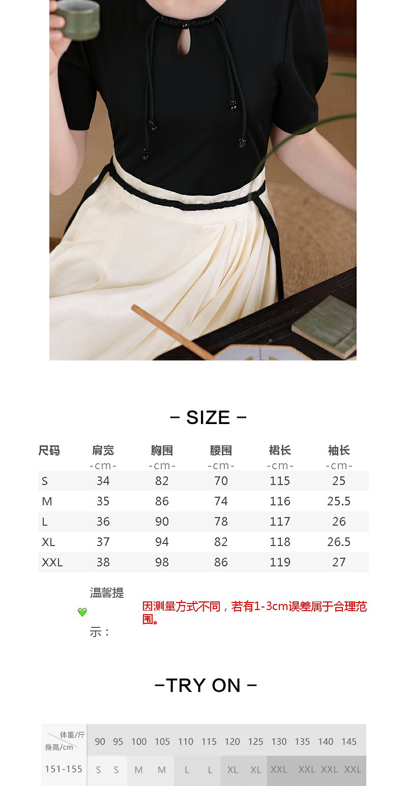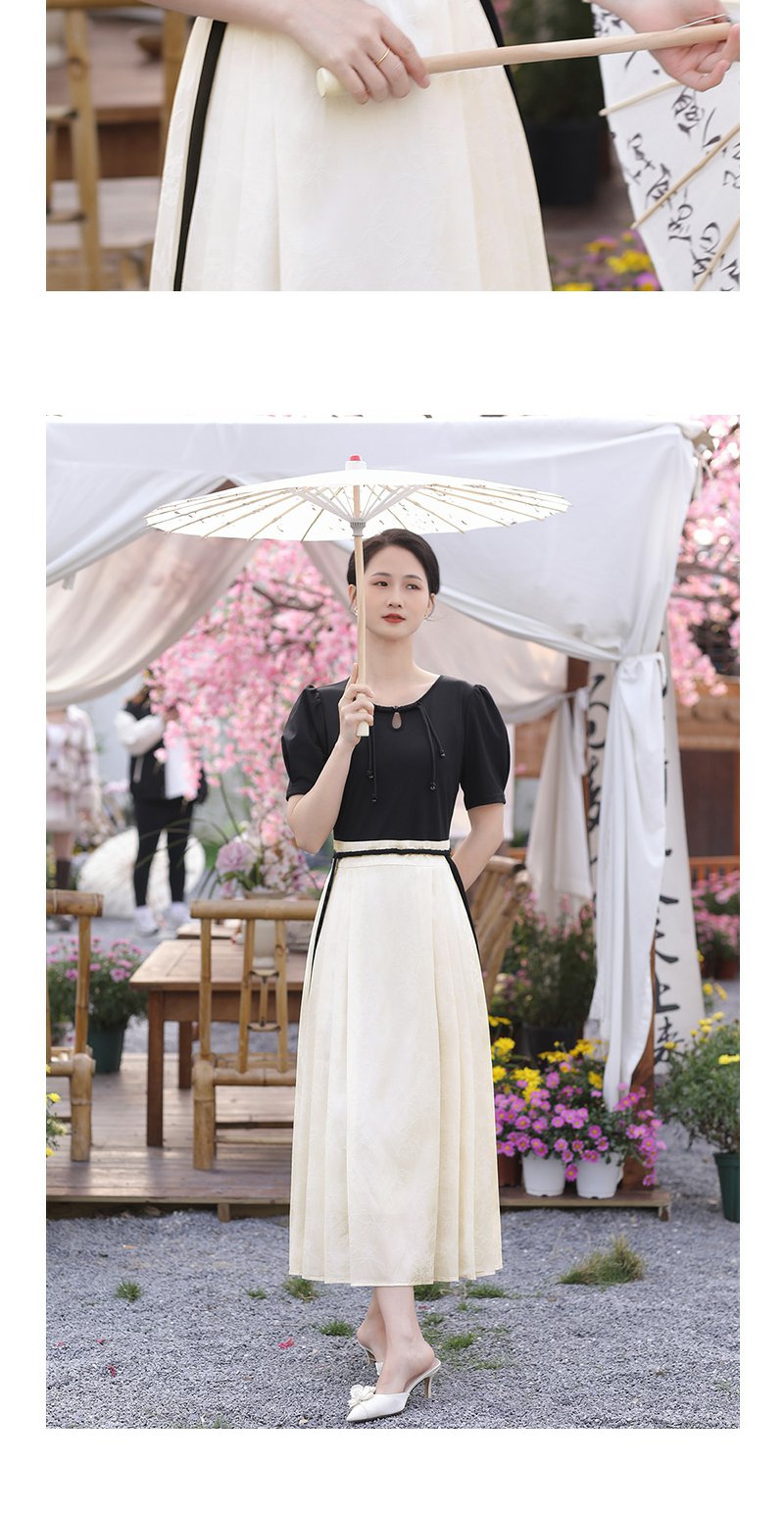 未风黑色假两件连衣裙女夏2025年夏季新款时尚泡泡袖收腰显瘦裙子