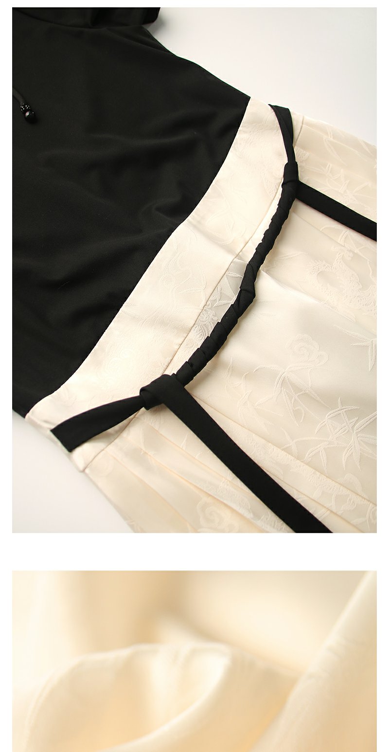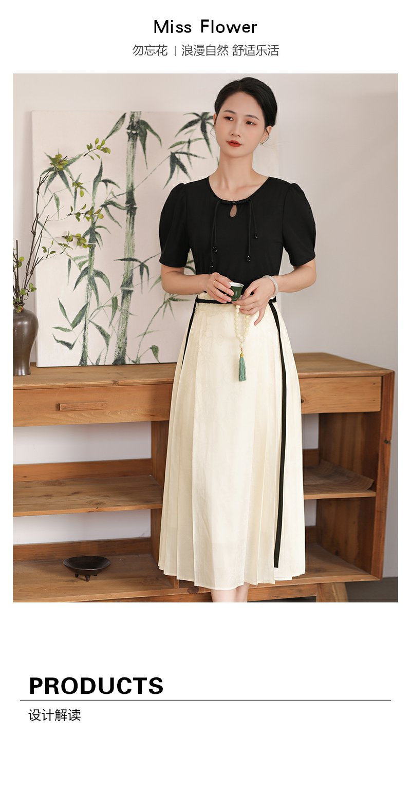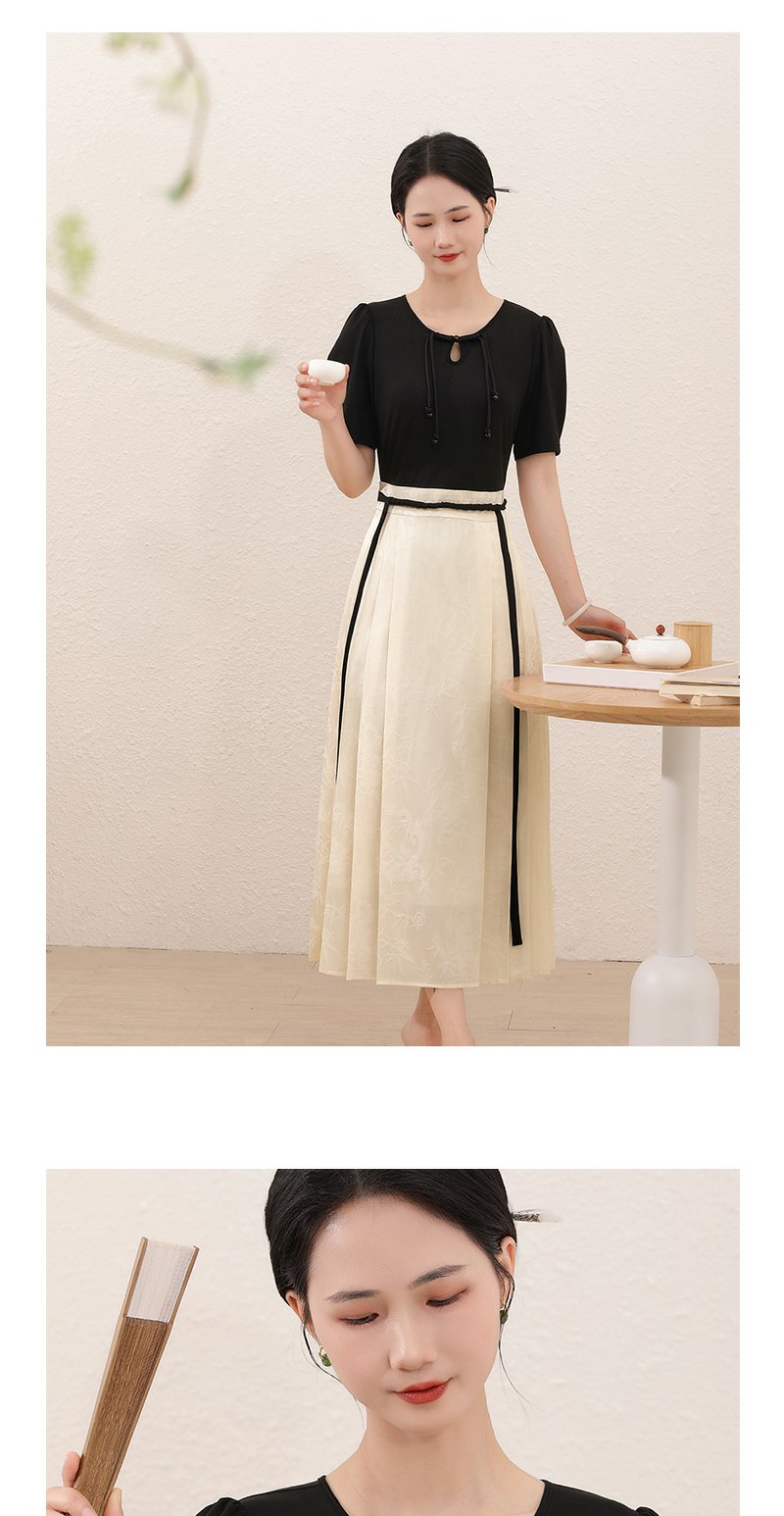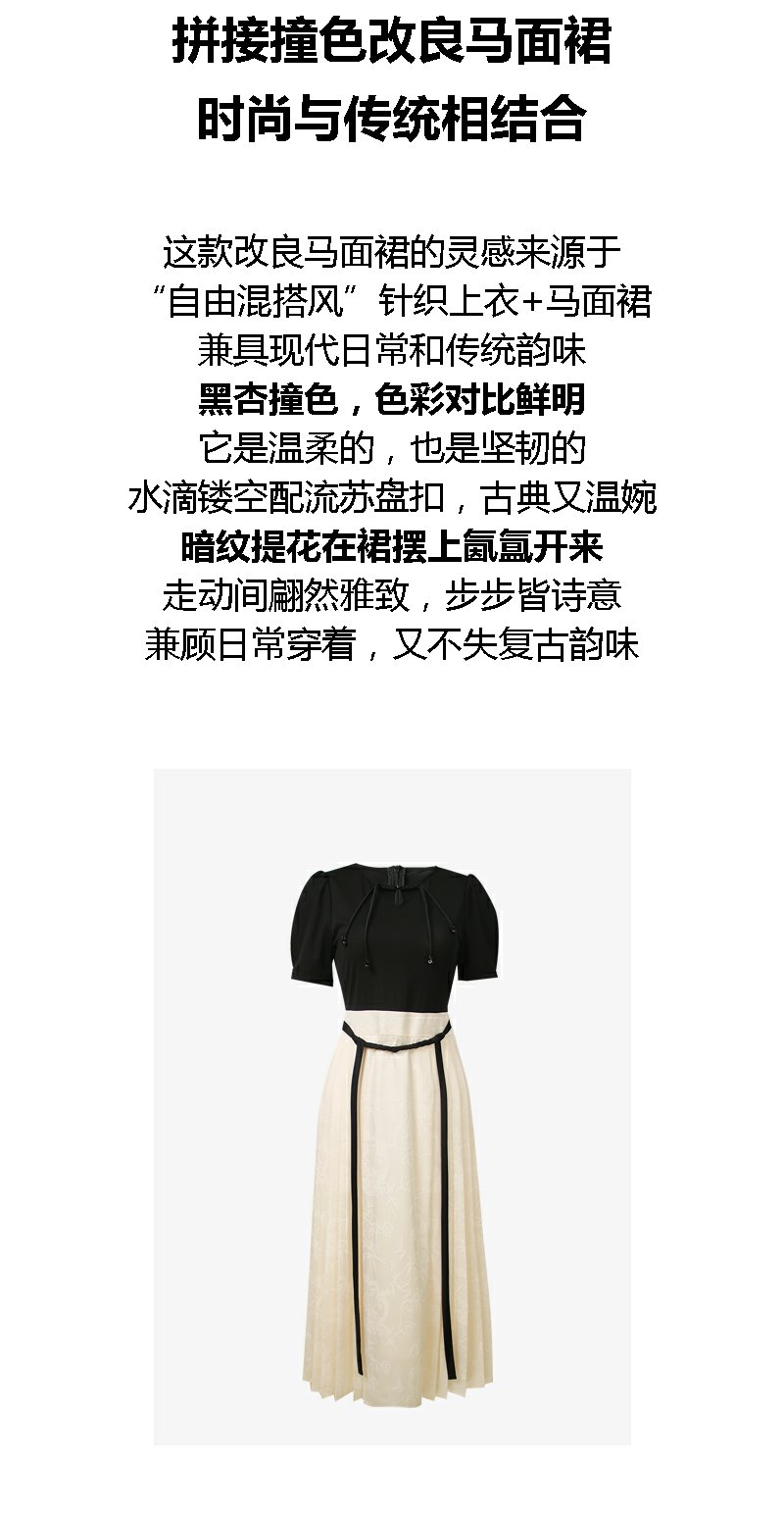 勿忘花杏色针织拼接马面裙日常通勤新中式连衣裙今年流行裙子