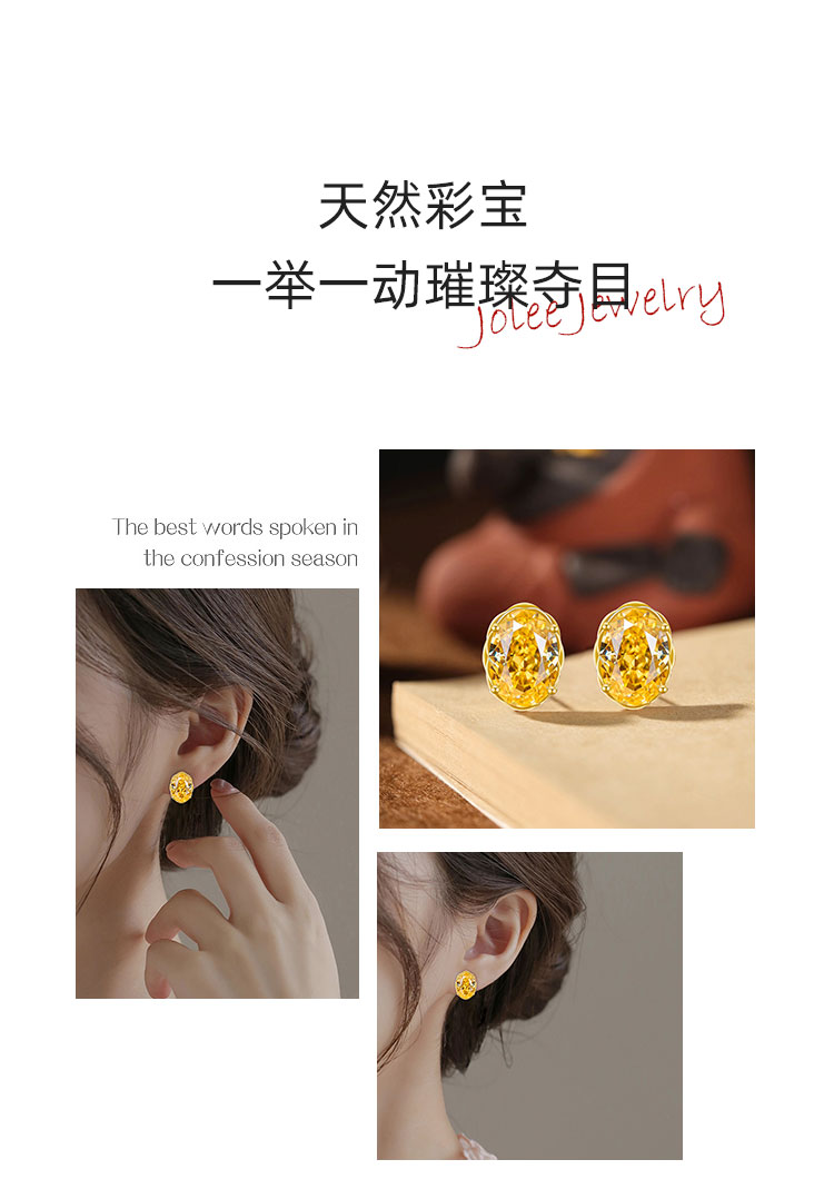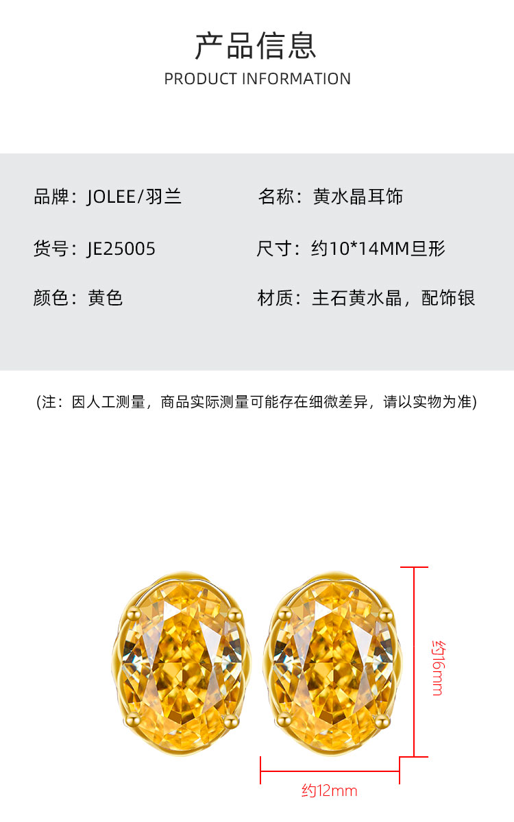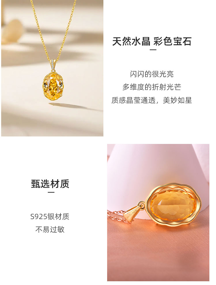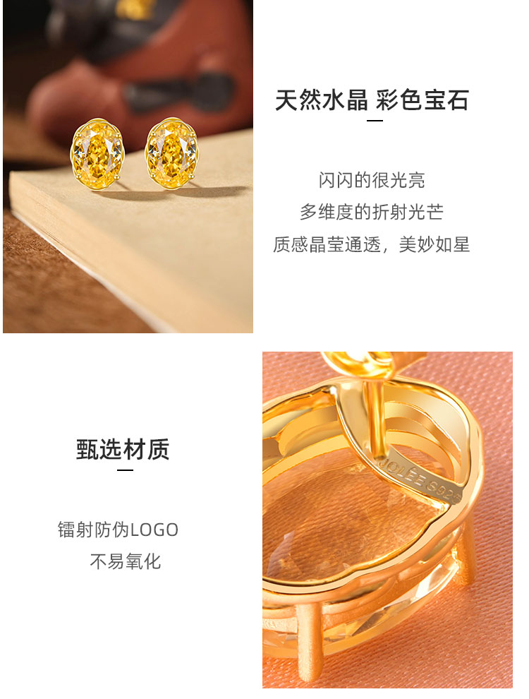 【黄水晶戒指/耳环/吊坠】S925银黄水晶均码轻奢时尚首饰品JR25005/JE25005/JP25005
