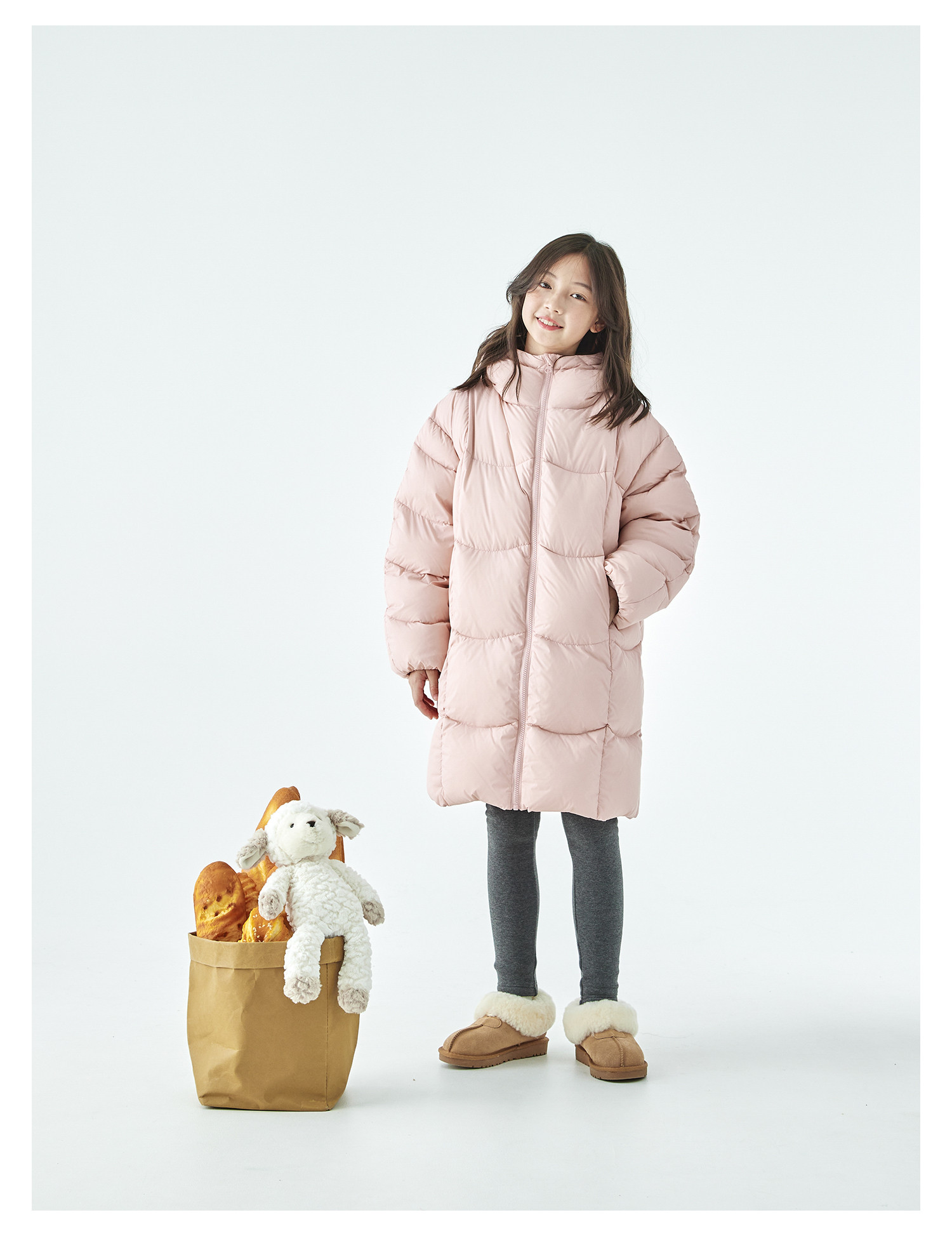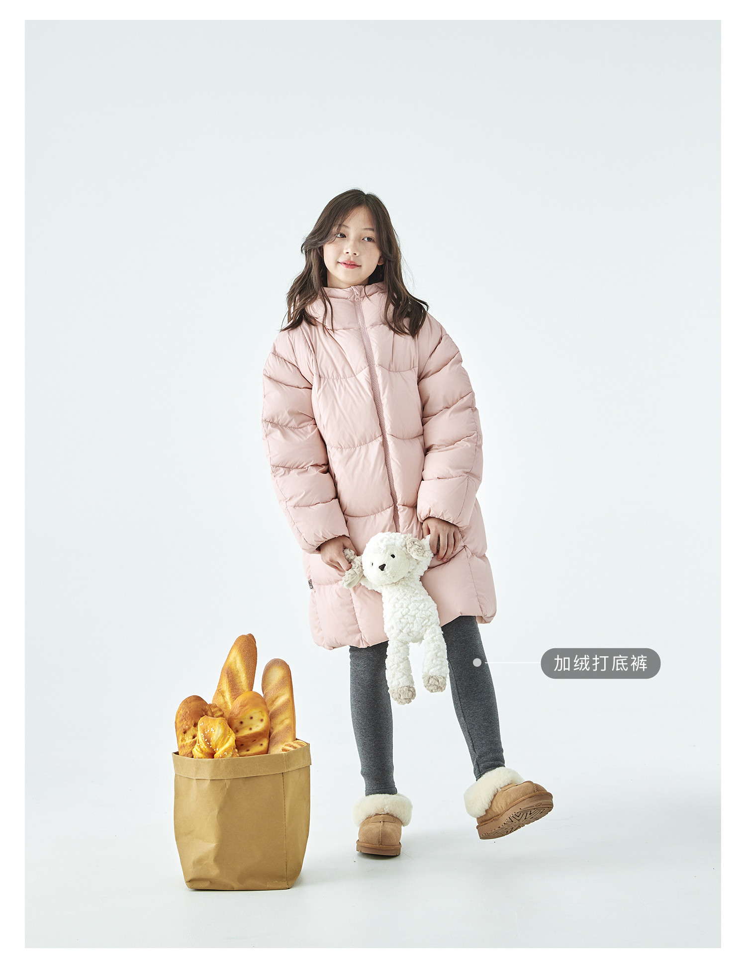 棵初25年冬季新款亲子中大女童中长款羽绒服三防面料吐司造型外套