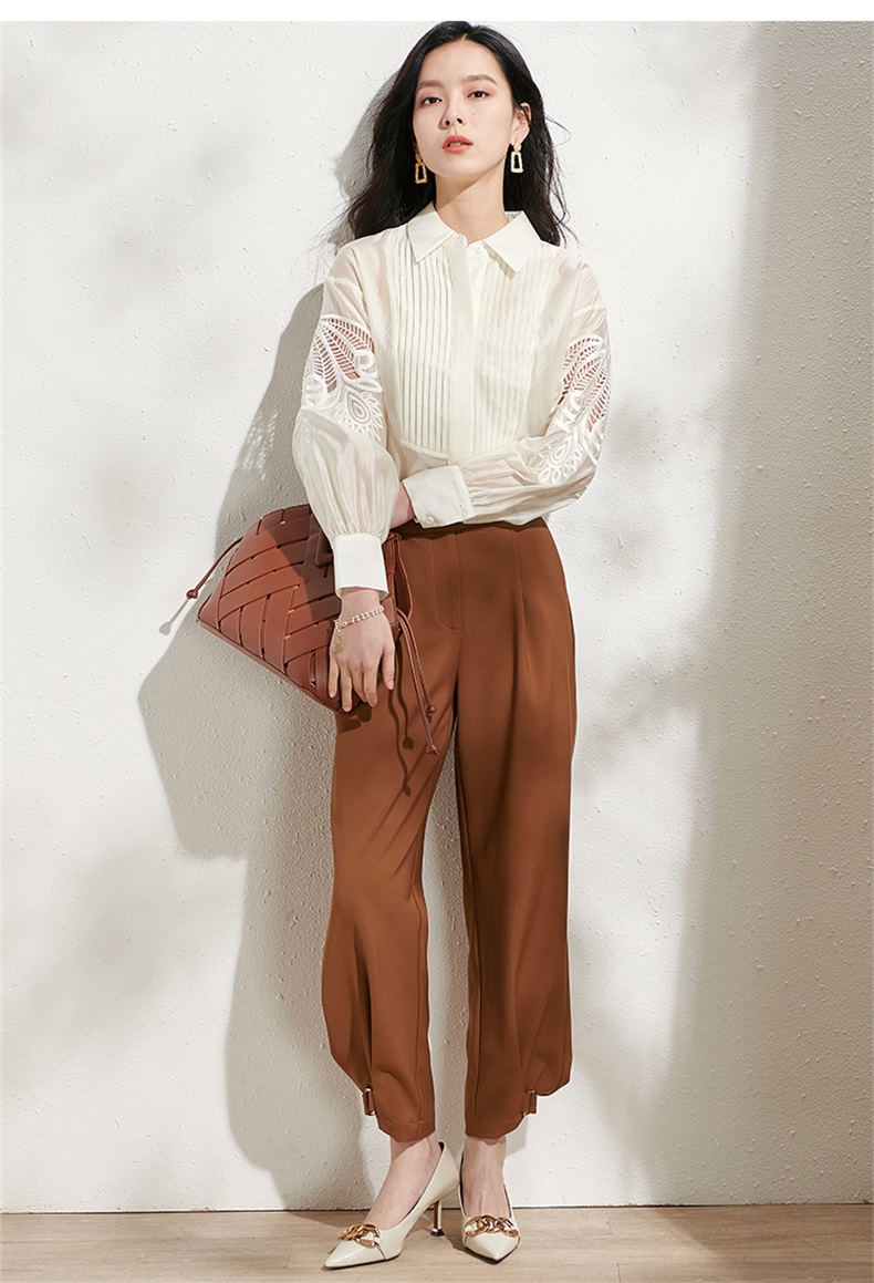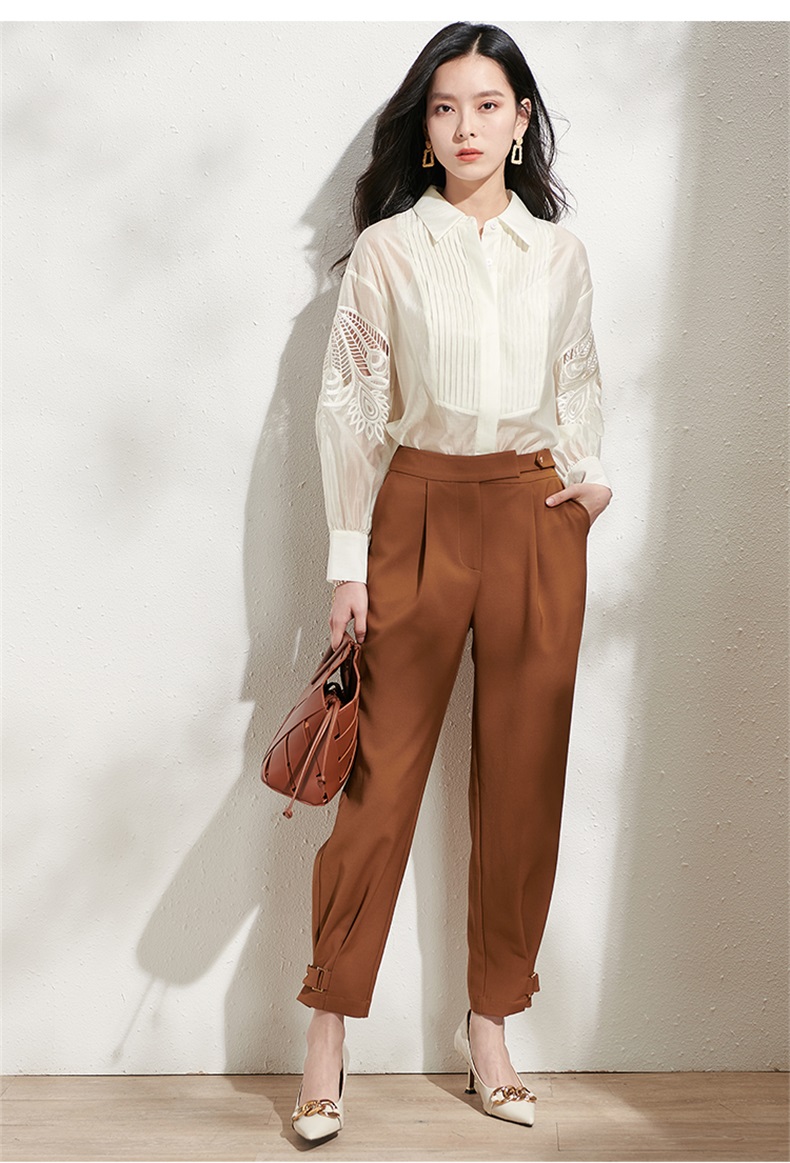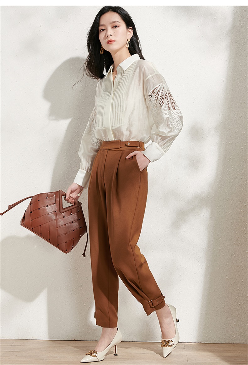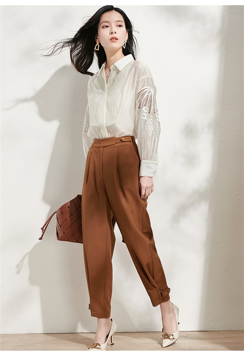剩S/M 芳外新款时尚通勤哈伦裤女宽松舒适微弹长裤休闲裤8T22AH0146
