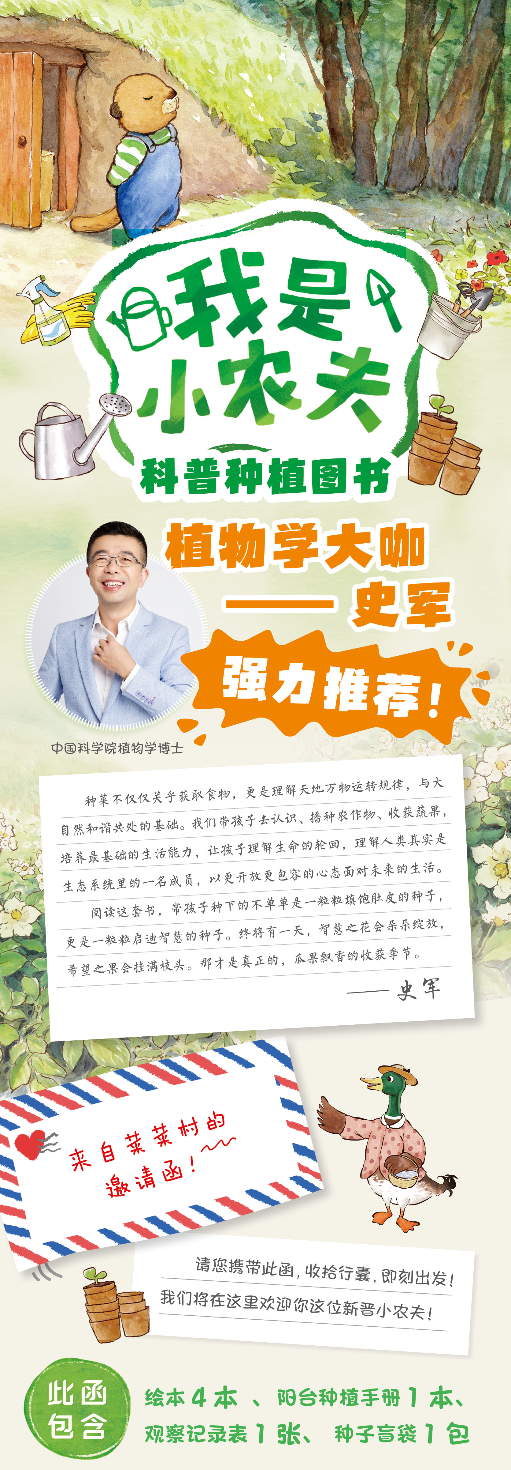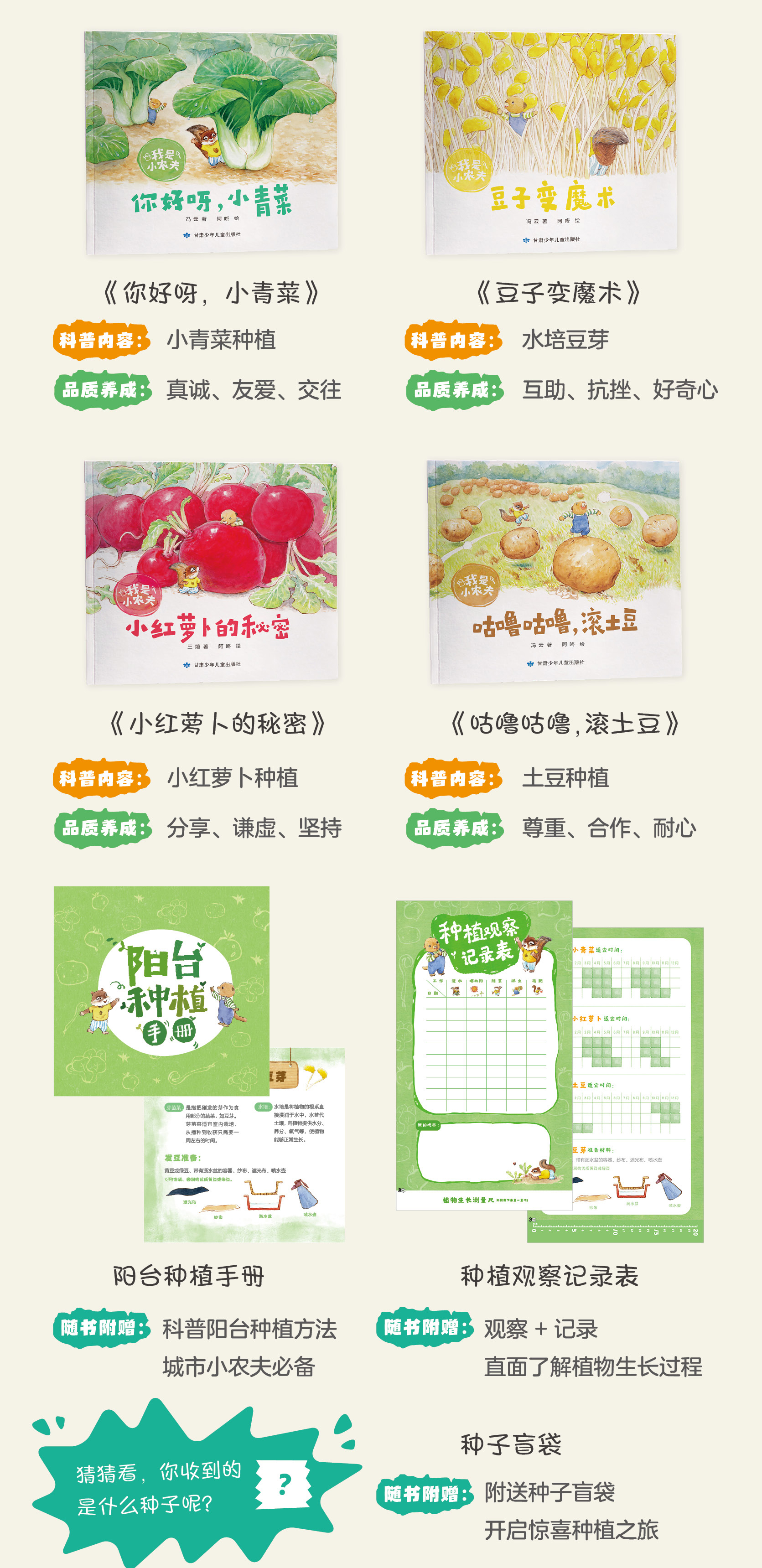 科普种植绘本《我是小农夫》(全4册)赠种子盲袋+阳台种植手册+种植观察记录表 集科普认知、品格培养、劳动教育于一体 植物学大咖史军老师倾情推荐