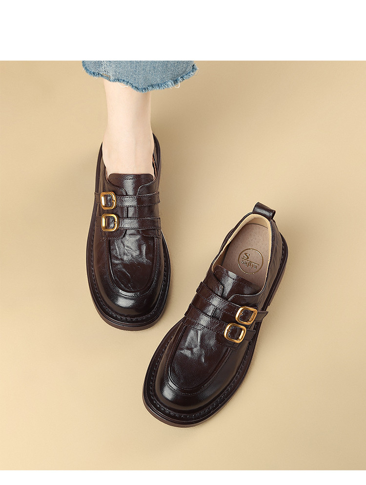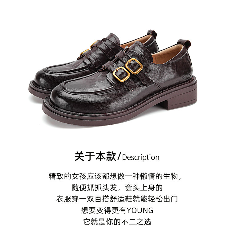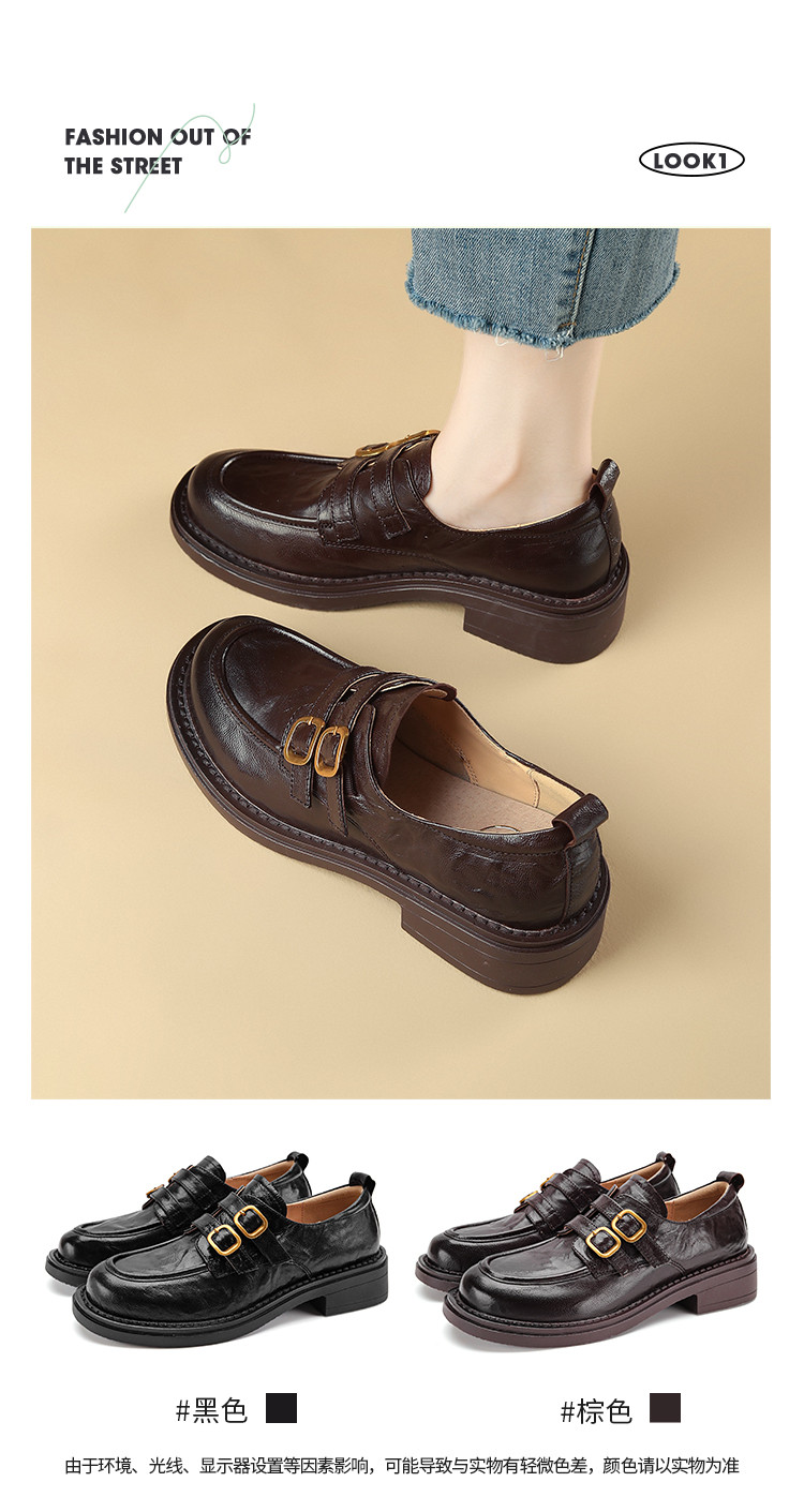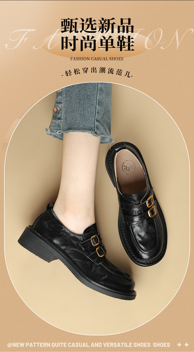 品质好货|Safiya/索菲娅22025秋冬加绒深口复古高级感双扣带羊皮乐福鞋 SFD3112730