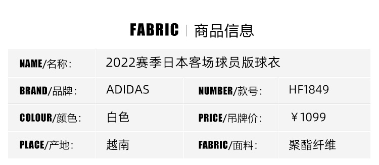 【连印号】SFS阿迪达斯正品 2022日本世界杯客场球员版球衣短袖足球服HF1849