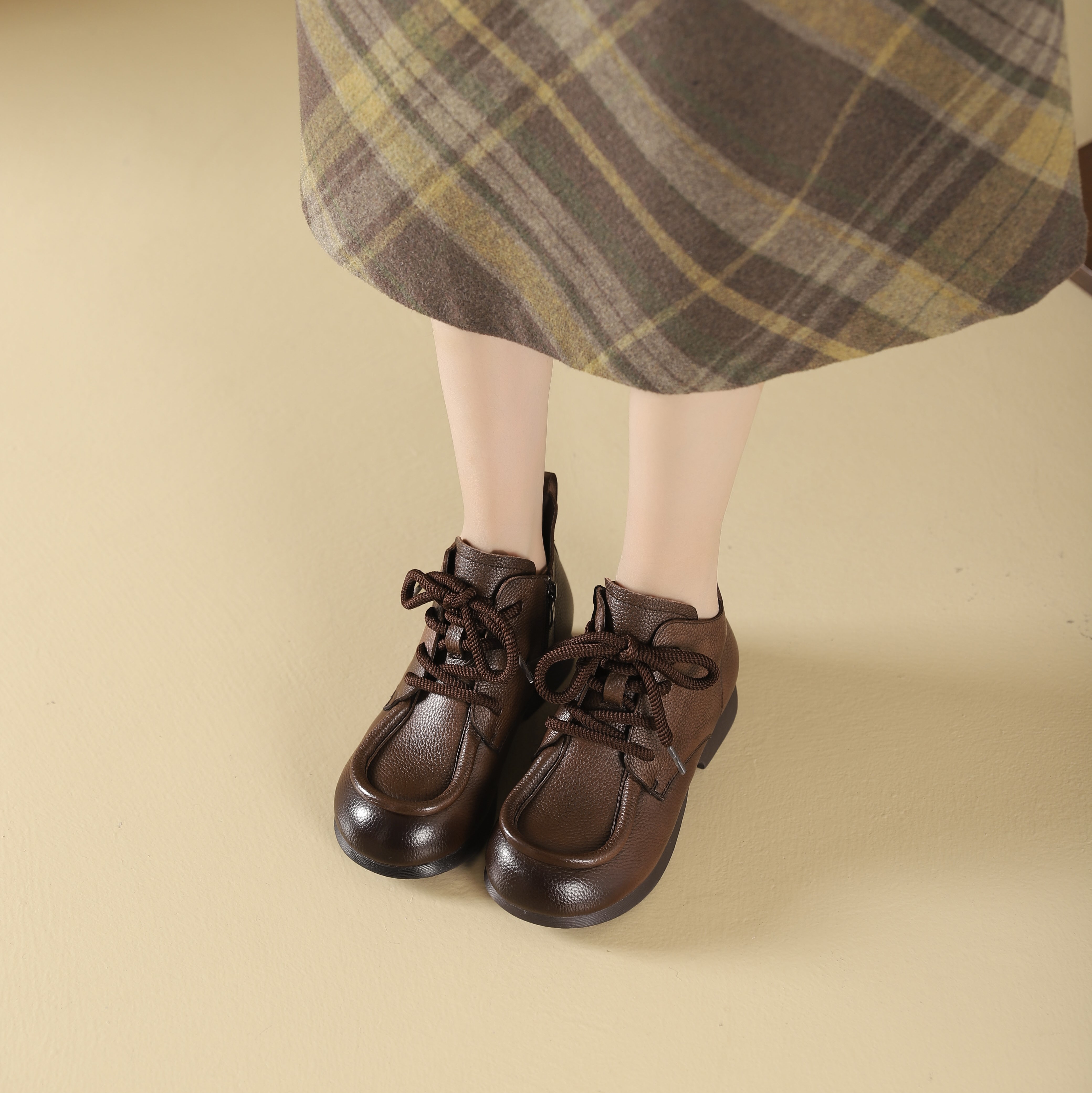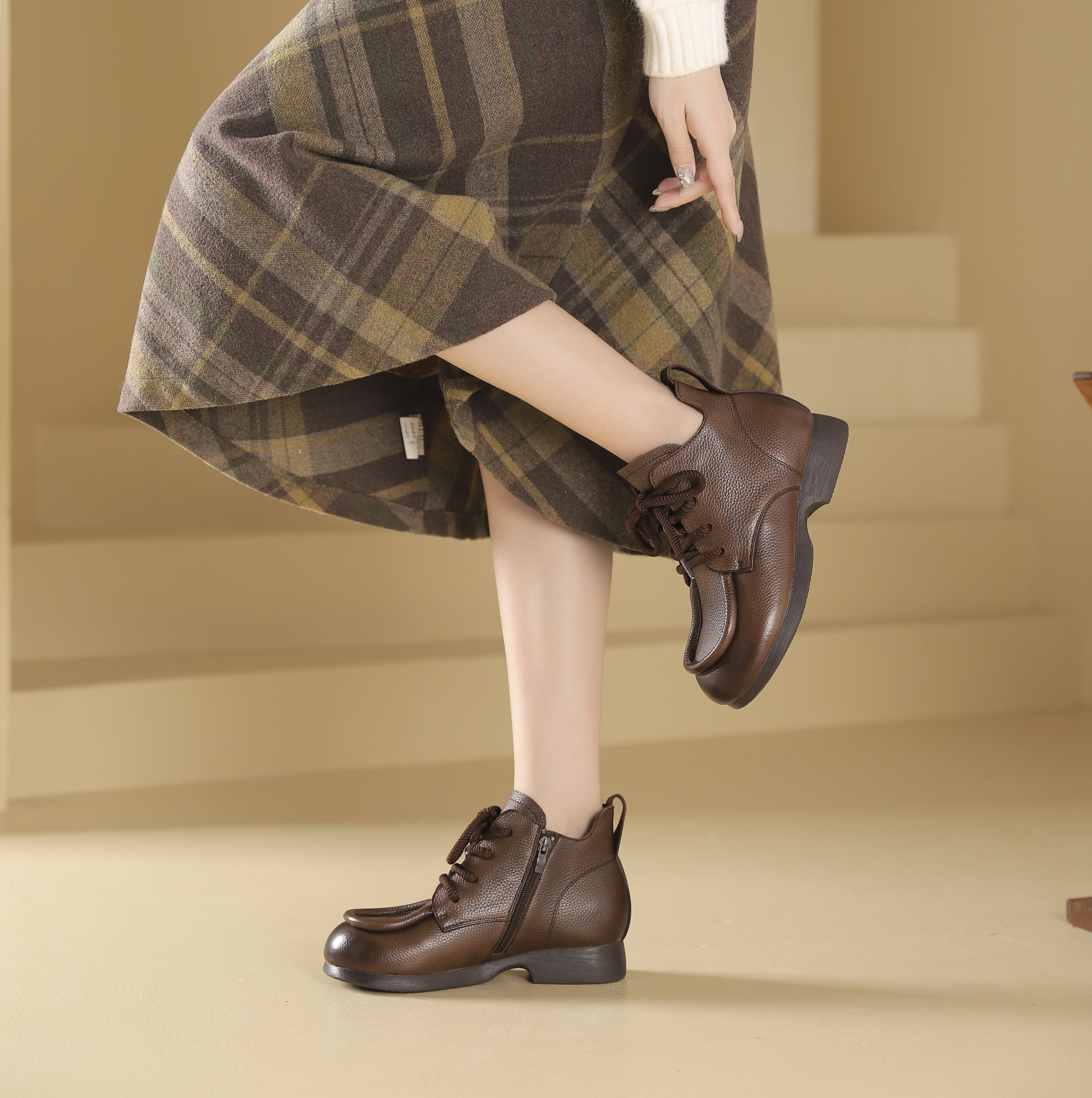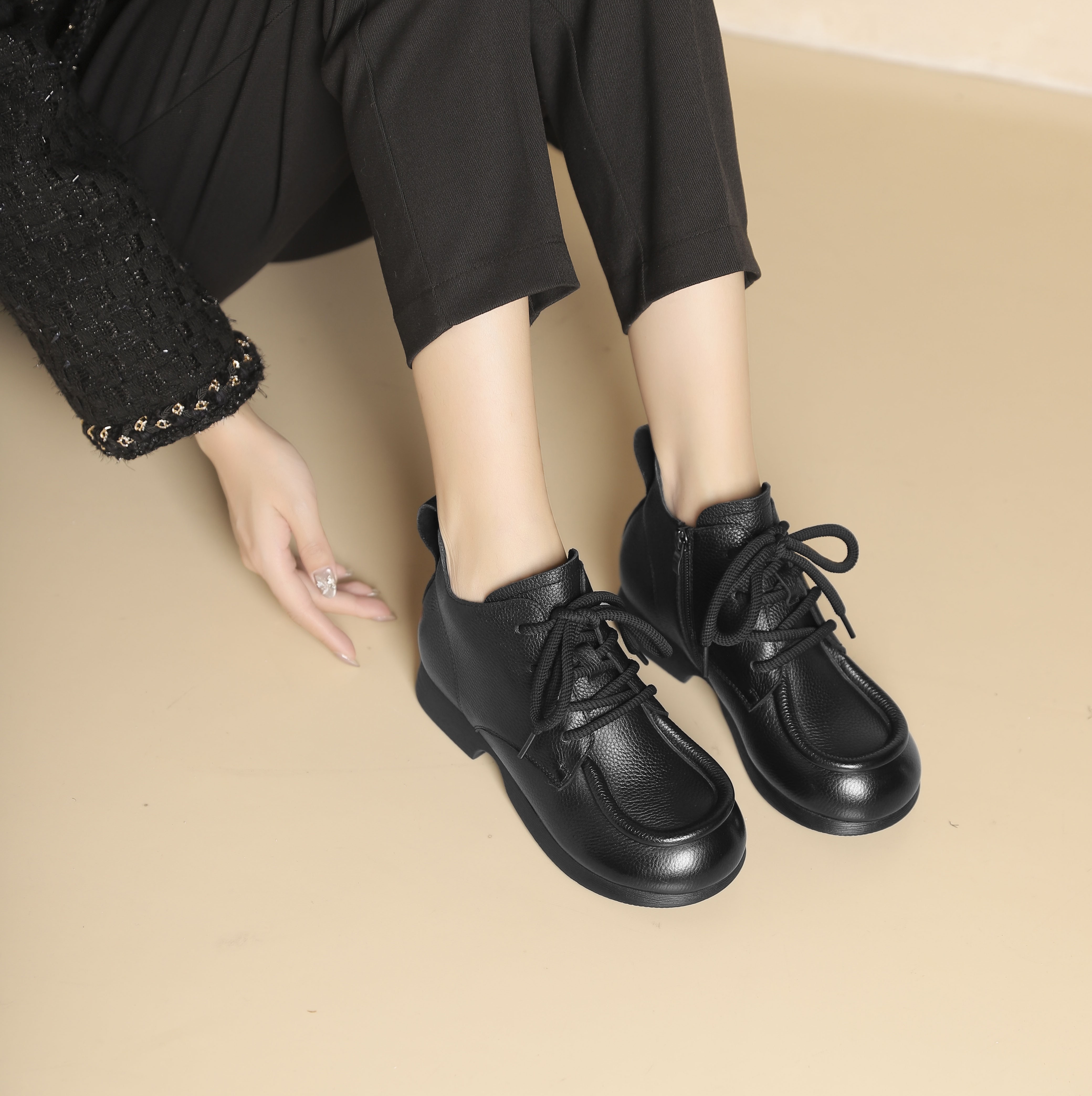 西村名物2024年秋冬新款舒适超轻厚底增高百搭系带马丁靴T24DS48061