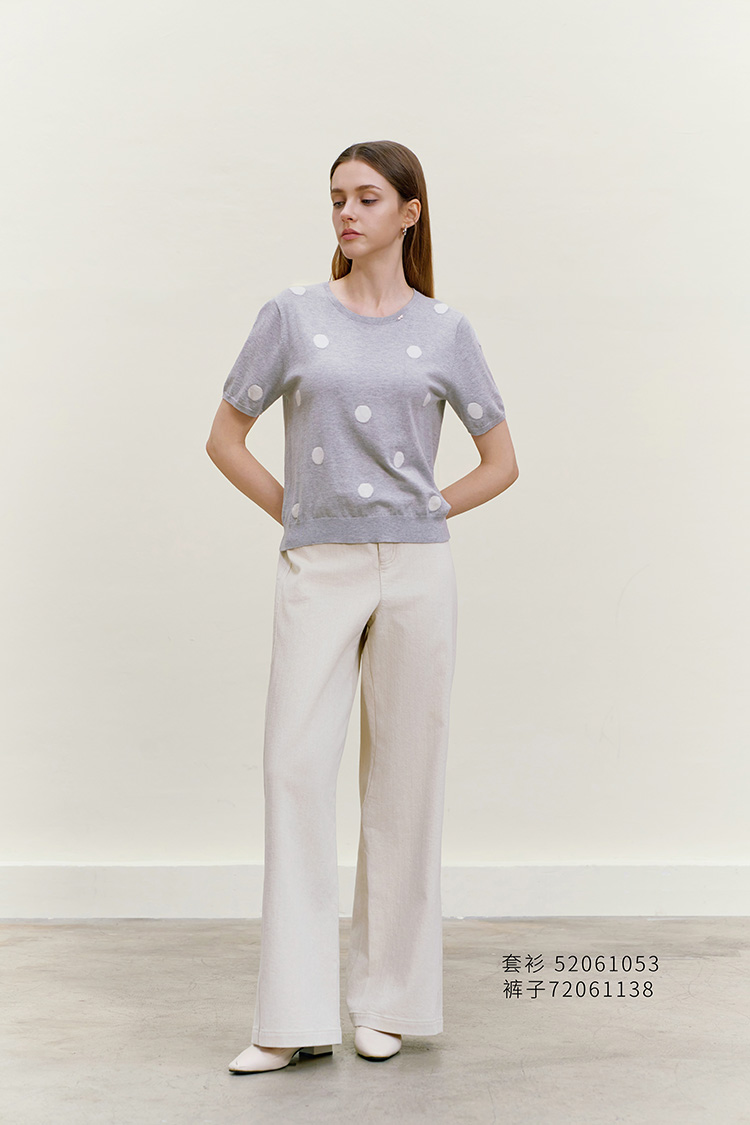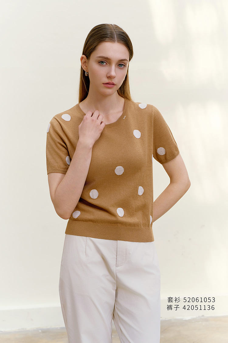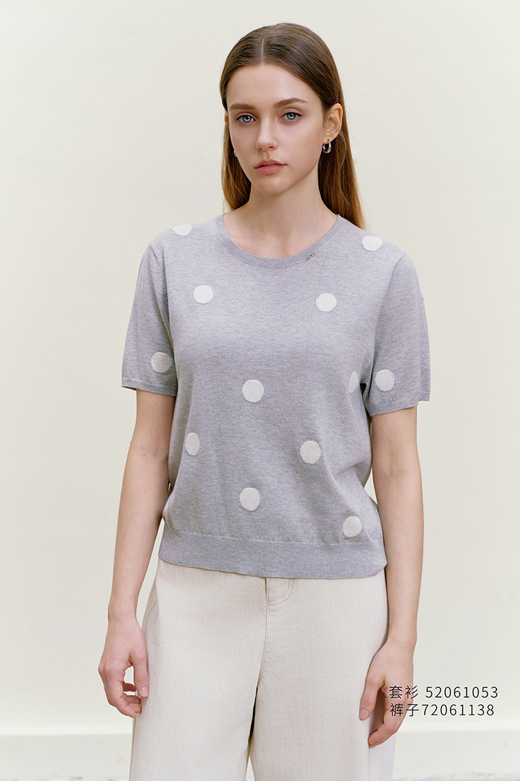 【圆点印花针织套衫】26年春夏新品女士棉质短袖针织薄套衫