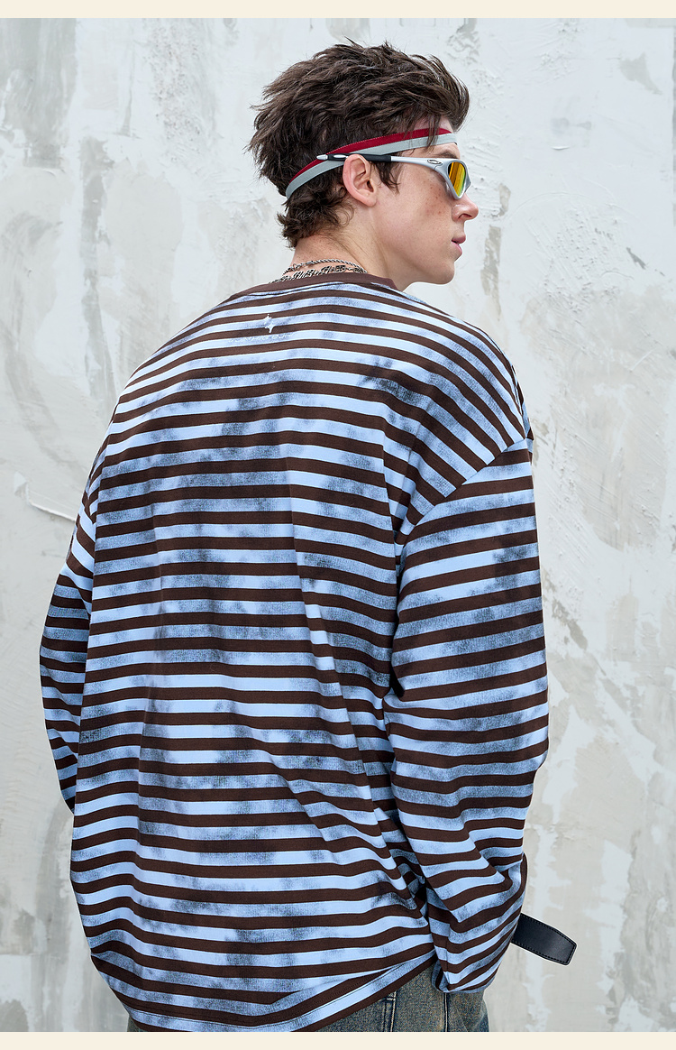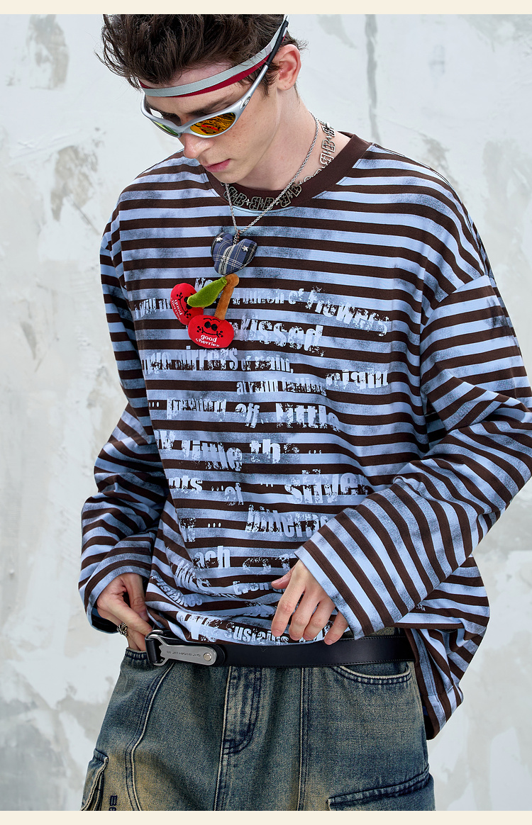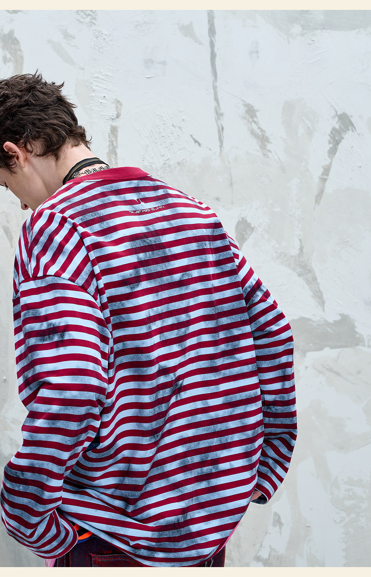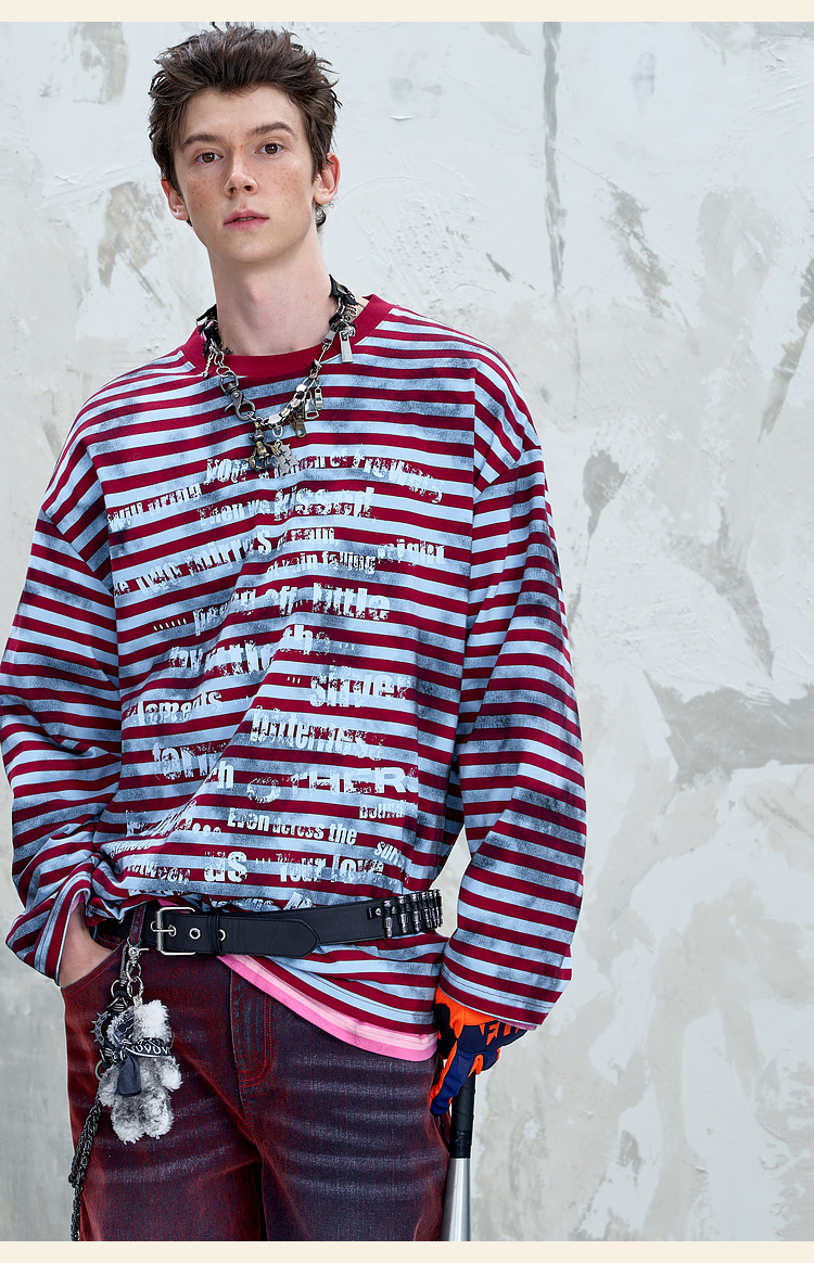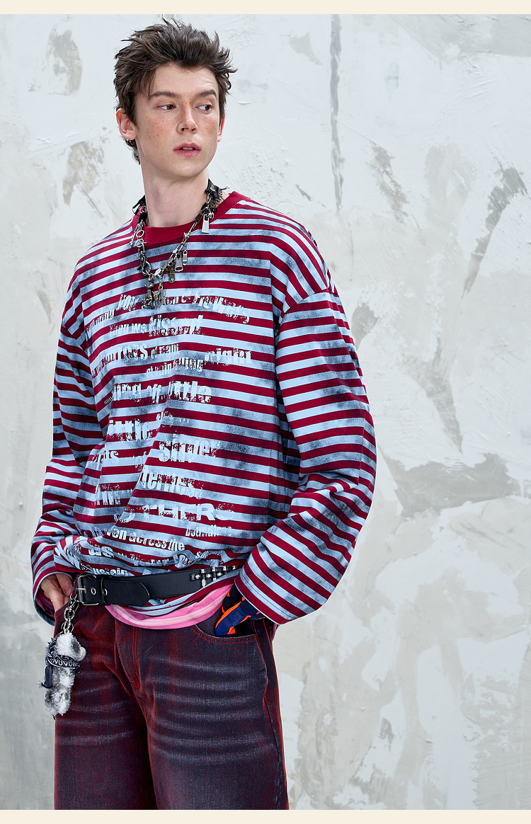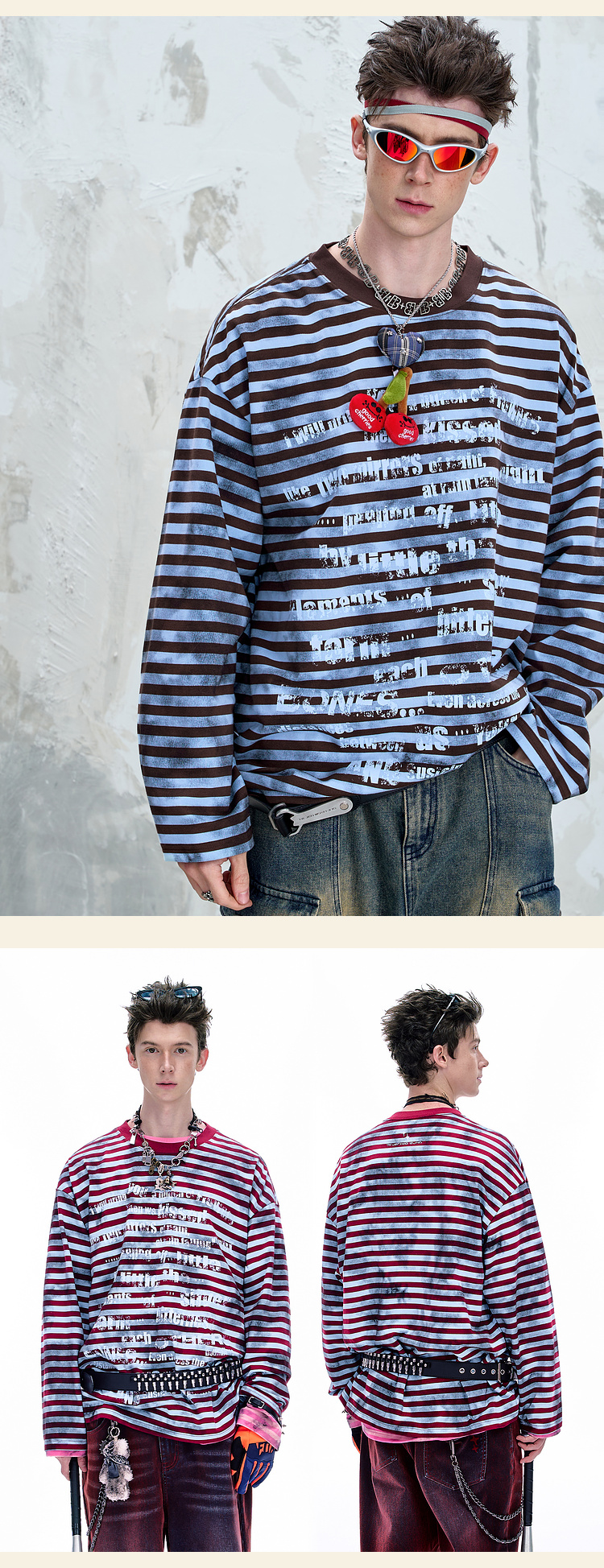 BJHG不计后果做旧条纹长袖t恤男款秋季2025新款美式复古高级感T恤