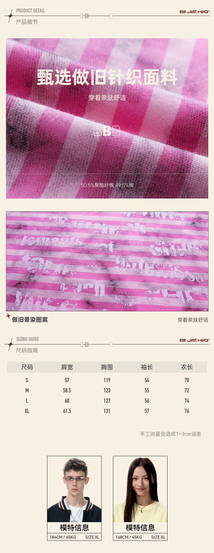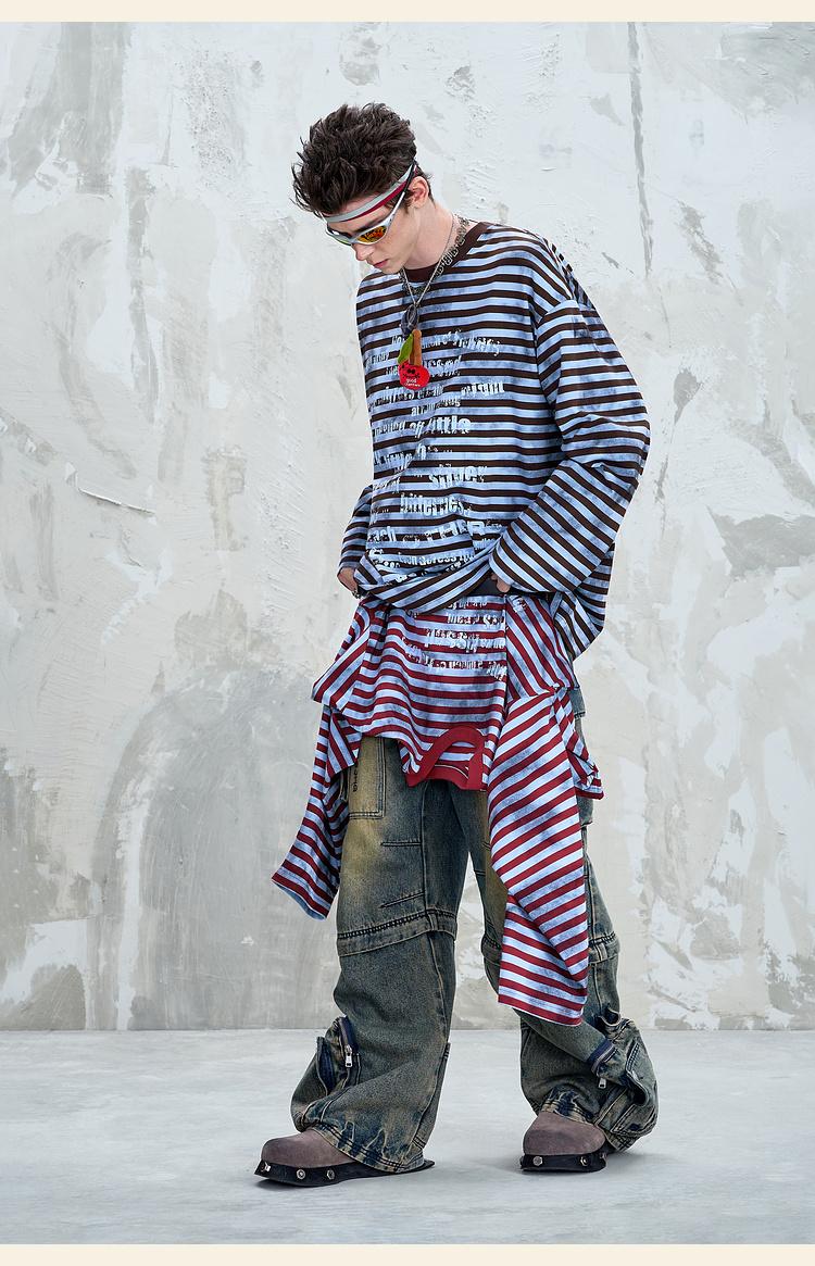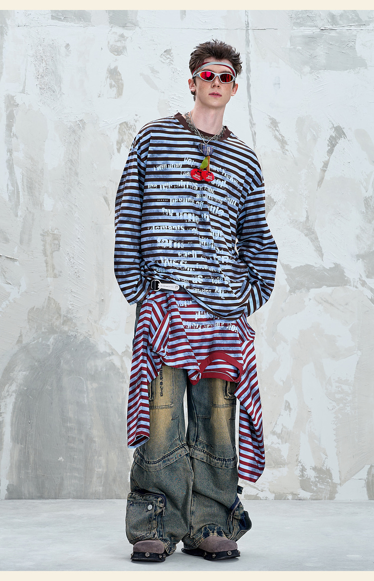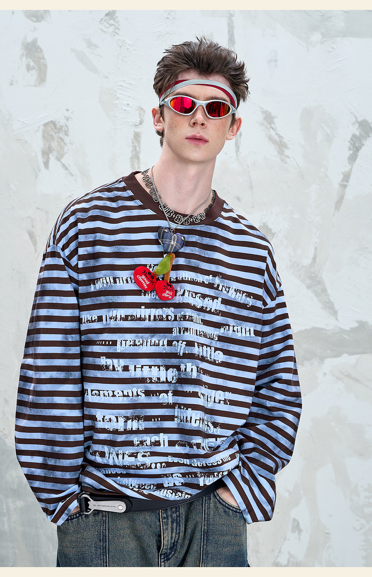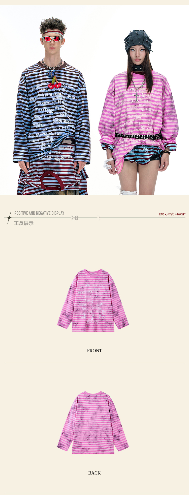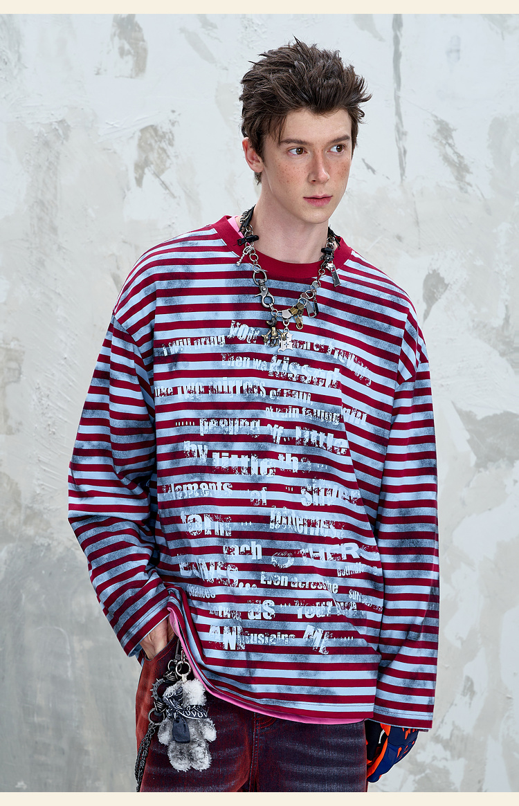BJHG不计后果做旧条纹长袖t恤男款秋季2025新款美式复古高级感T恤