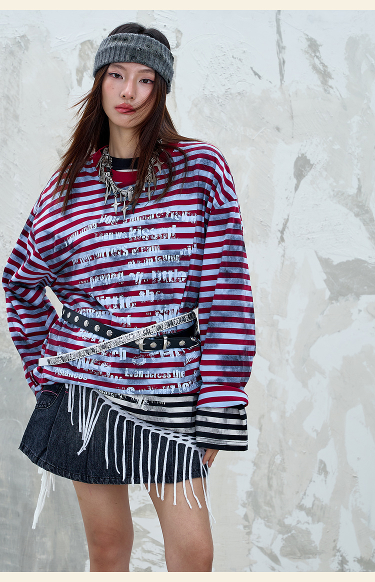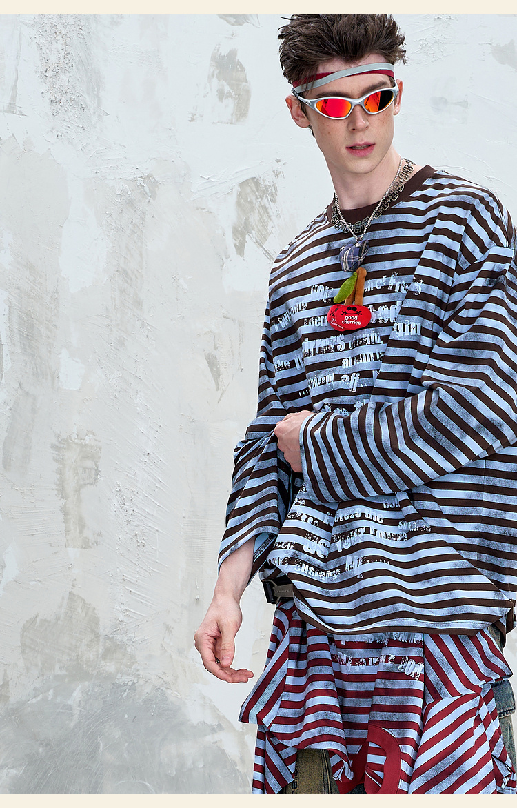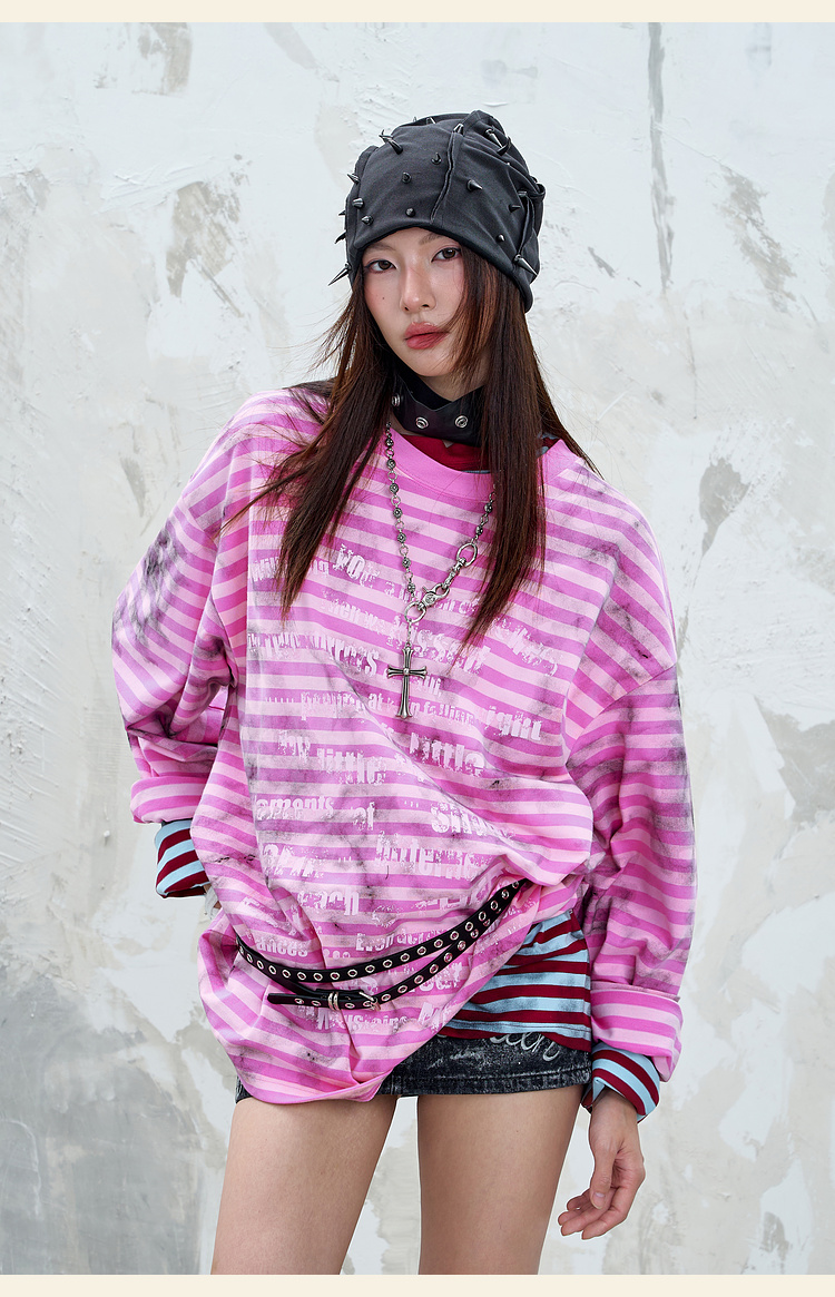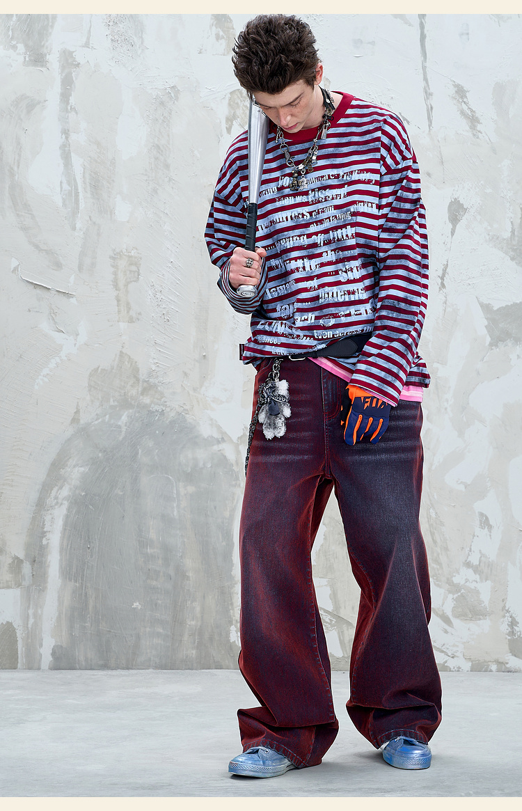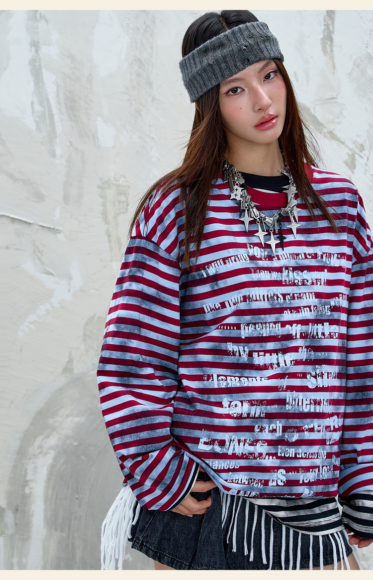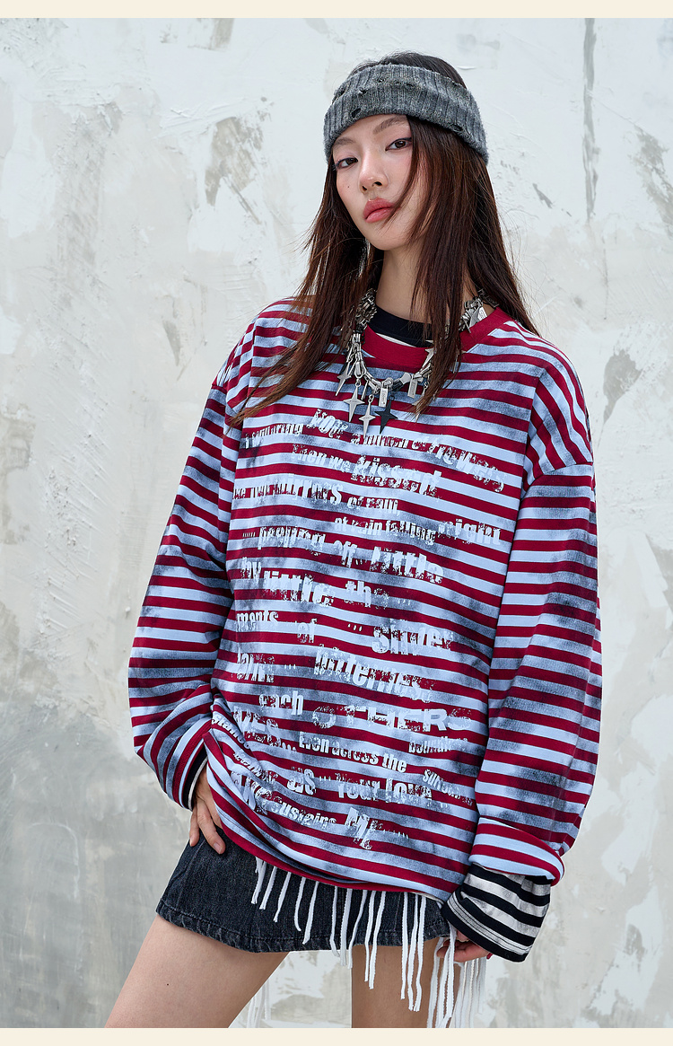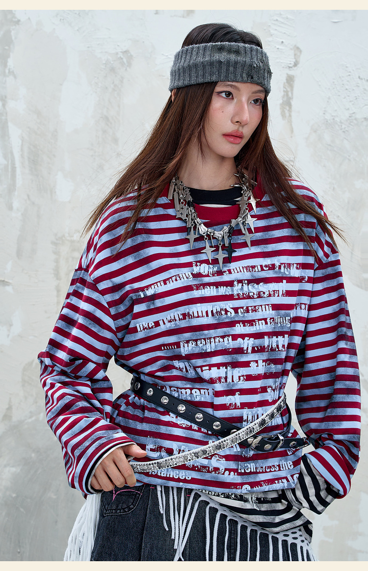 BJHG不计后果做旧条纹长袖t恤男款秋季2025新款美式复古高级感T恤