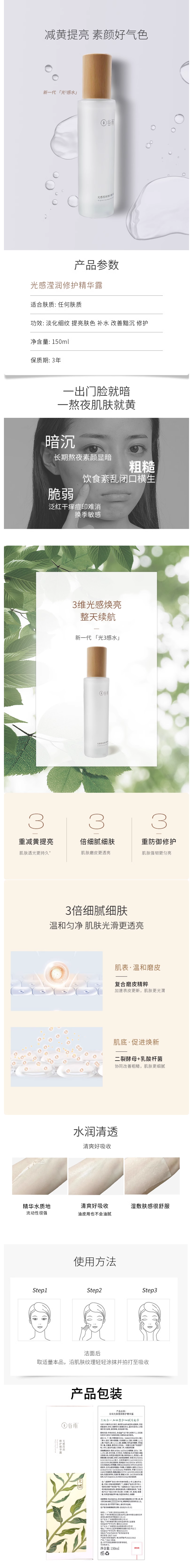 【179元会员福利】谷雨光感滢润修护精华露150ml送雪肌面膜1片+光感露35ml*2