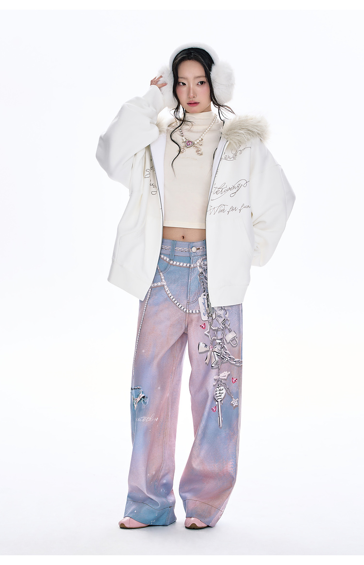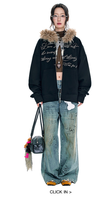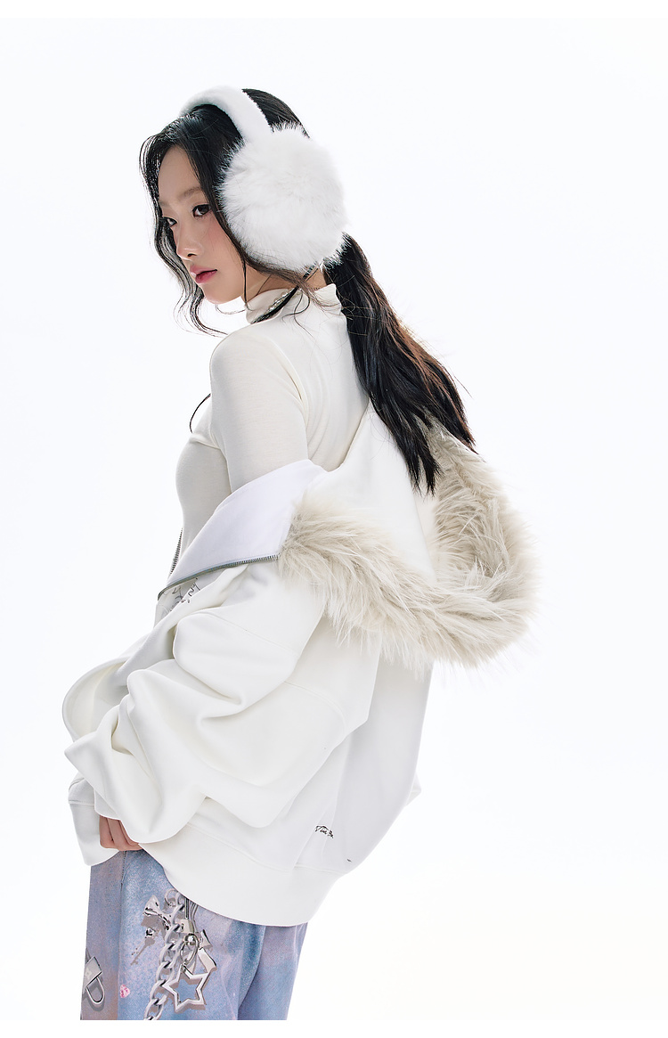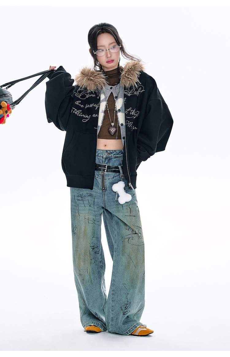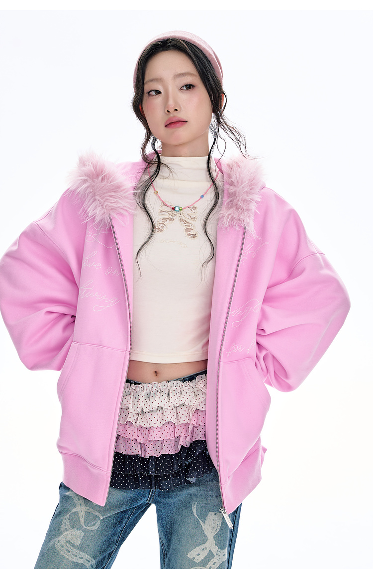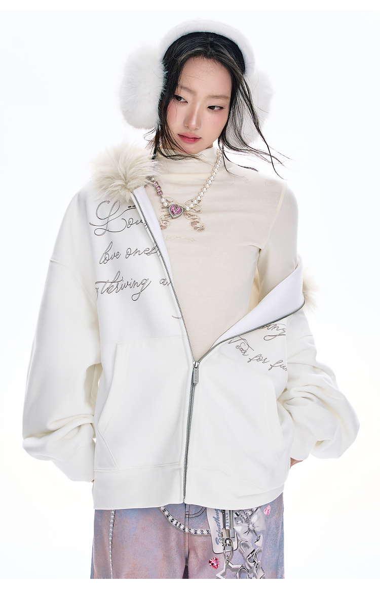 BJHG不计后果毛领连帽卫衣女秋冬新款潮牌复古加绒开衫休闲外套男