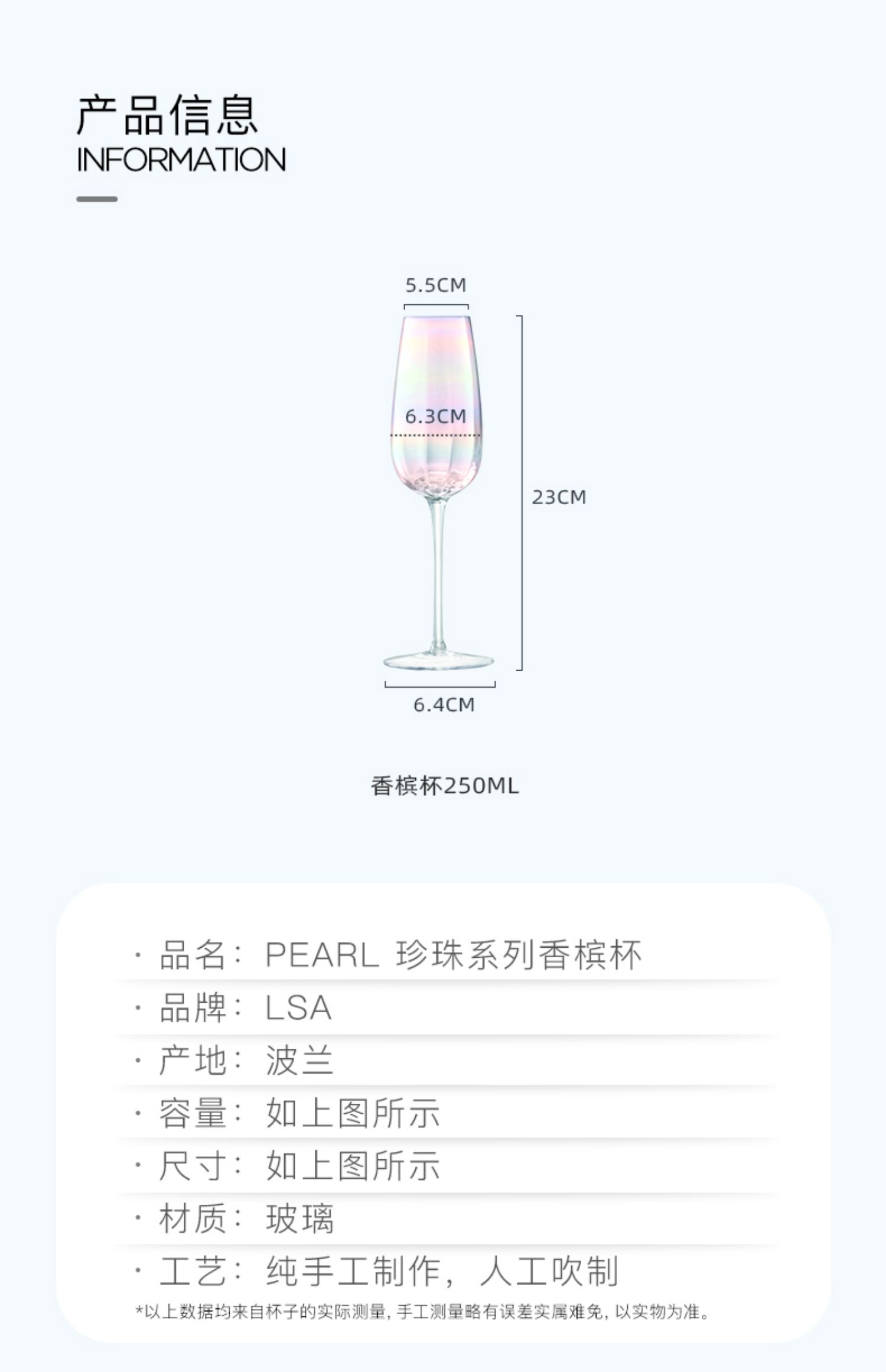 lsa Pearl 香槟杯纯手工彩虹杯高颜值家用香槟酒杯高脚杯结婚礼物