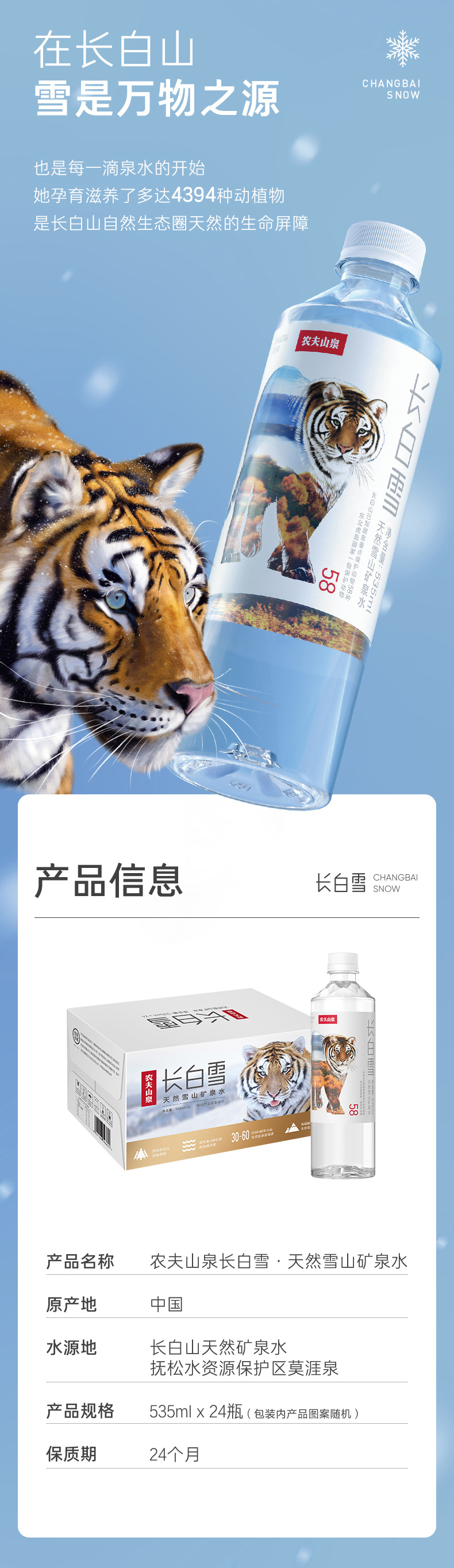 长白雪 天然雪山 矿泉水 源自自涌冷泉 535ml*24瓶 农夫山泉 整箱包邮